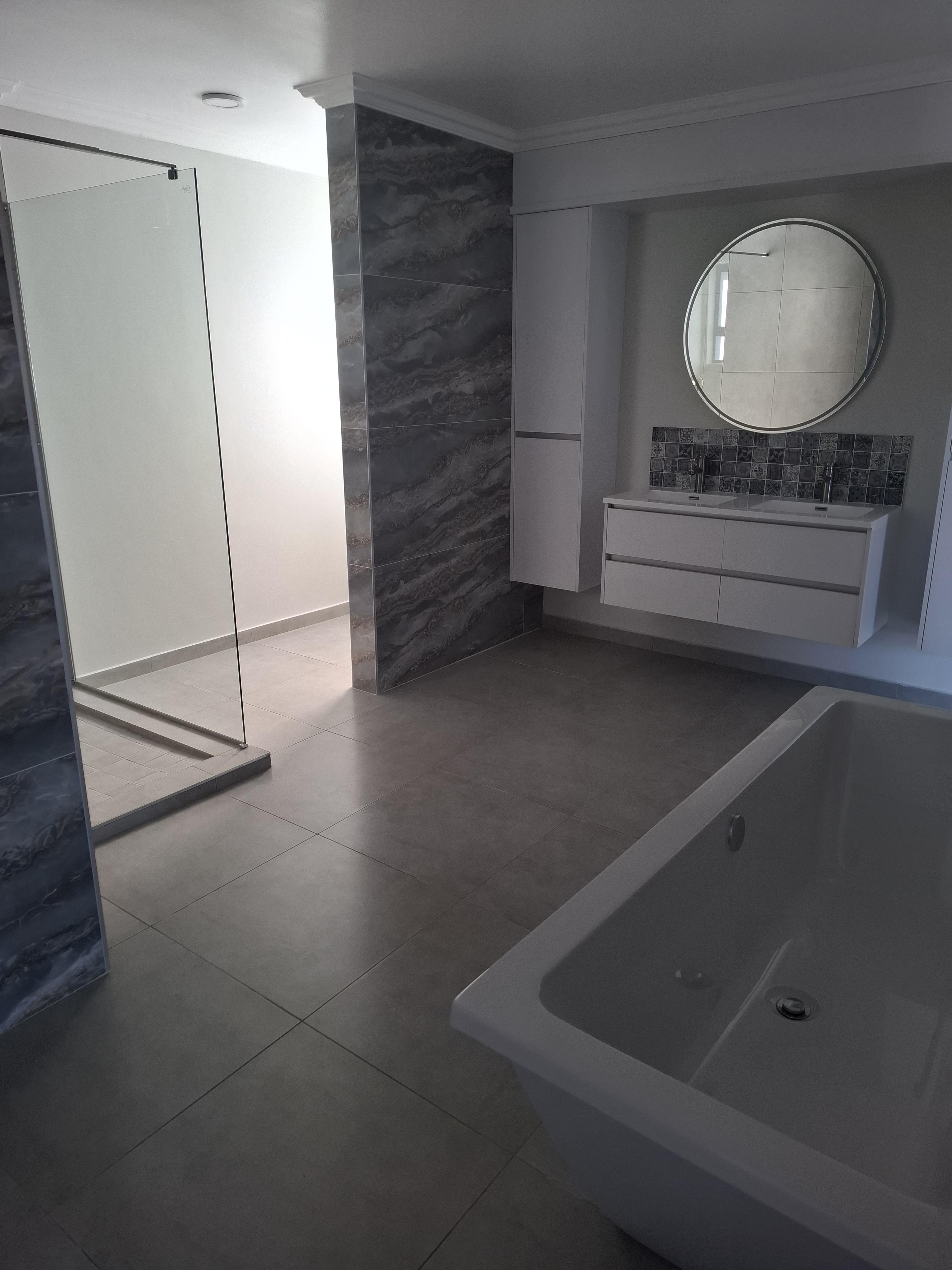 New upmarket property offers 3 bedrooms, 3 bathrooms, 2 guest toilets, kitchen, lounge, dining room and family room.
