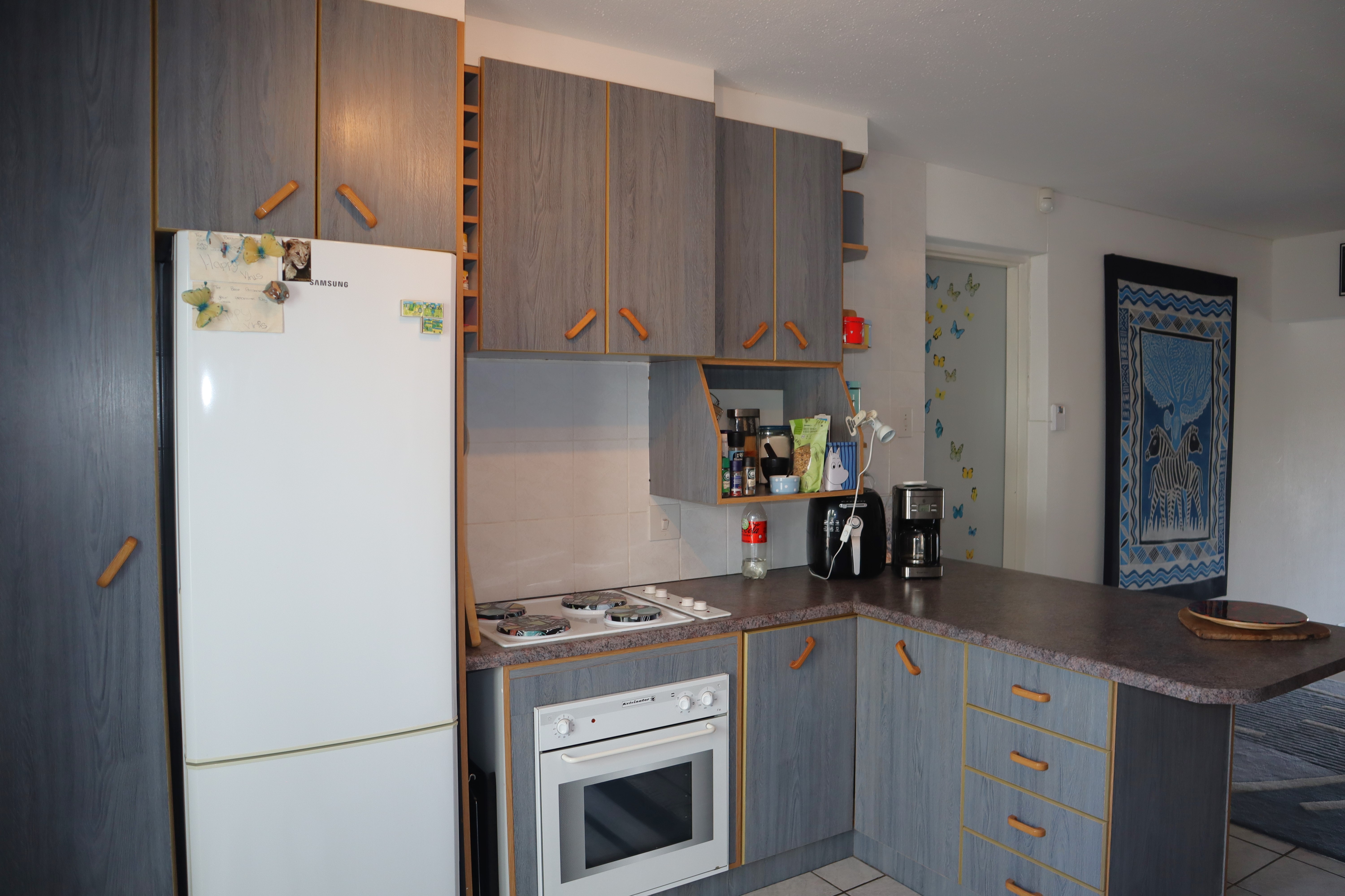 Featuring three cozy bedrooms, two bathrooms, a convenient guest toilet, and a kitchen that effortlessly blends into the dining and living areas, this home is designed for comfort and convenience. Step through sliding doors onto the patio, complete with a braai, perfect for relaxed gatherings or al fresco dining.