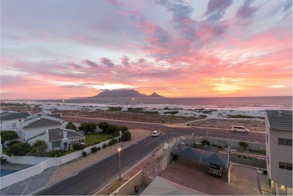 Enjoy unparalleled sea and Table Mountain views from this corner unit elevated high up in a popular complex near the beachfront. The apartment consists of a spacious open-plan living area with a galley kitchen with granite tops and space for two appliances which flow onto the generous dining and lounge area. The living area leads out onto a wind protected covered balcony with panoramic views of the sea and Table Mountain. Accommodation includes three bedrooms, all of which include built-in-cupboards. The main bedroom features views and en-suite bathroom with shower. The second and third bedroom are located on the rear of the property with an adjoining guest bathroom with large shower.
