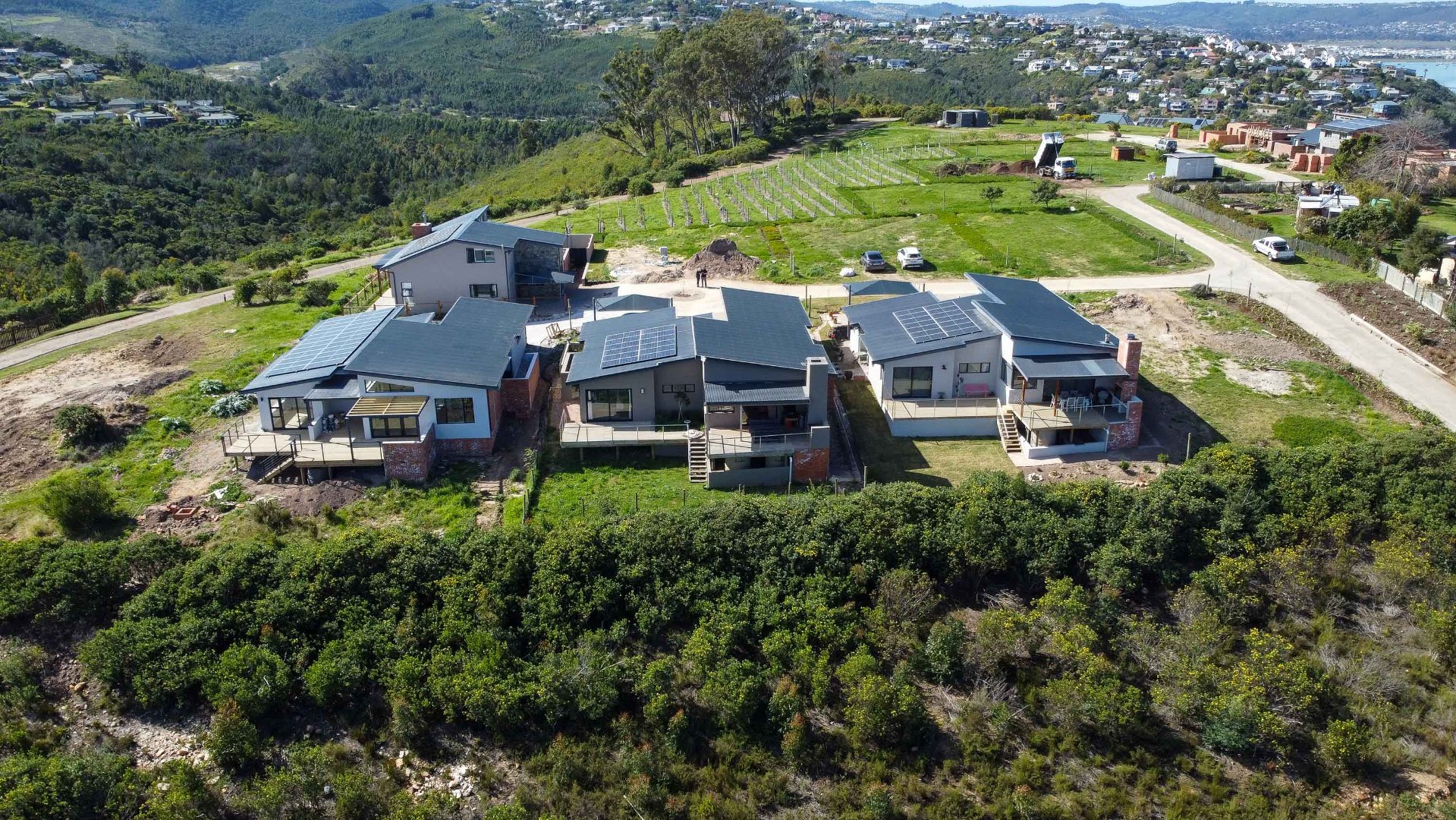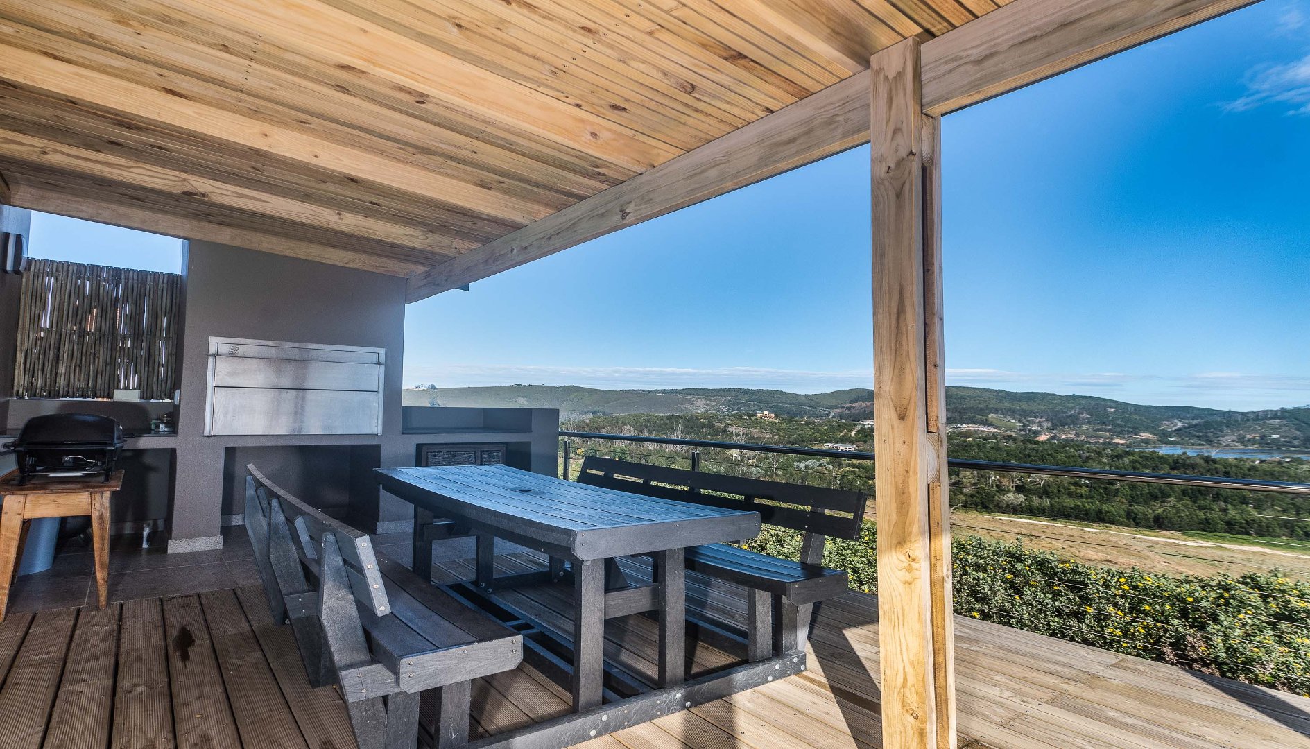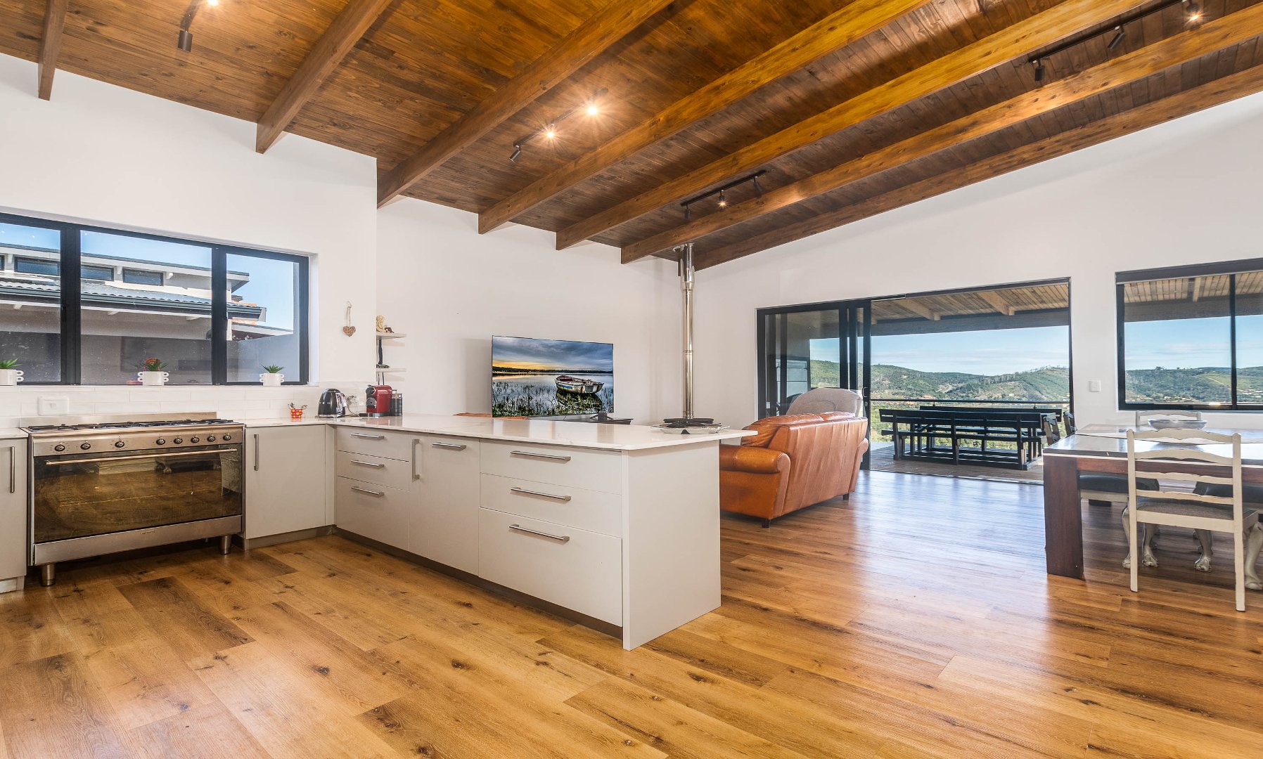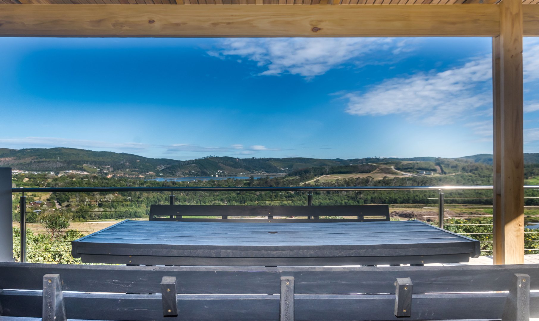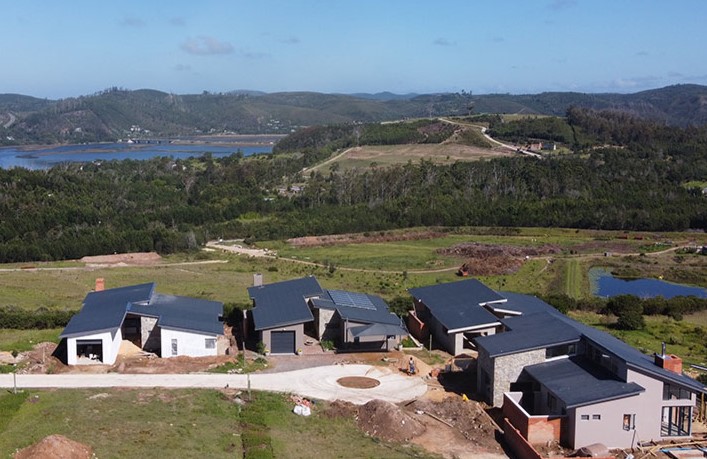 Exclusively Marketed by Rengrow. This home is a must see. Newly built home in new Private Estate in Welbedacht, Knysna. The home offers three bedrooms, two and a half bathrooms, open plan living area with built in fireplace. Under cover patio with built in braai and views of the lagoon up river and the mountain range.