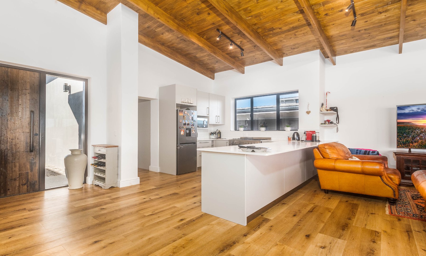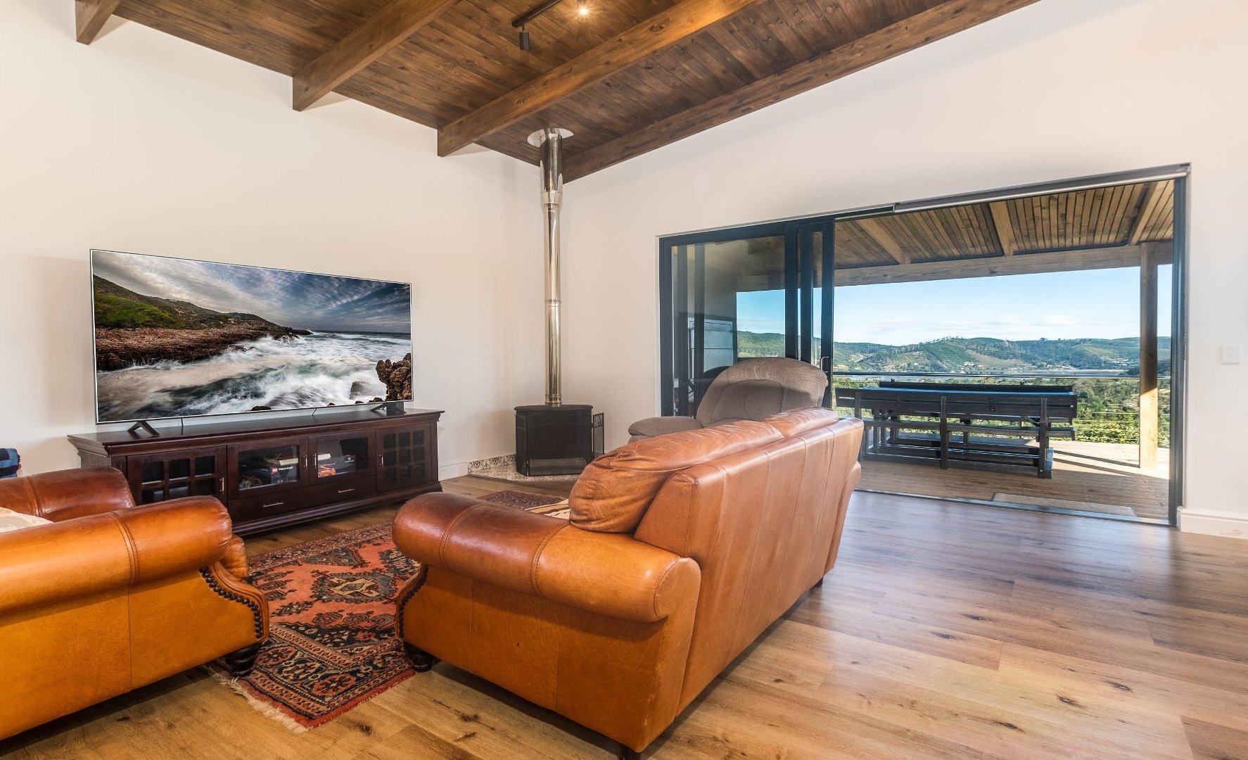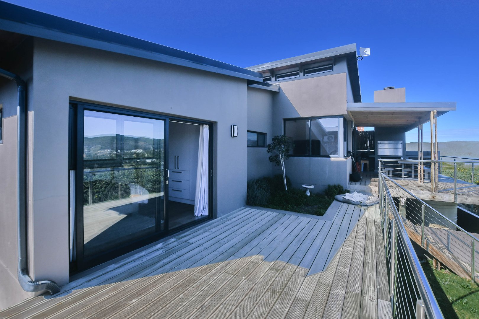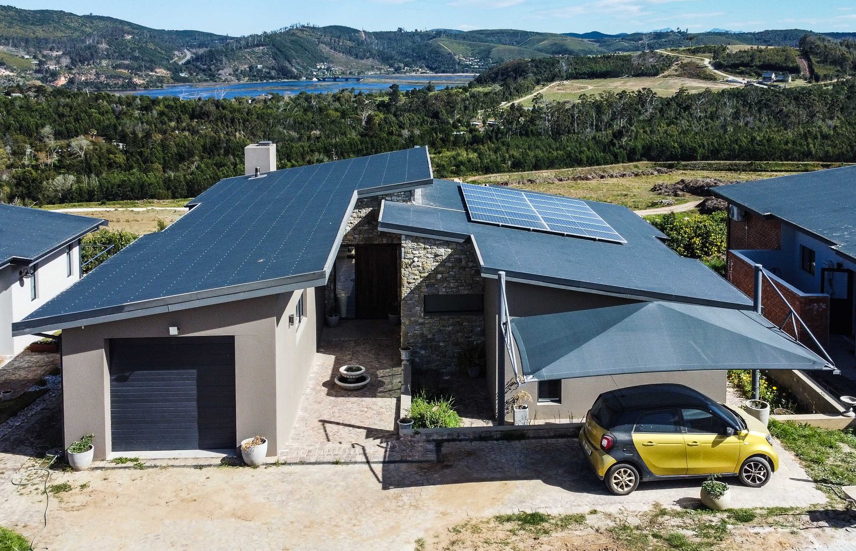Exclusively Marketed by Rengrow. This home is a must see. Newly built home in new Private Estate in Welbedacht, Knysna. The home offers three bedrooms, two and a half bathrooms, open plan living area with built in fireplace. Under cover patio with built in braai and views of the lagoon up river and the mountain range.