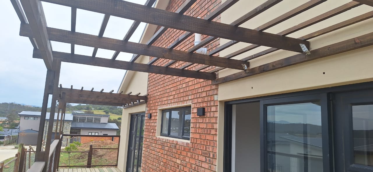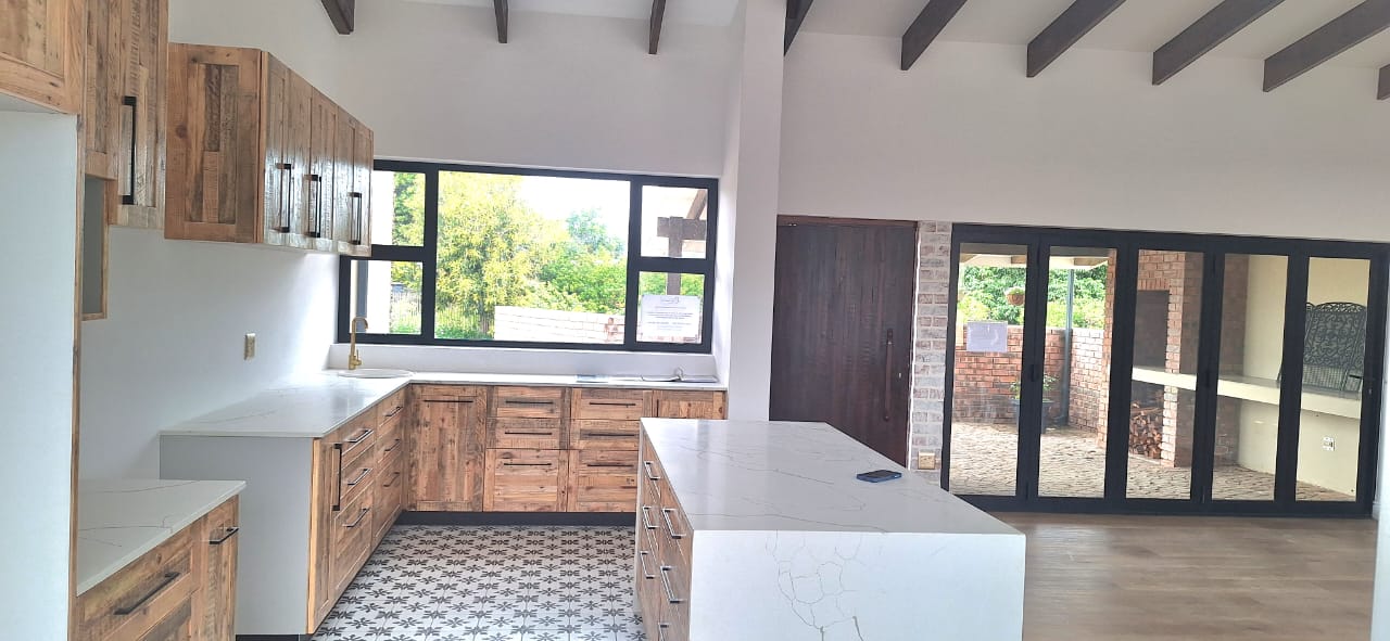 This newly built north facing home in The Orchards offers three bedrooms, three bathrooms and an automated single garage in an estate designed for sustainable, independent living. The main living area opens to a private deck and garden, with an easy open plan flow between the lounge and kitchen, and a sheltered braai area positioned for everyday use. The estate itself blends with its natural surroundings and includes shared fruit and nut trees, vines and green spaces that support a simple, country lifestyle.