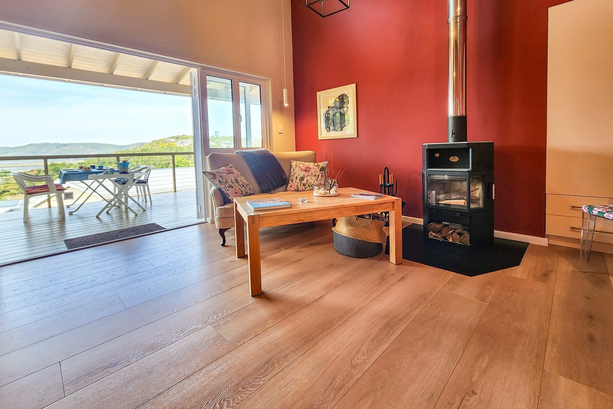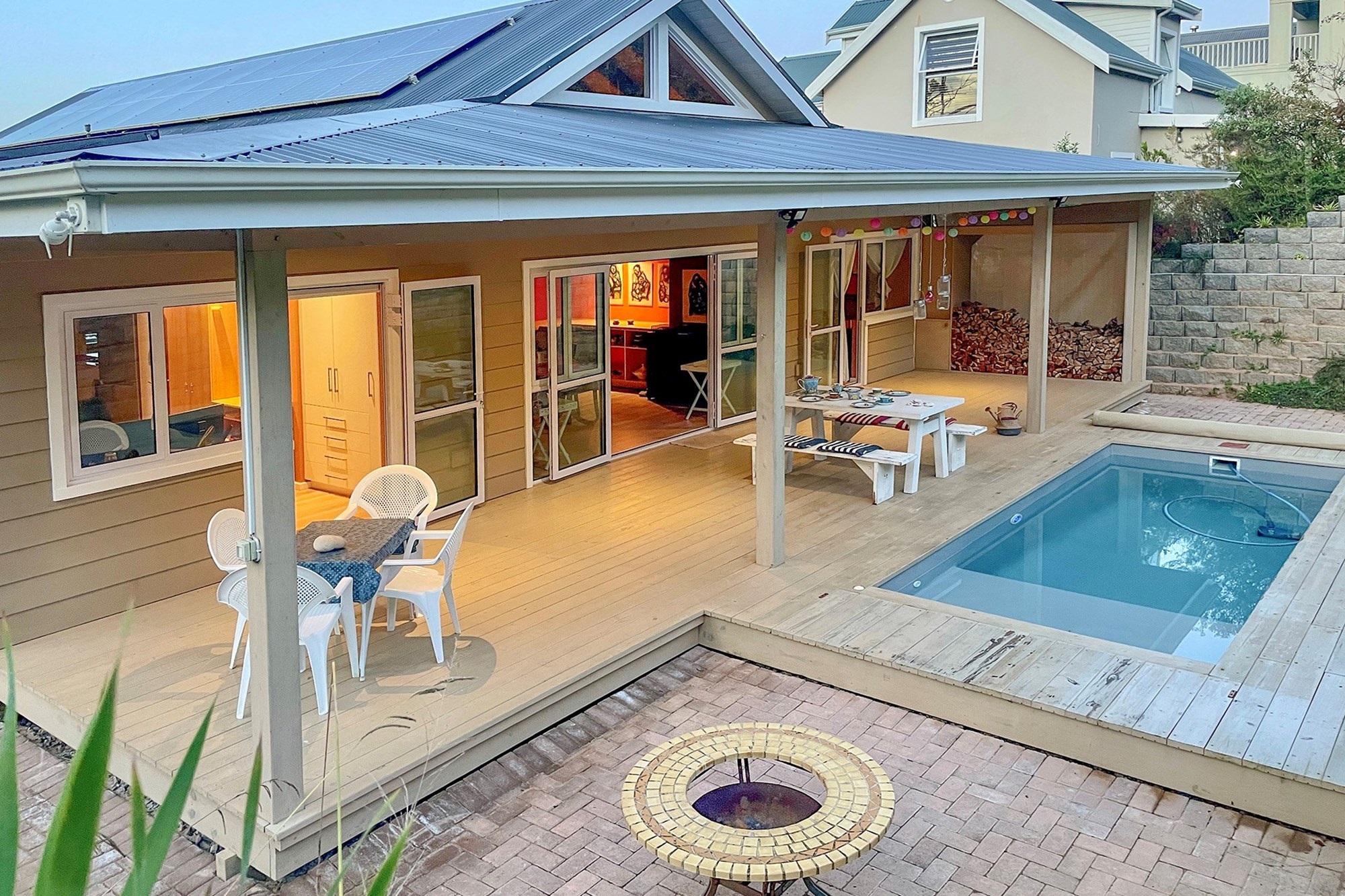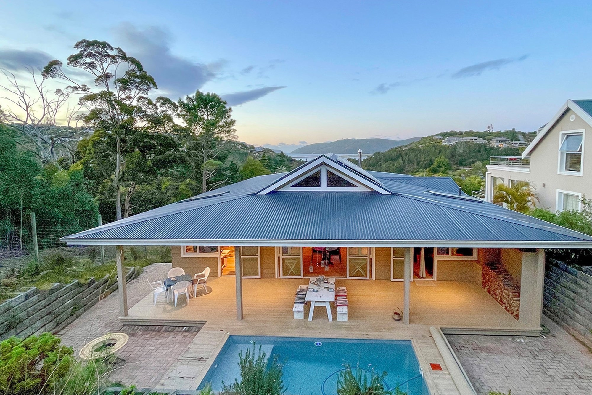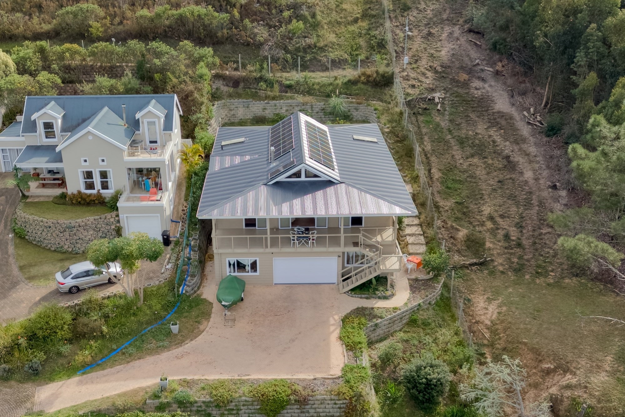 Set on the highest and most remote corner within the secure, gated Narnia Village estate, just 5 minutes from Knysna town, this well-designed spacious 5-bedroom, 3-bathroom home offers flexible living, lagoon and The Heads views, excellent off-grid features and privacy.