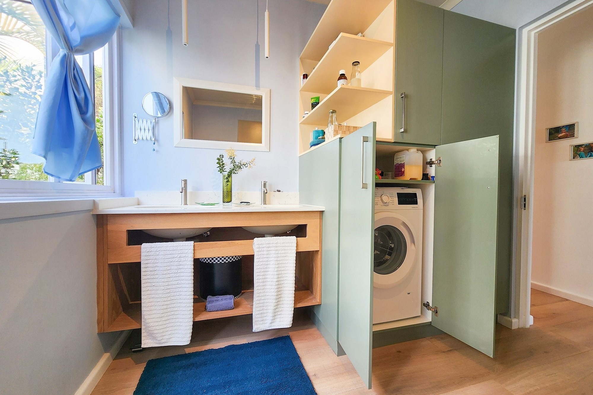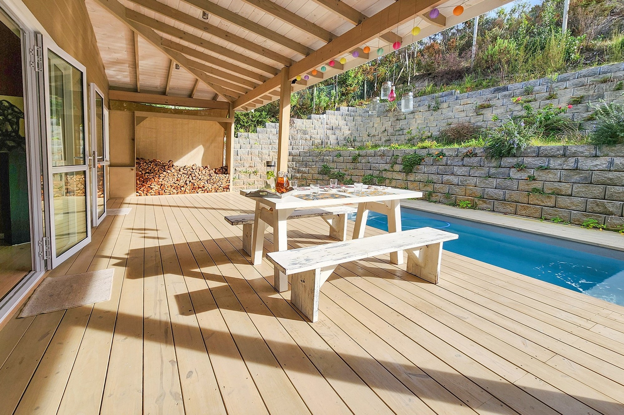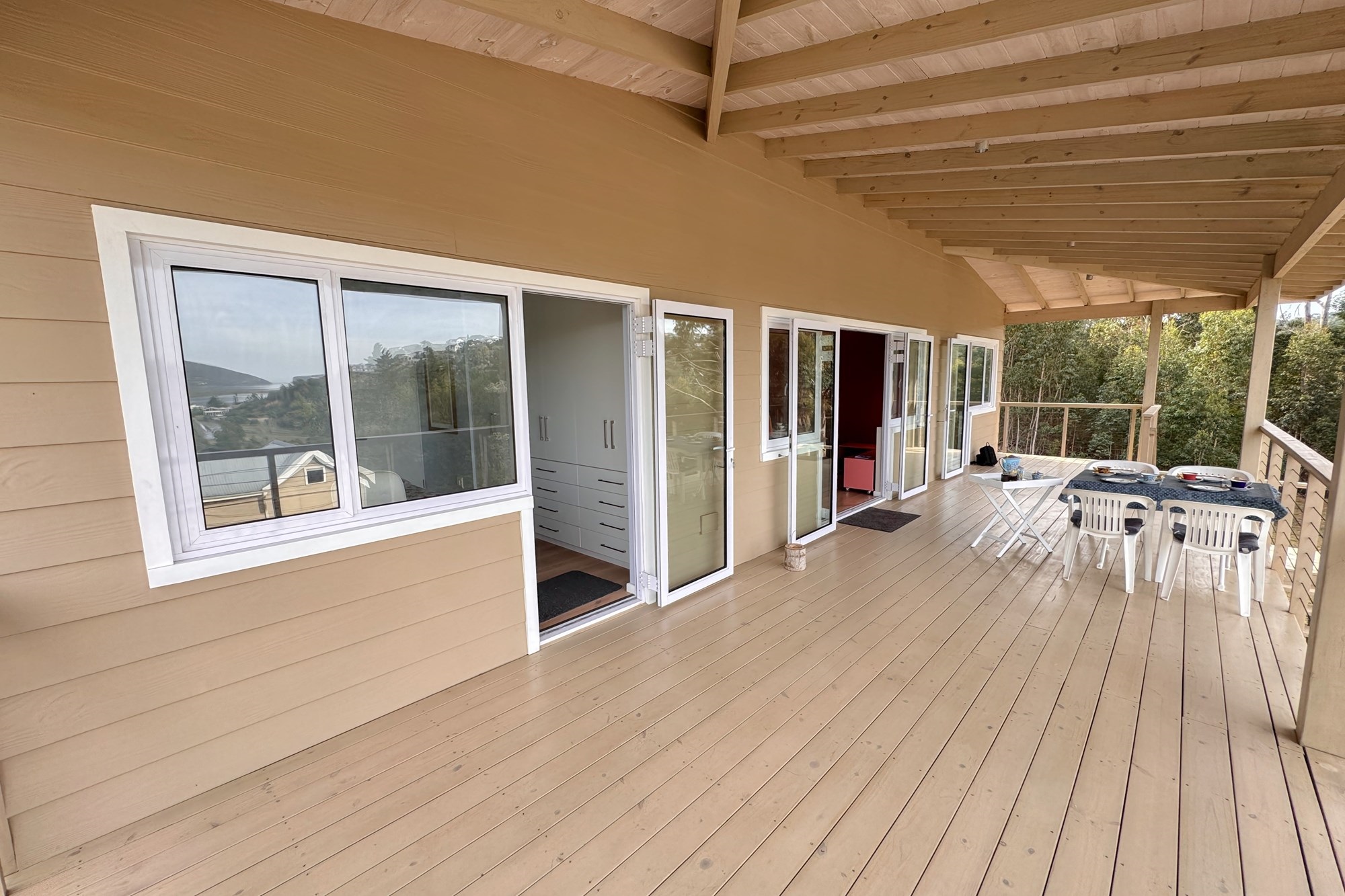 - Large covered decks, North-facing pool deck and South facing viewing deck with lagoon and The Heads views.