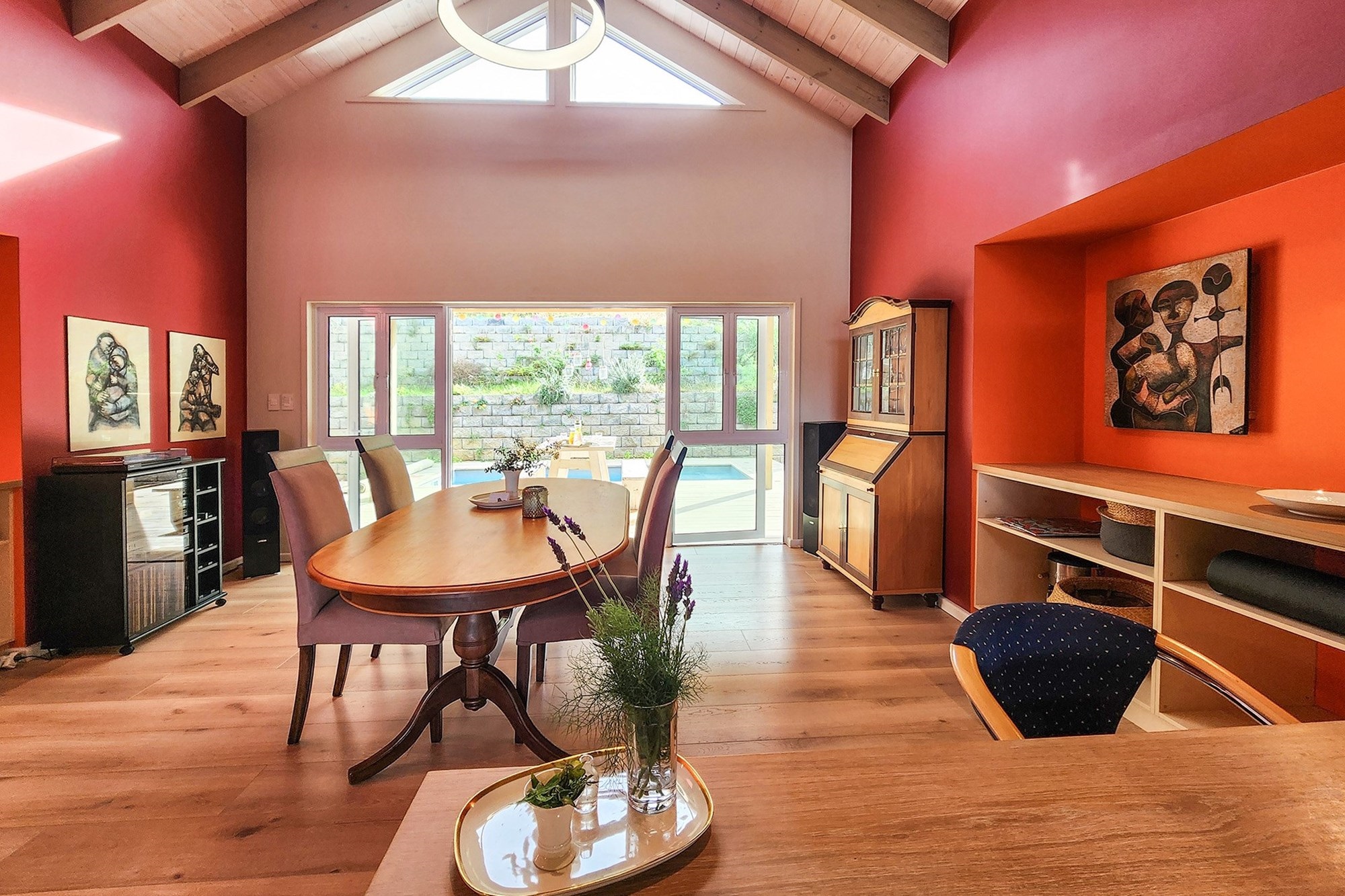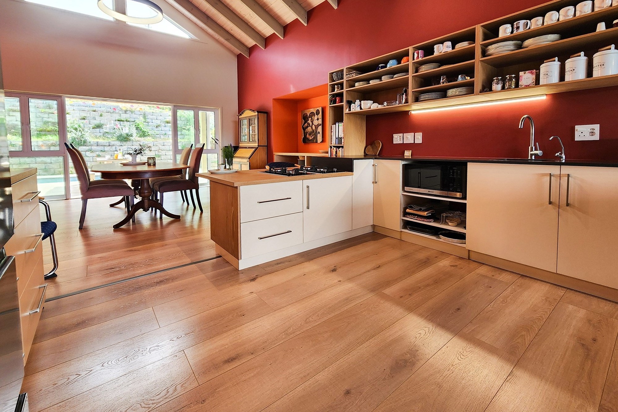 - Open-plan lounge, dining, and kitchen (gas hob, child friendly lowered countertop, underfloor heating, built-in water filter).