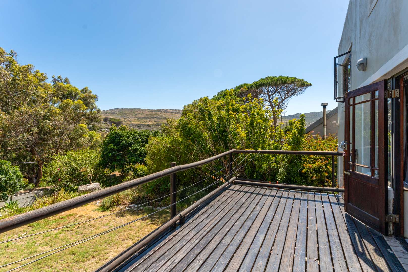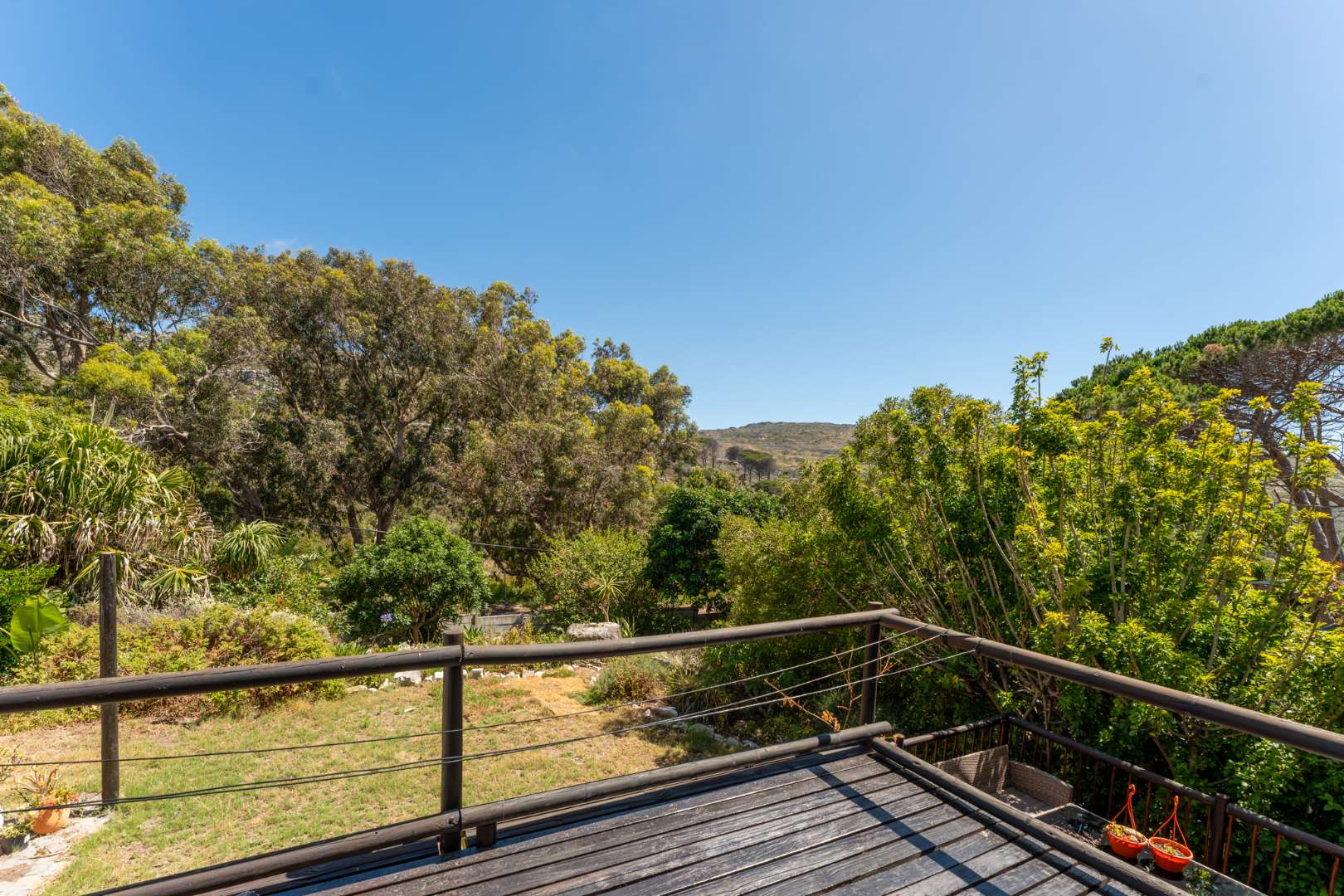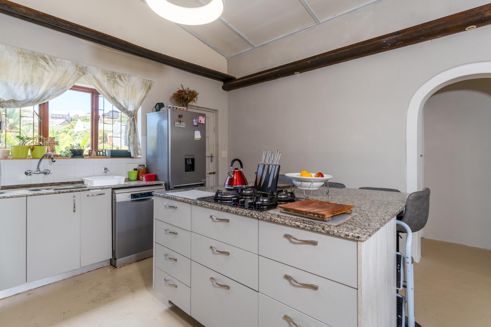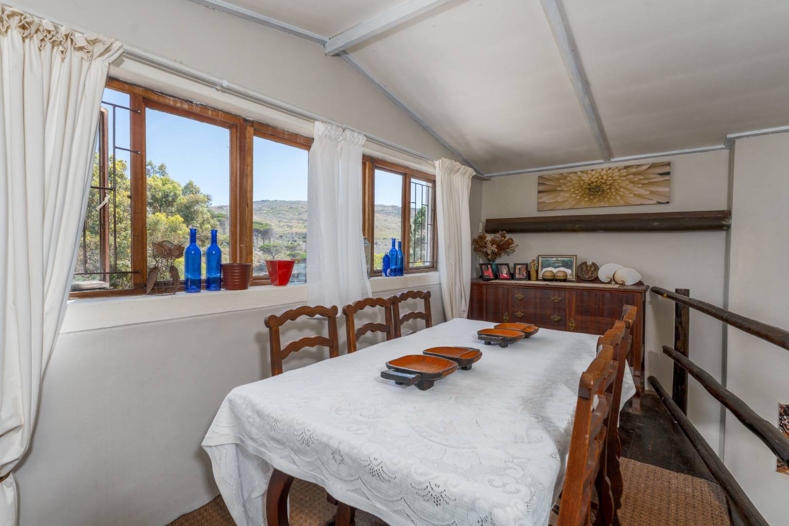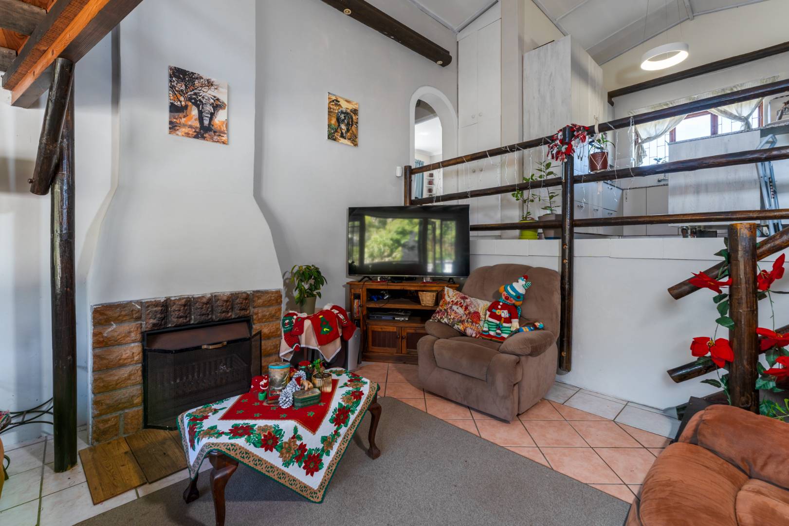 The dining room features striking mezzanine wooden floors and leads to a wooden staircase descending into a tiled sunken lounge complete with a fireplace. From here, lovely French doors open onto a deck overlooking the garden, with uninterrupted views of the surrounding mountains and forest.