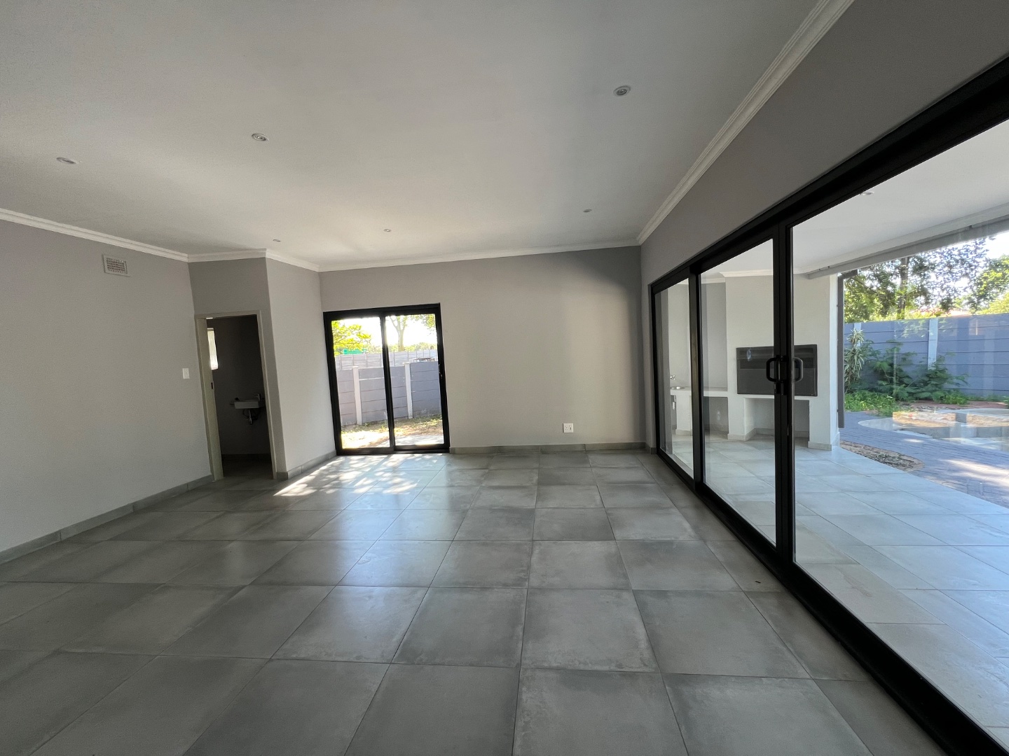 Open-Plan Living: The highlight of the home is the inviting living and dining area, which flows effortlessly to an expansive entertainment patio through sliding doors.