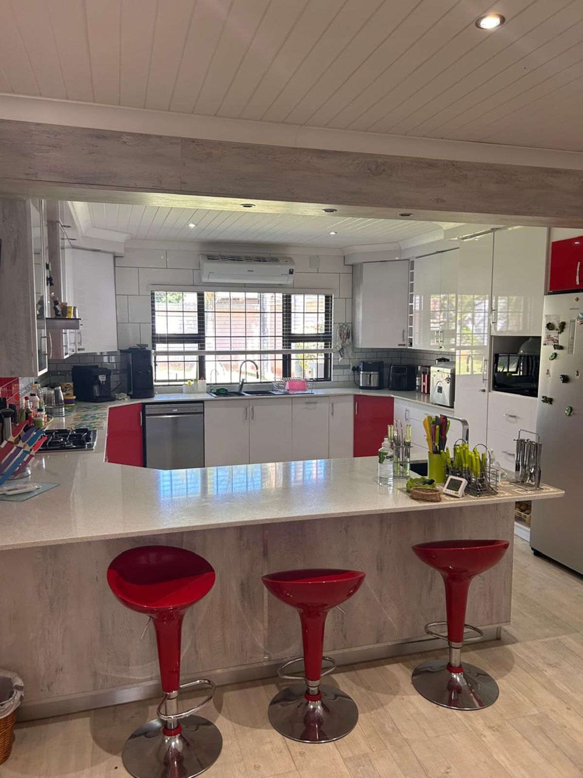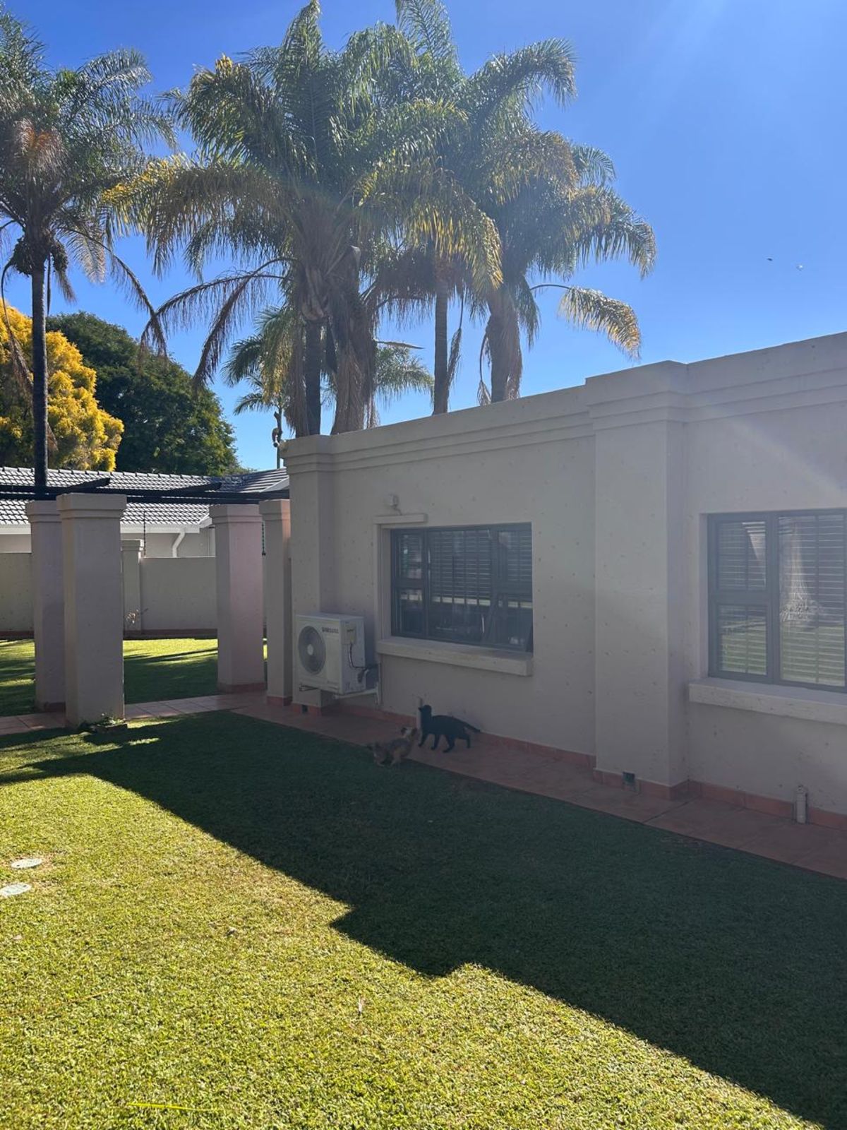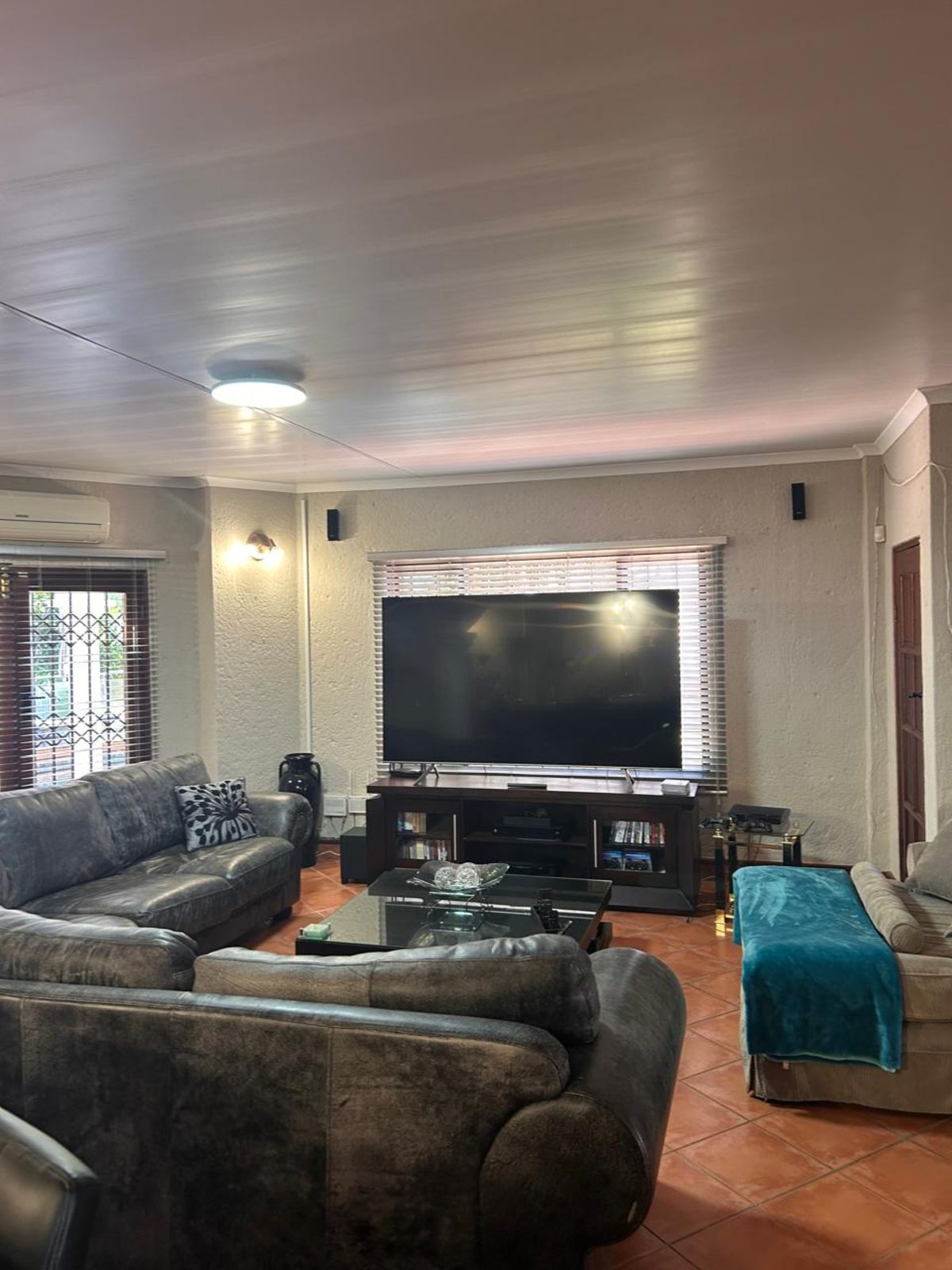 3 spacious bedrooms, all with built-in cupboards and air conditioning.