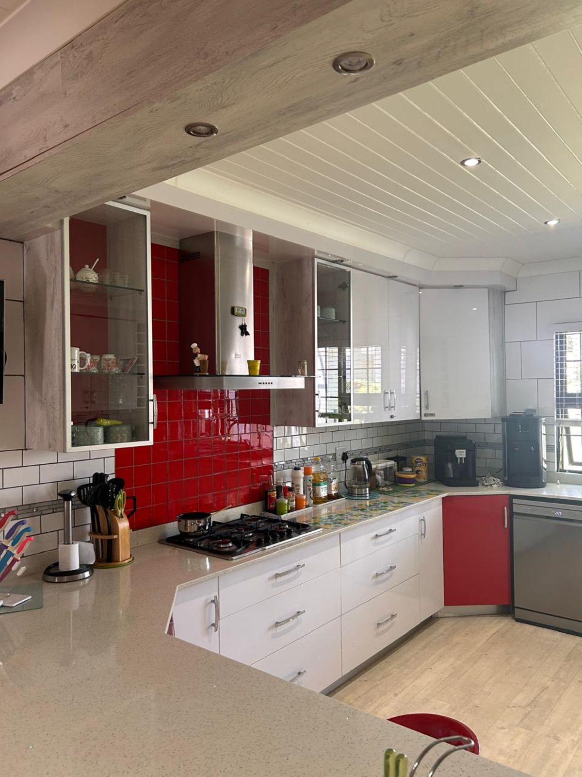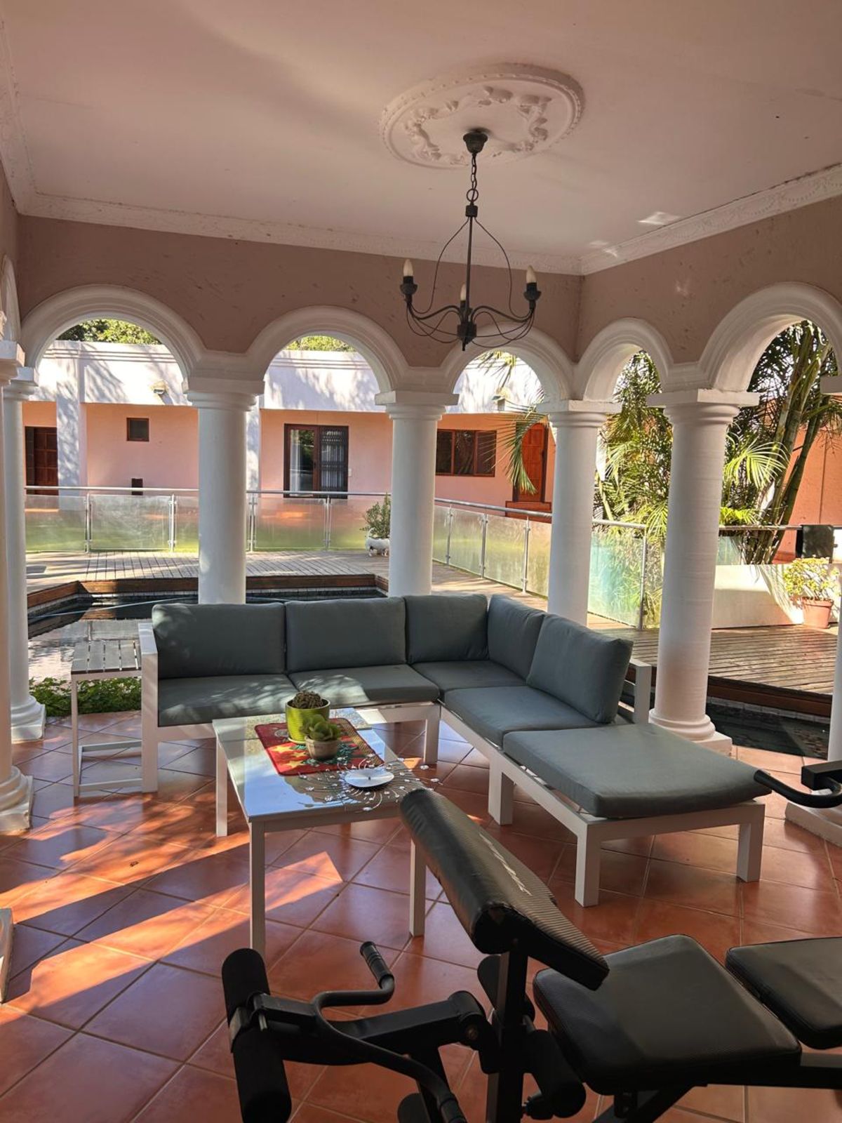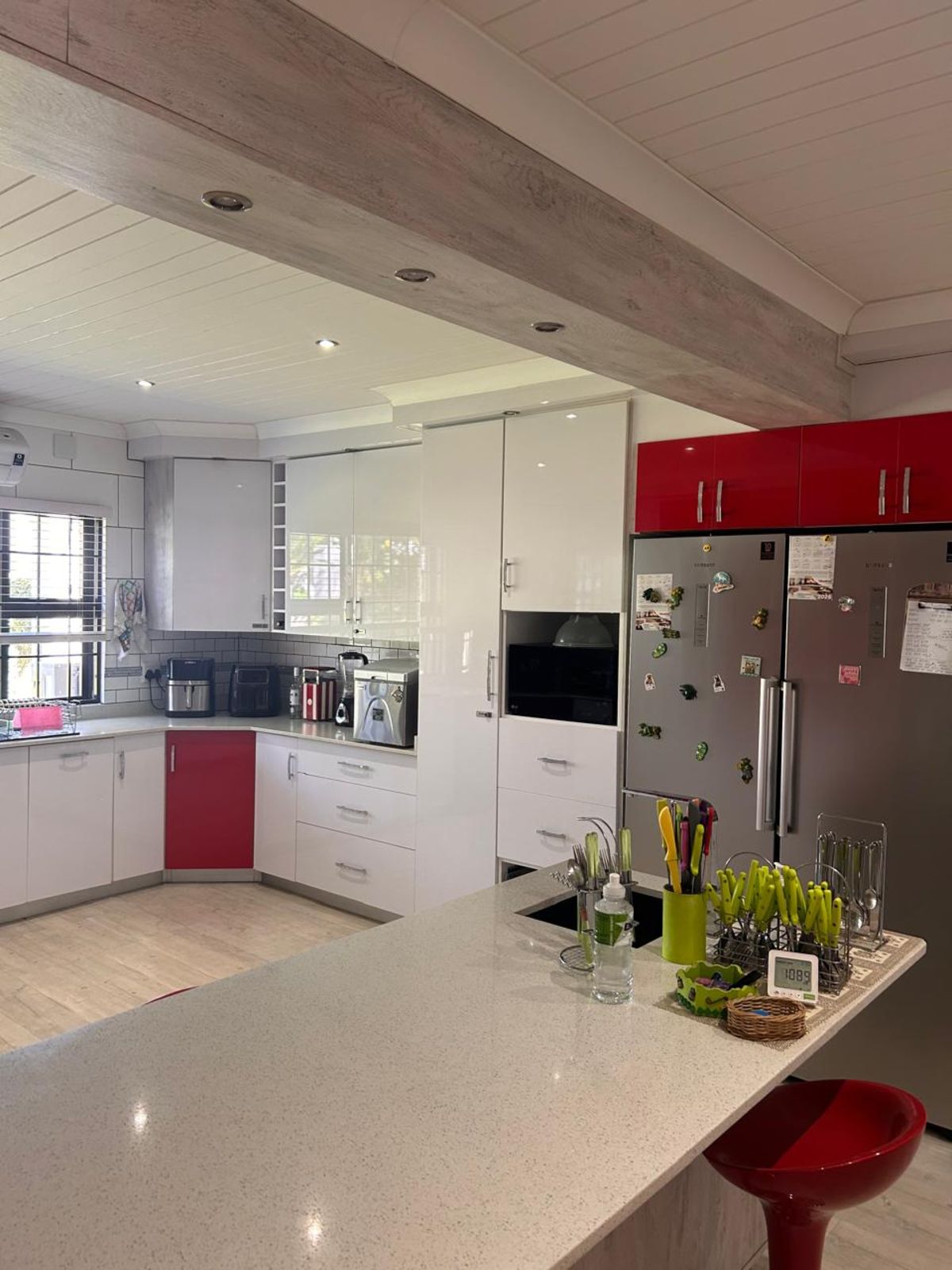 3 spacious bedrooms, all with built-in cupboards and air conditioning.