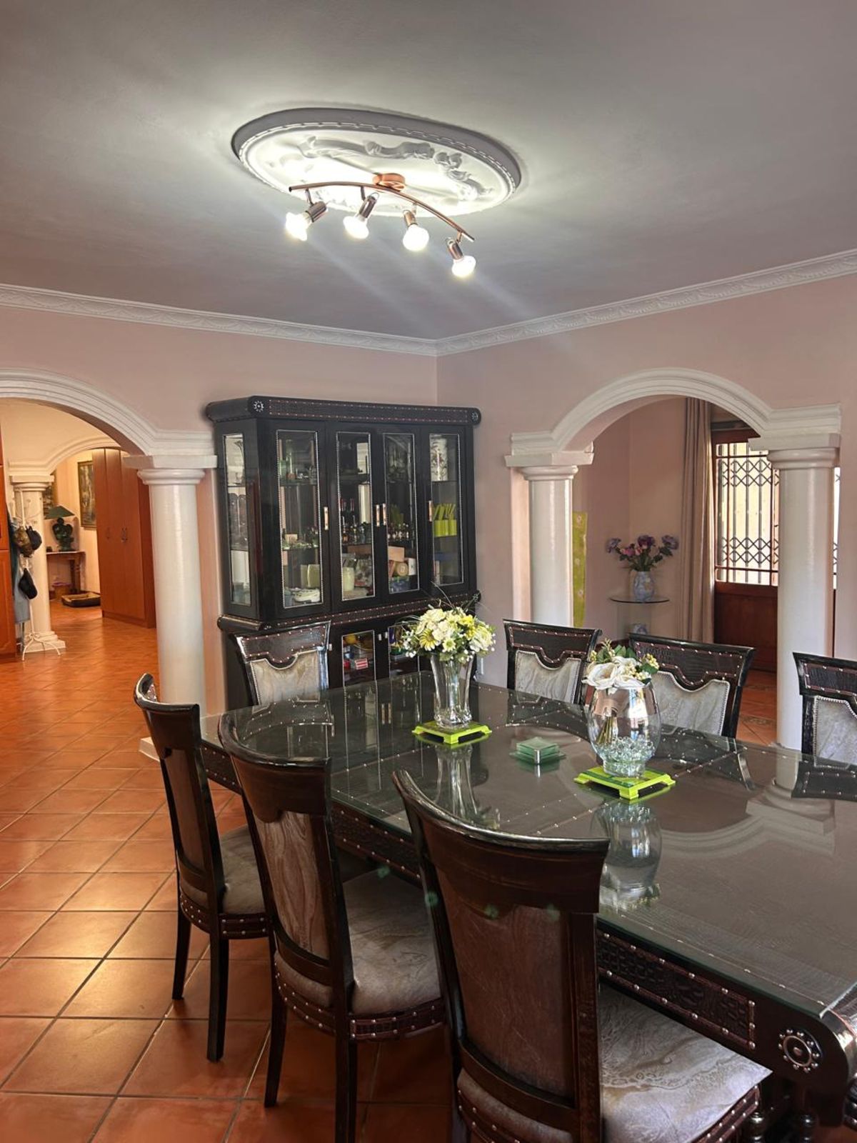 Elegant dining room with its own fireplace for memorable meals and gatherings