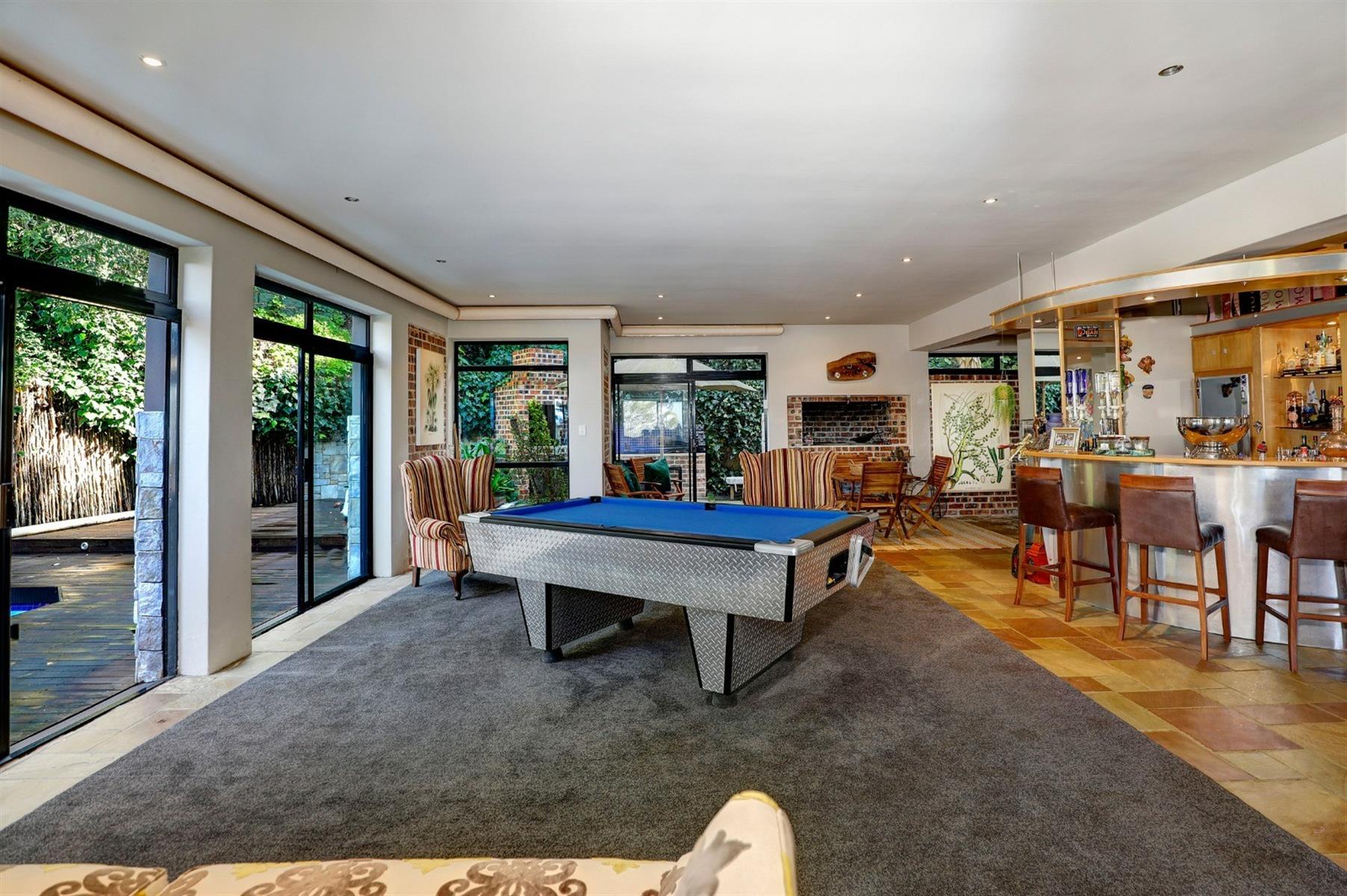 Multiple entertainment areas – Indoor/outdoor braai, bar, pool, deck, and TV lounge.