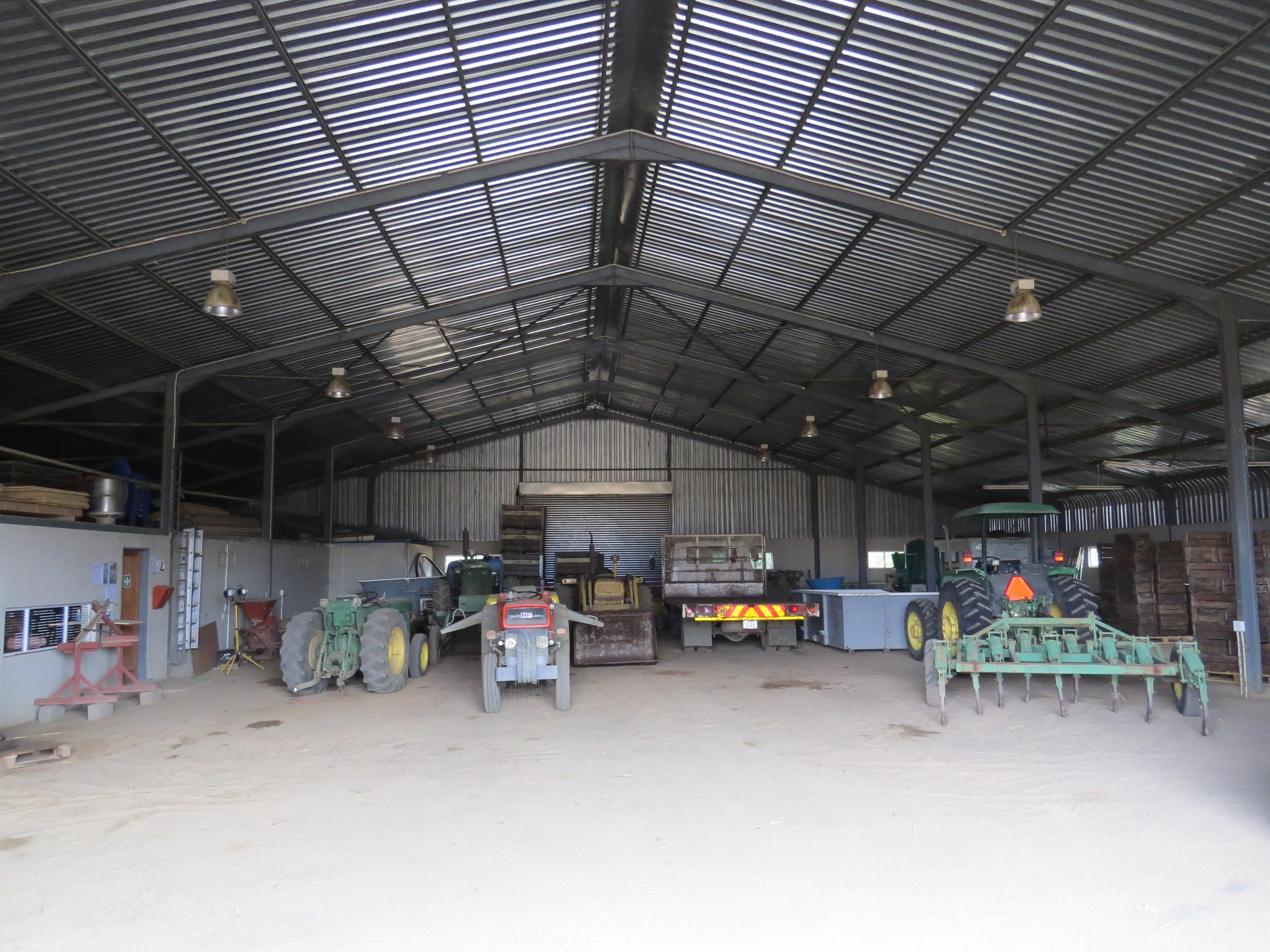 A substantial building infrastructure is evident, consisting of a delightful 4 bedroom/2,5 bathroom main house of 425 sq meters built in 2013 and located in a manicured garden, a big functional shed covering 810 sq meters built in 2004 containing a flatlet for a farm manager, an office, a storeroom, a workshop and garages. Other buildings include 1 old shed with a lean-to and also 7 labourer cottages with electricity, water, toilet and bathroom.