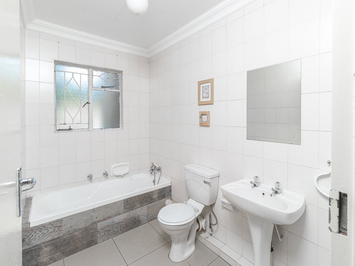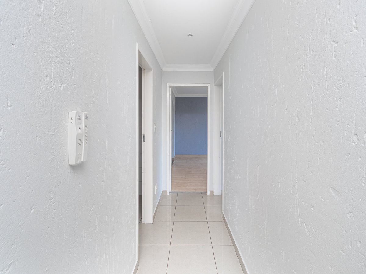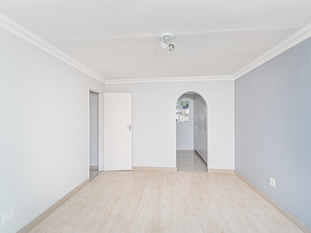Main bedroom - laminated flooring and a walk-in dressing area.