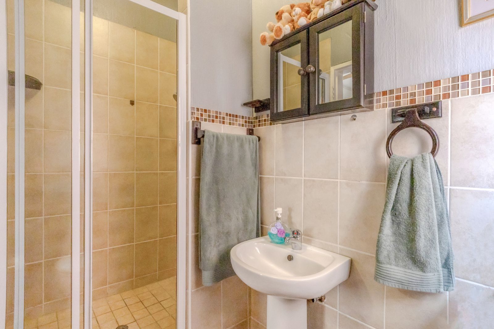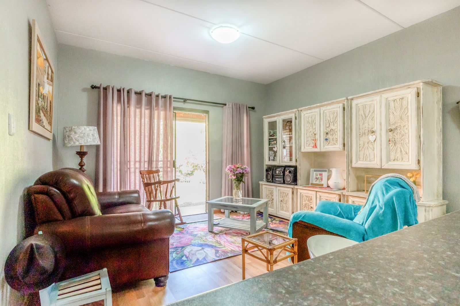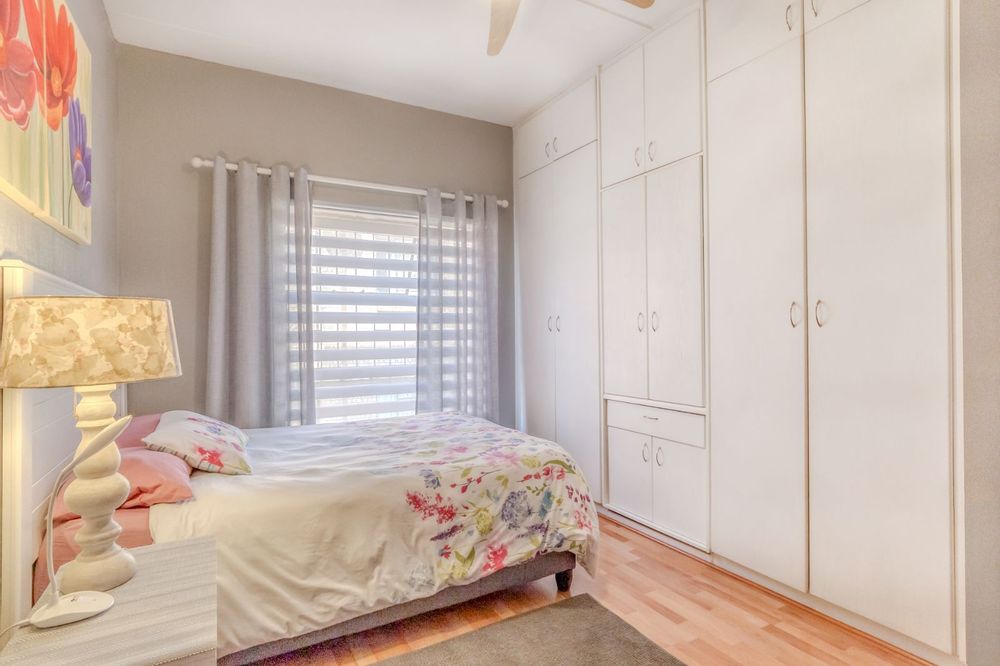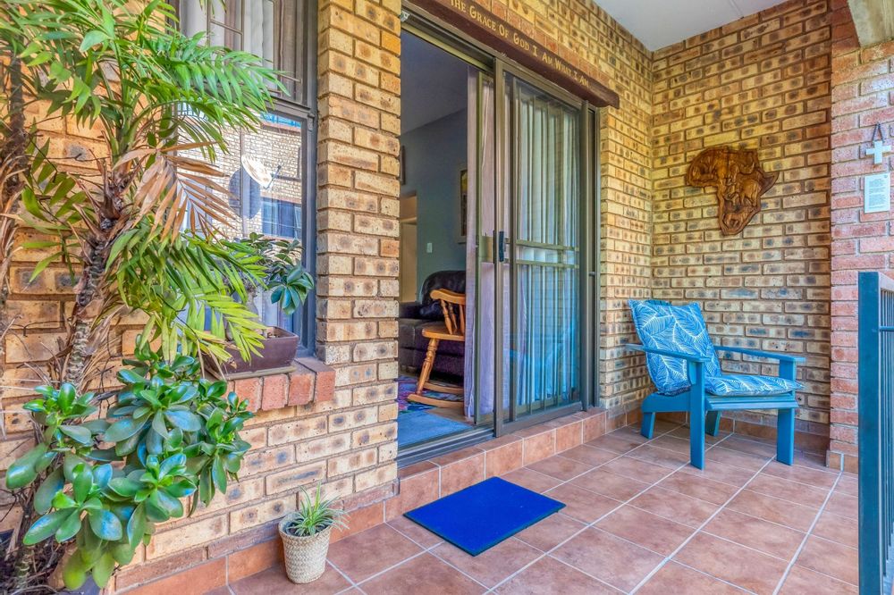 The generous lounge opens seamlessly to a patio where you can enjoy morning coffee or an evening sundowner while overlooking the beautifully maintained communal gardens and listening to the gentle stream nearby – a perfect spot to unwind.