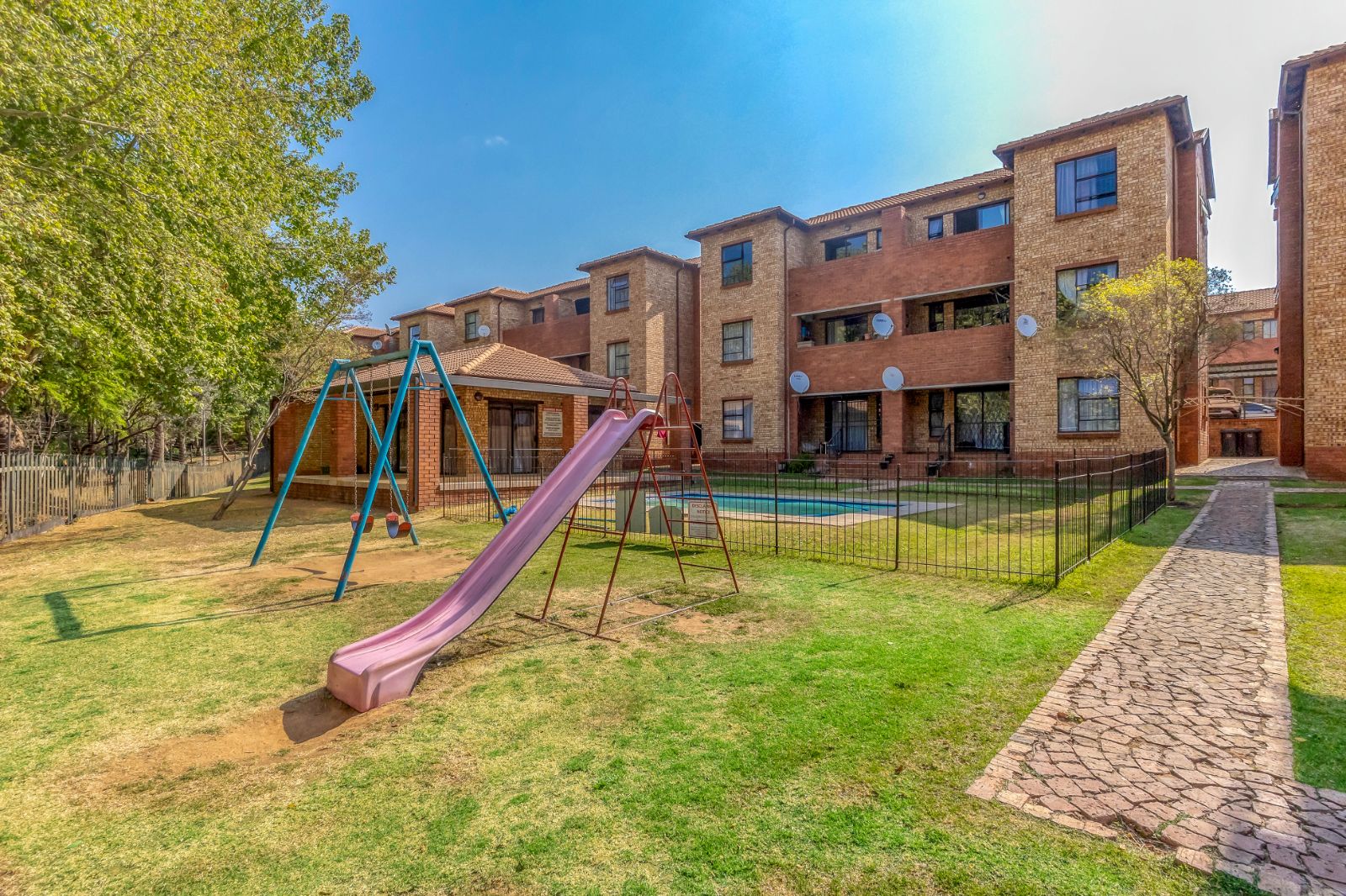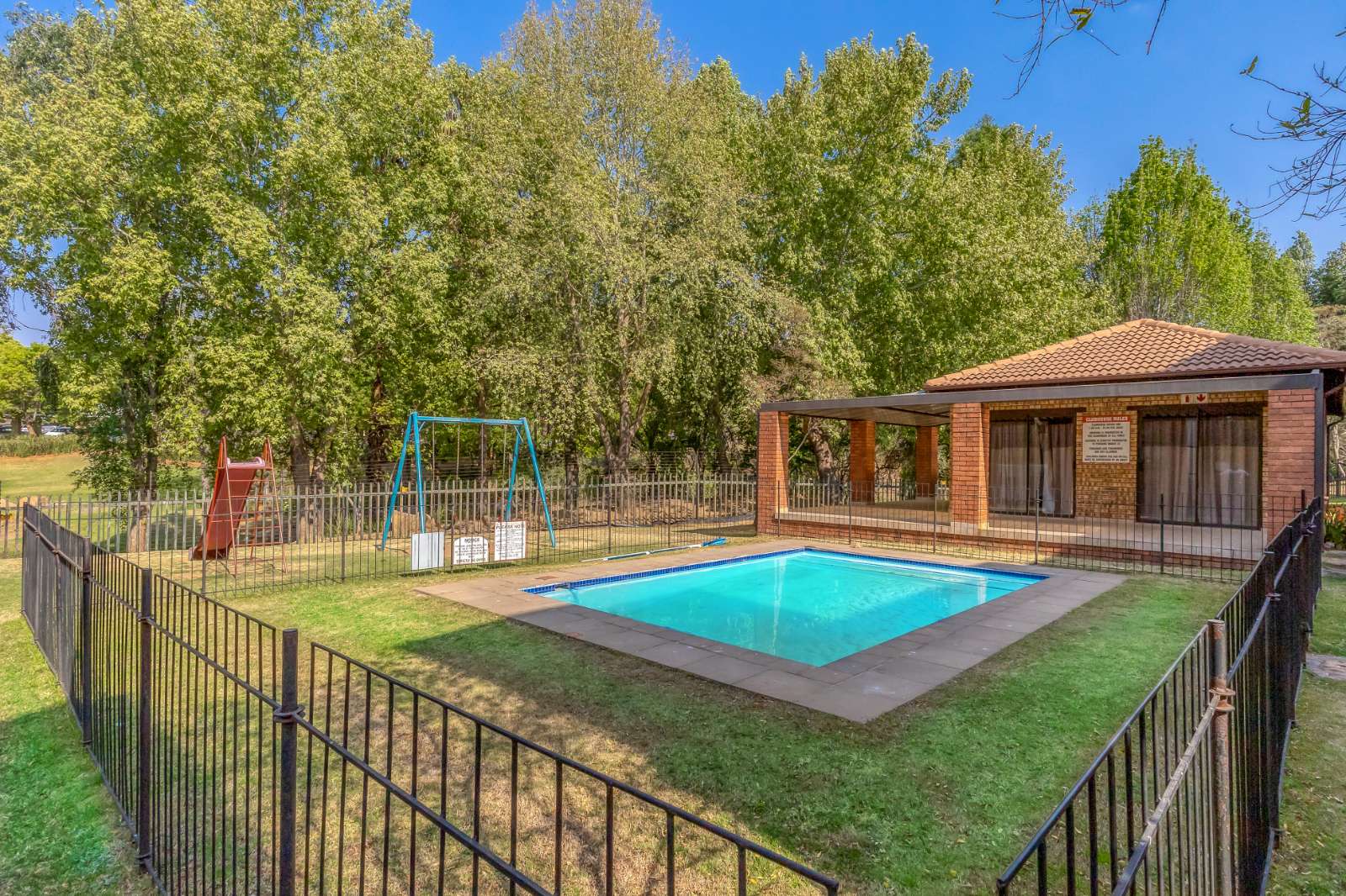 -Fenced communal swimming pool