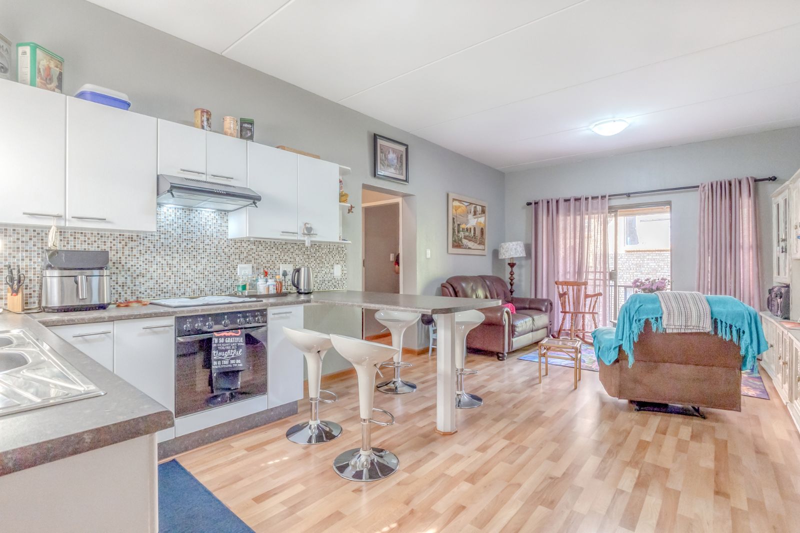 Step inside and feel instantly at home. The open-plan layout creates a natural flow from the lounge to the kitchen and onto your outdoor space, offering a layout that is both practical and welcoming. Neutral tones and laminated wood flooring throughout add to the sense of space and homeliness.