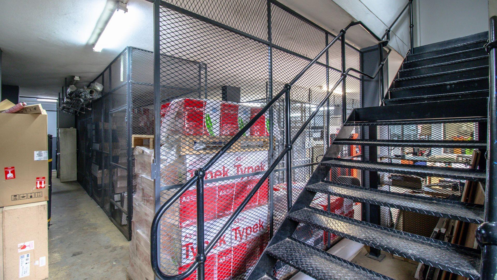 - Ground Floor: Reception, private offices, boardroom, server room/walk-in safe, warehouse access, kitchen and bathroom facilities