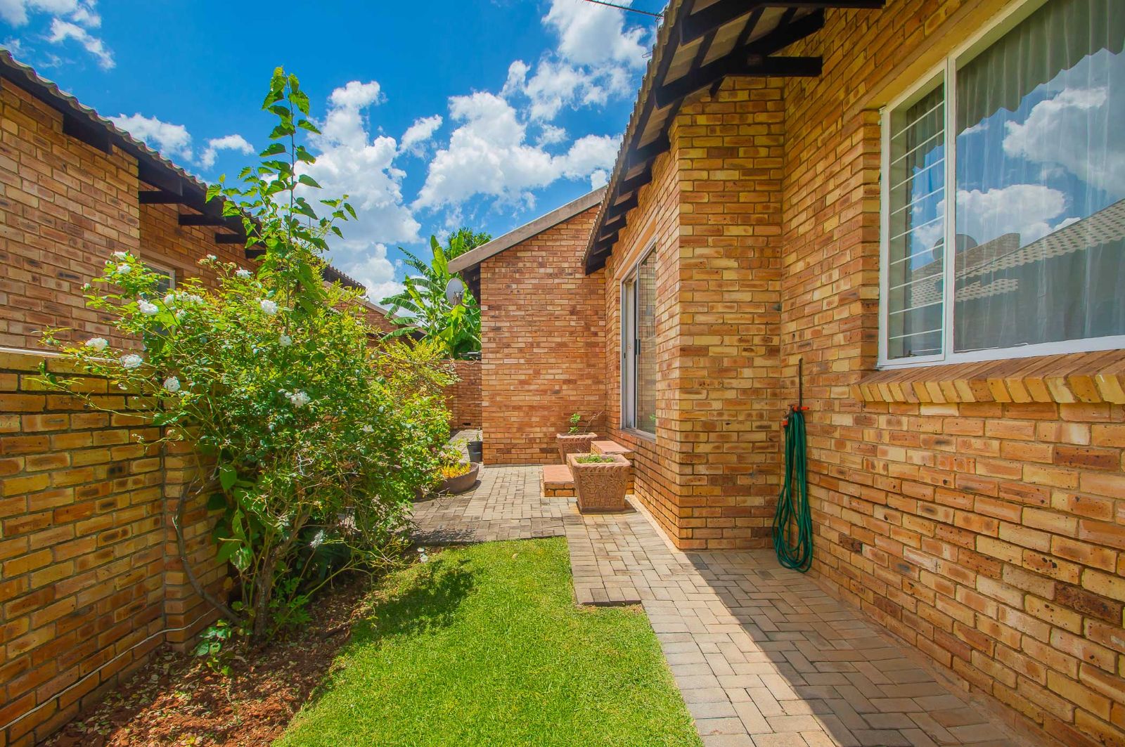 The townhouse boasts a spacious, private garden, perfect for relaxing and entertaining