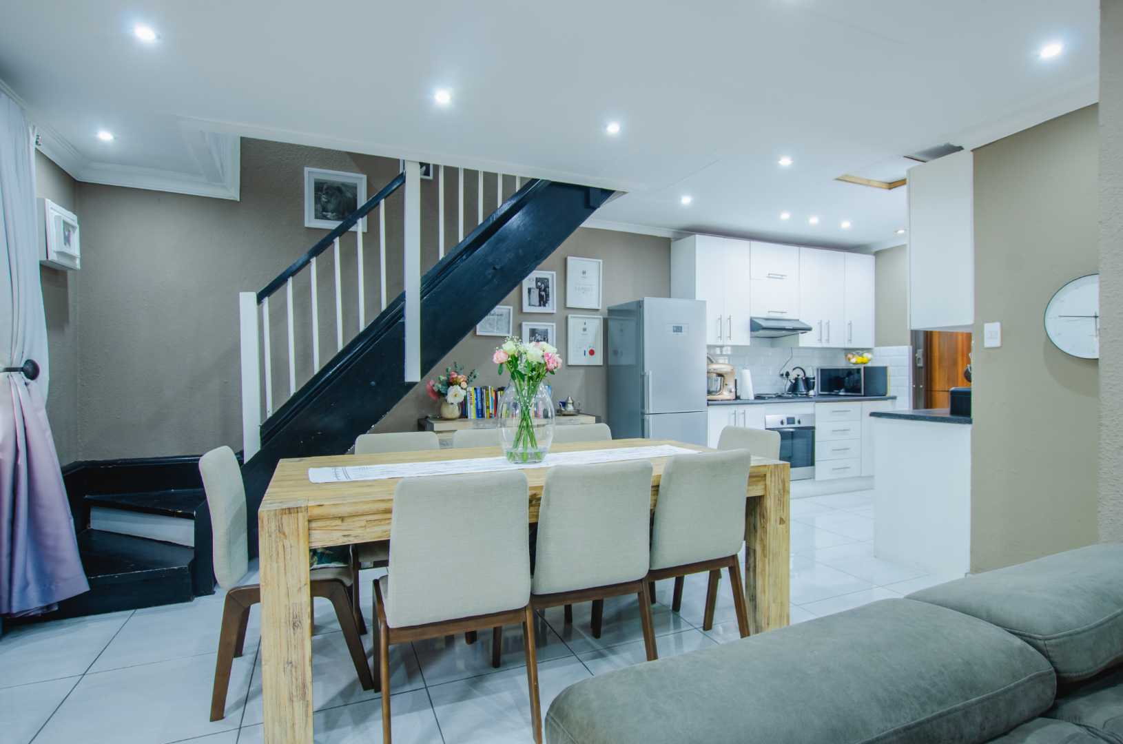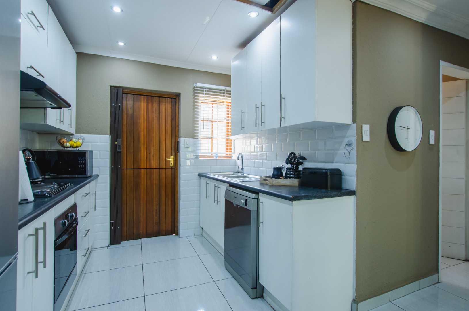 As you walk through the patio, you're led into the living area that opens up into the dining area and kitchen with all the modern fittings and fixtures. The kitchen comes with an electric stove and currently has space for a single door fridge.