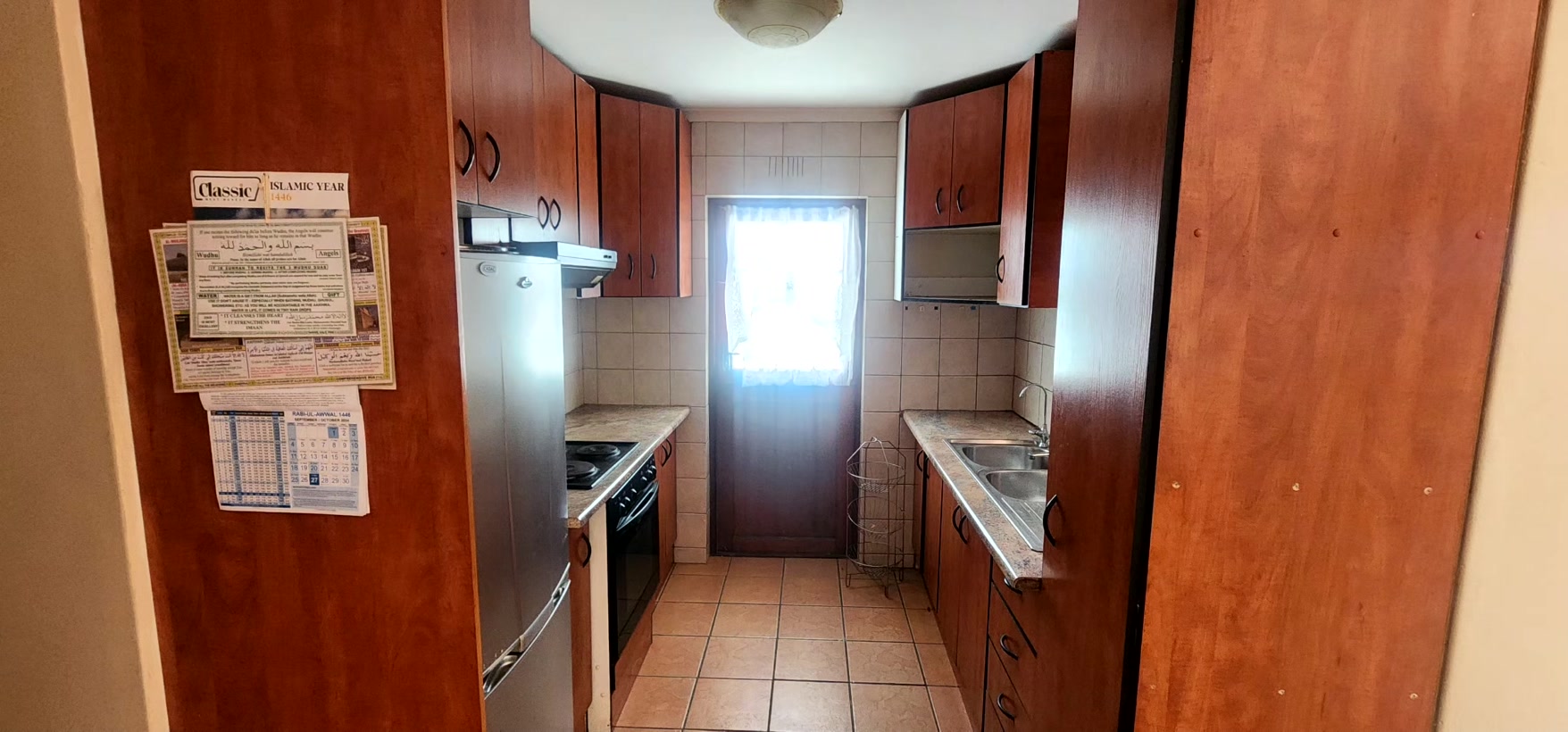 This family home offers 2 bedrooms (built in cupboards in main with ensuite), open plan tiled lounge with fully fitted kitchen, family bathroom with bath toilet and basin.