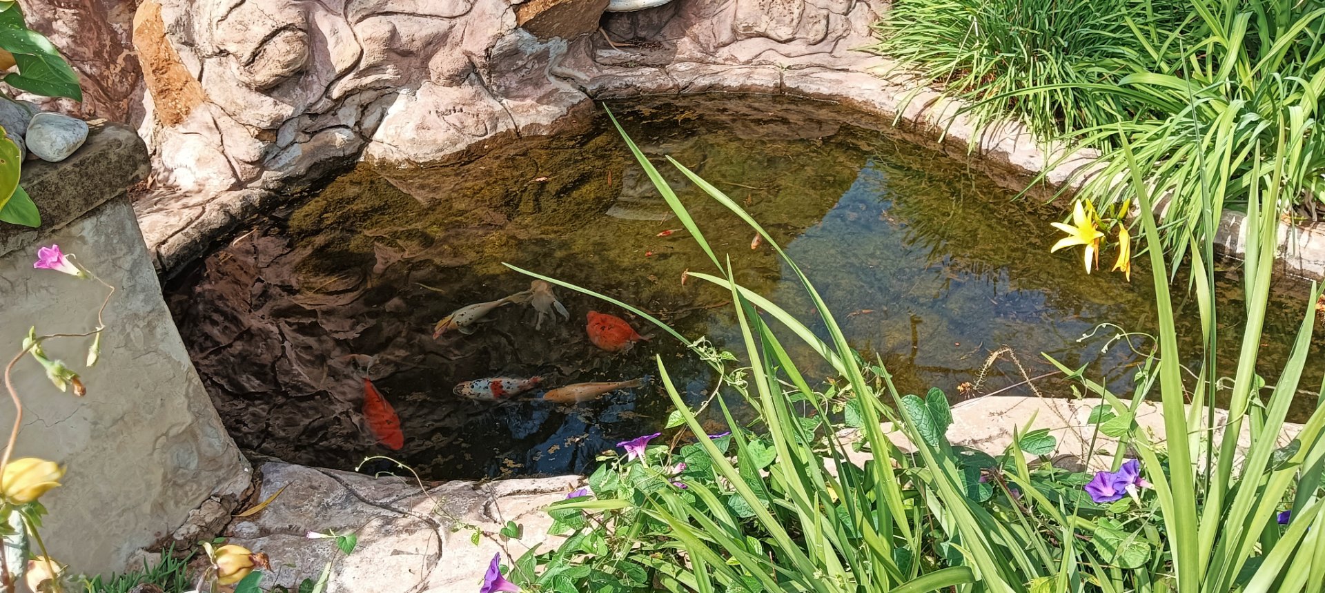 The main house features a charming wooden kitchen, a centrally located living room, four spacious bedrooms, two bathrooms, and three oversized garages—ideal for families or those who love extra space.