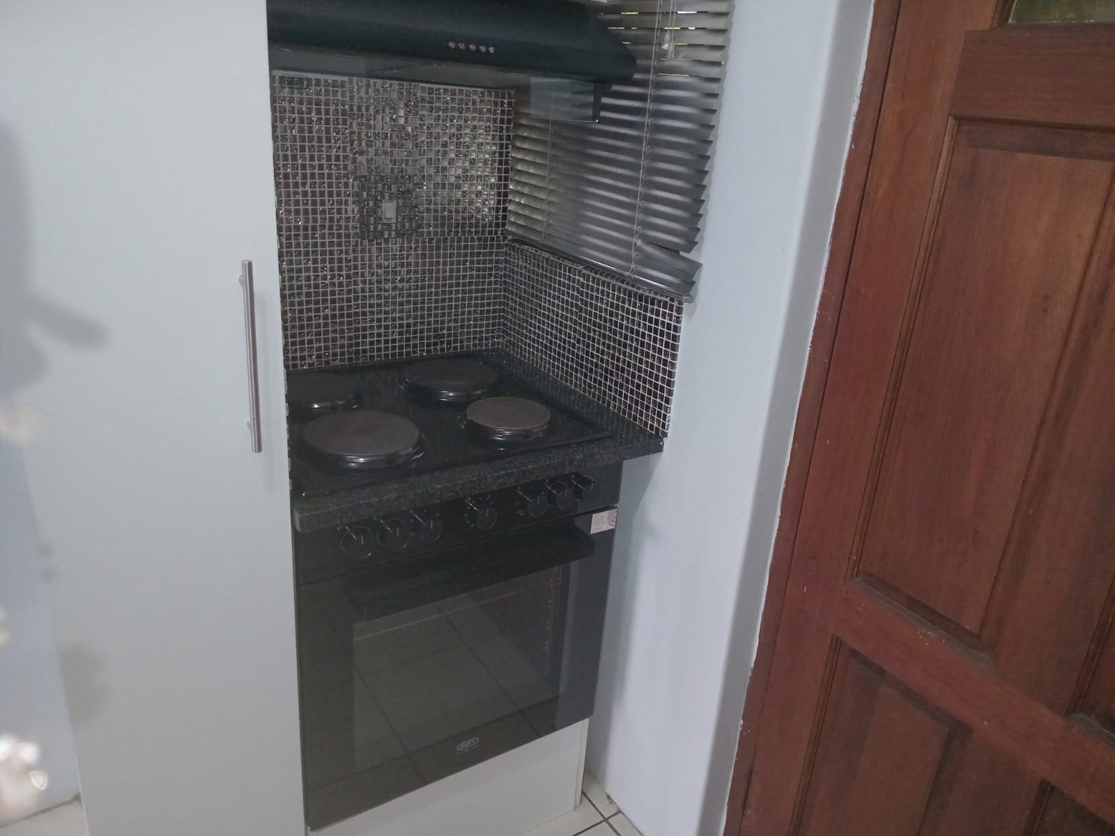 One Bedroom with built-in cupboards, 1 bathroom, Open plan lounge and kitchen fitted with cupboards and a stove. There is a single under cover parking. Electricity is prepaid and water is charged at a standard rate of R400.00 p.m.