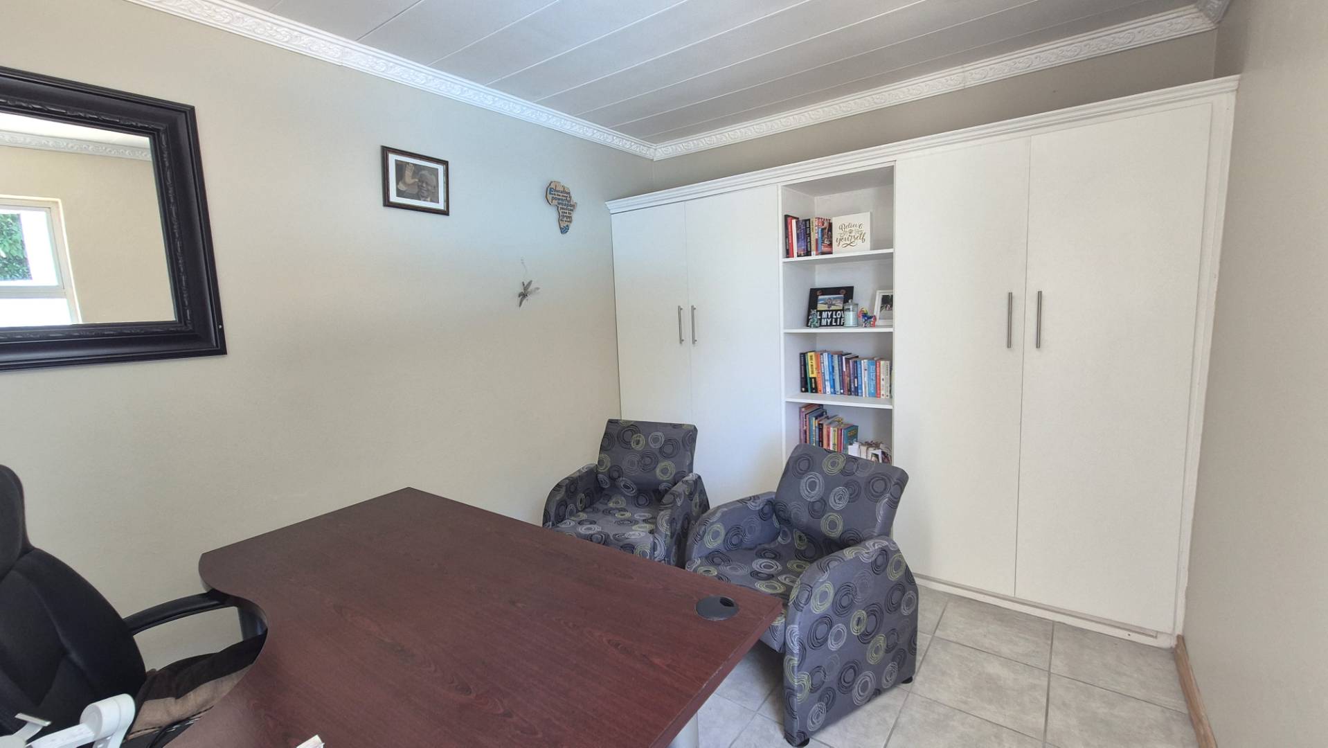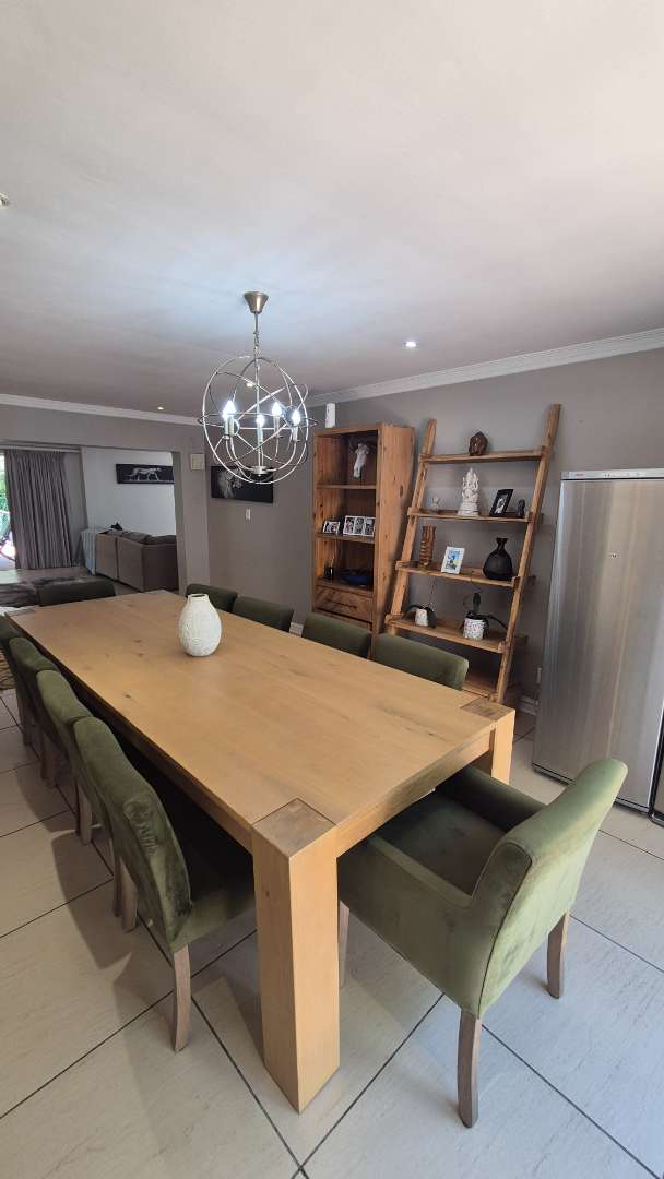 Tucked away at the end of a quiet, private cul-de-sac, this charming split-level home offers space, versatility, and warmth in an idyllic setting. A sloping tarred driveway leads down to the double garage and double carport, complete with a built-in cupboard. A conveniently placed door provides direct access into the scullery—perfect for offloading groceries with ease.