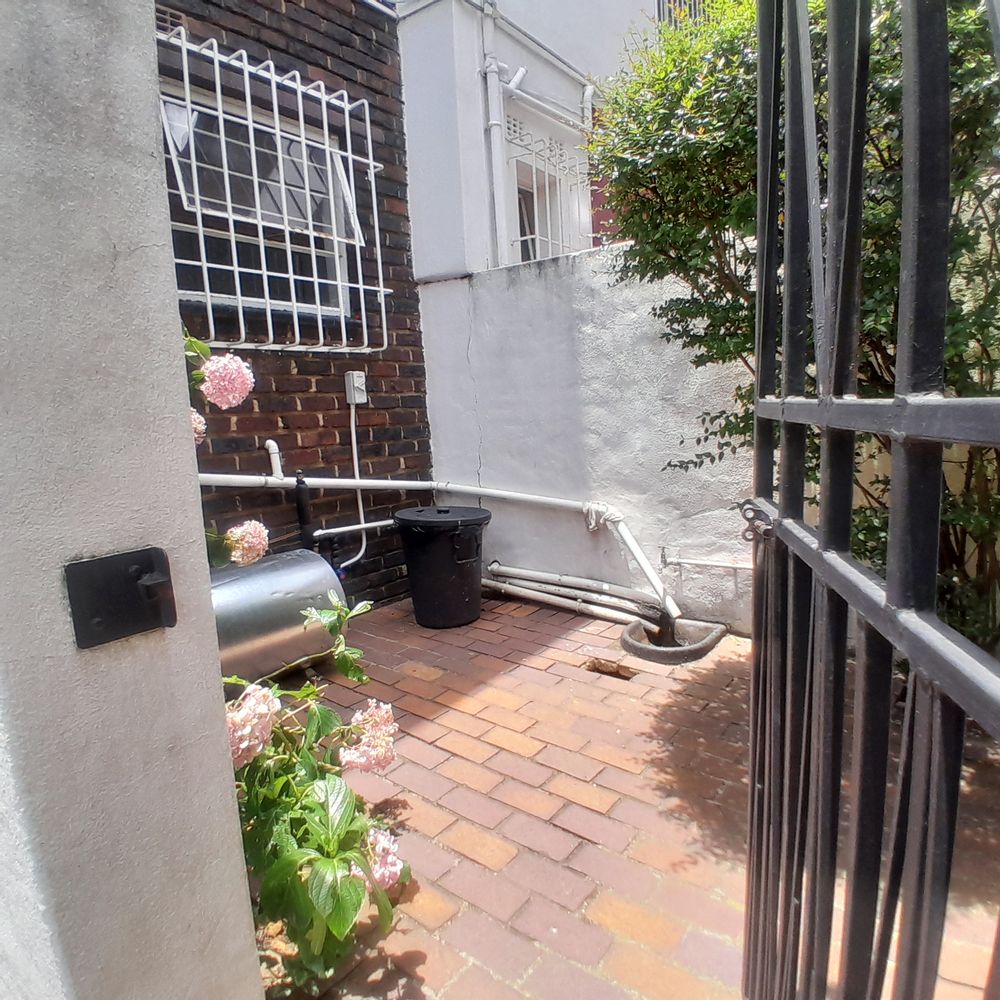 The apartment opens to a spacious kitchen with space for 1 wet appliance, a single door fridge and lots of cupboards. The living lounge/dining area spreads seamlessly and opens to a covered patio that overlooks a garden. There is a mini storeroom in the living area for those store-away items. A guest bathroom in the entrance hall provides privacy for the upper floor with bedrooms.