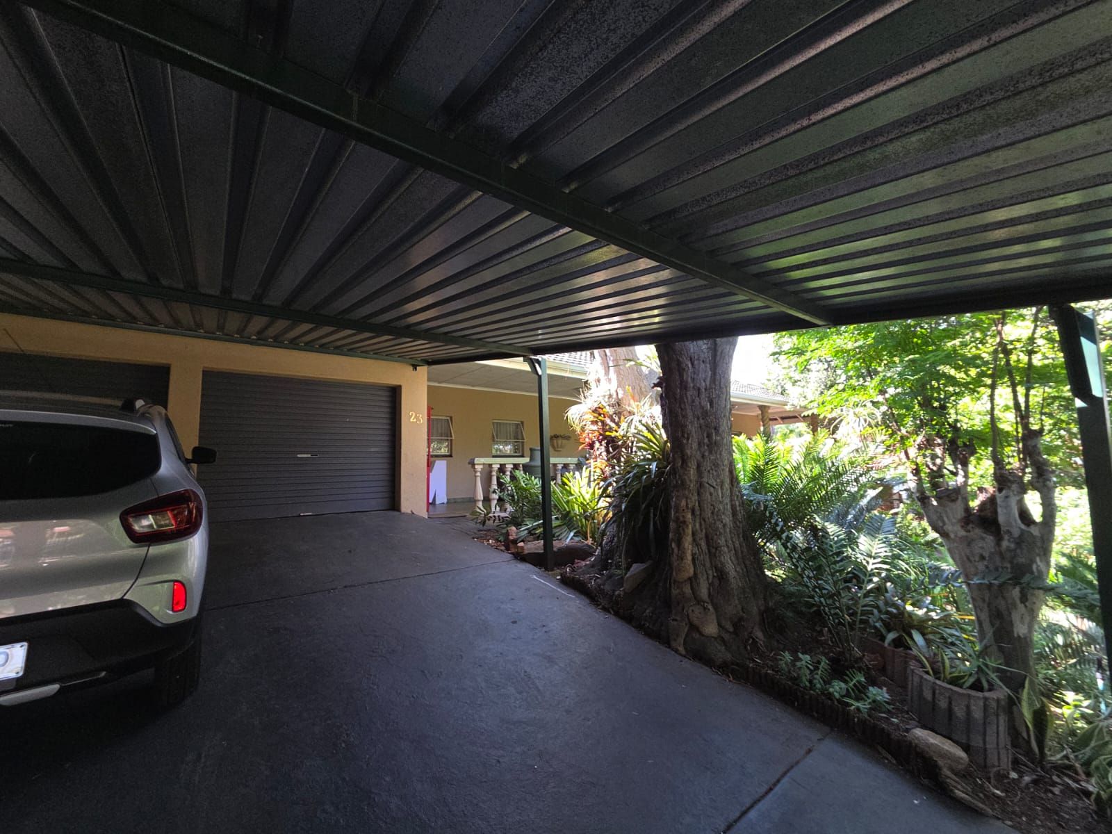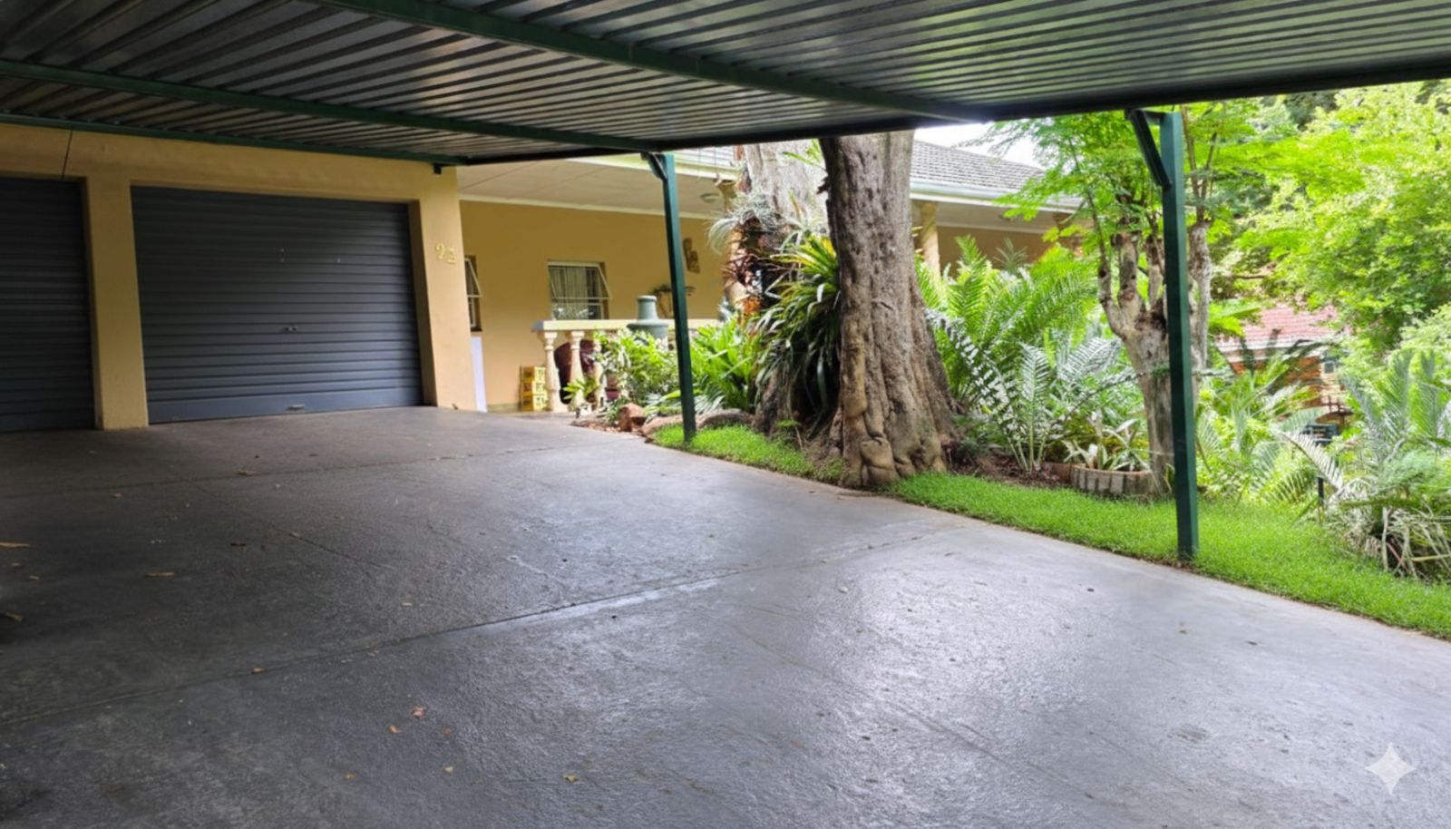 Parking is plentiful with a double garage and an extended carport that fits up to four vehicles. Additional conveniences include an outside laundry, two air conditioners, and a 5 000-liter backup water tank.