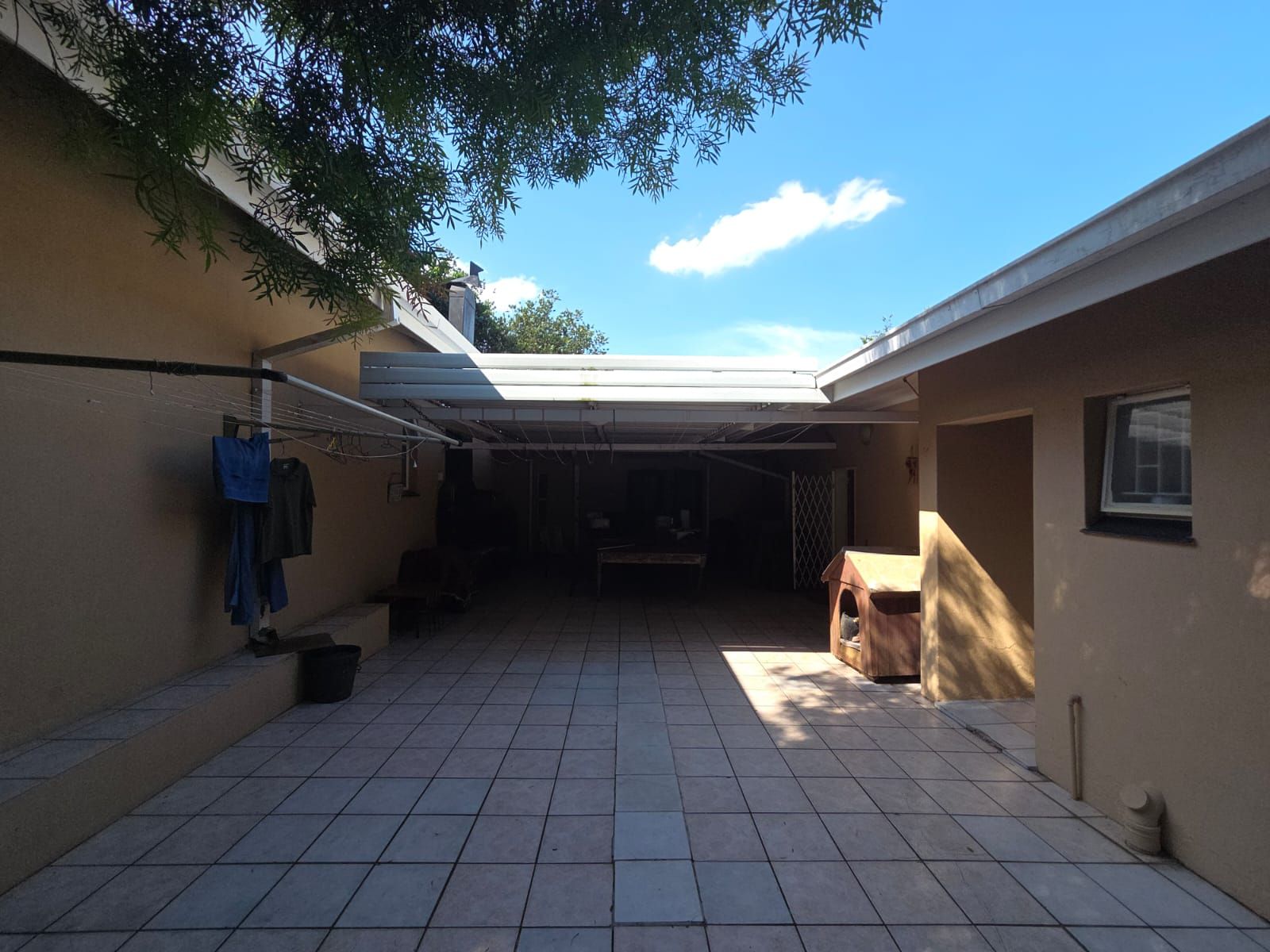 The entertainment courtyard is designed for effortless gatherings, featuring a built-in braai and a durable awning for year-round use. A charming front verandah overlooks the lush, established garden, creating a peaceful setting for morning coffees or relaxed afternoons.