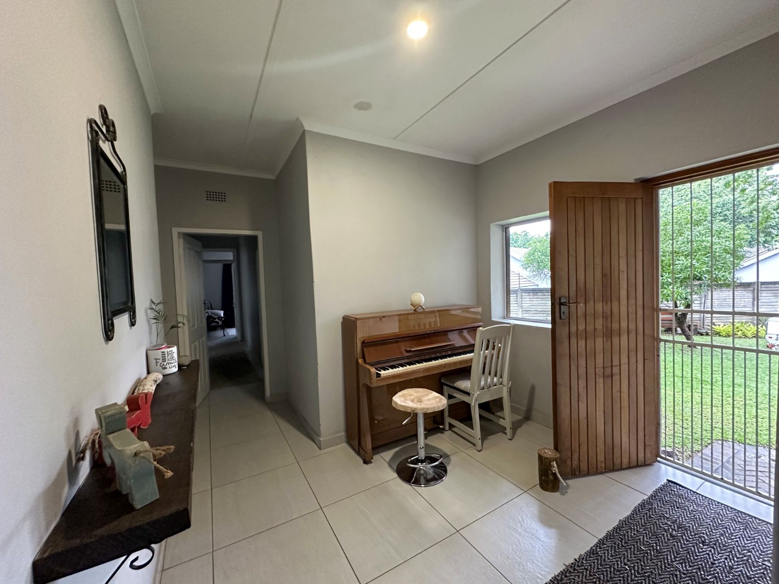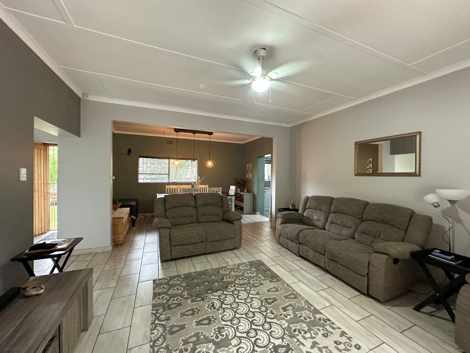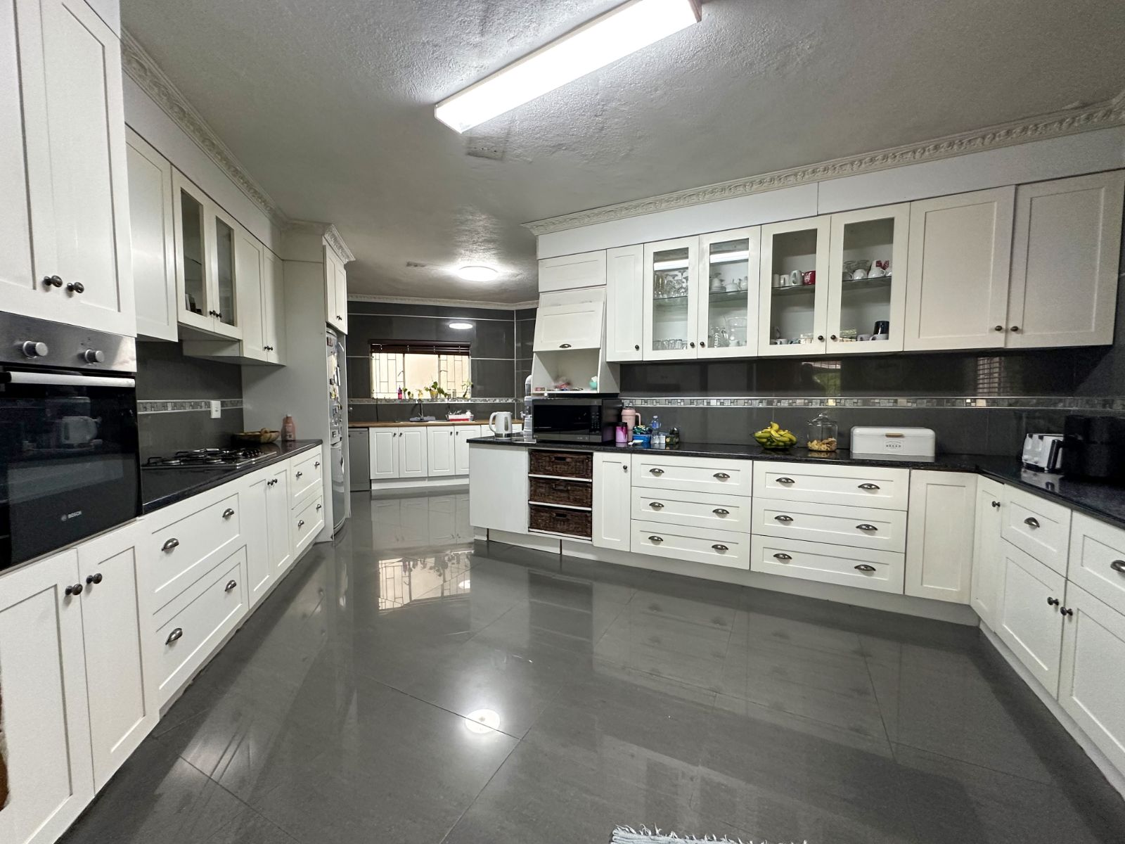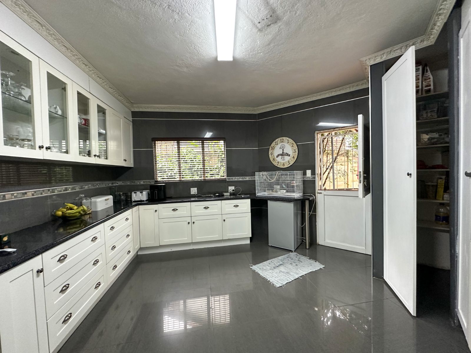 At the heart of the home is a very spacious, well-equipped kitchen with ample cupboard space, complemented by a separate scullery for added convenience and functionality.