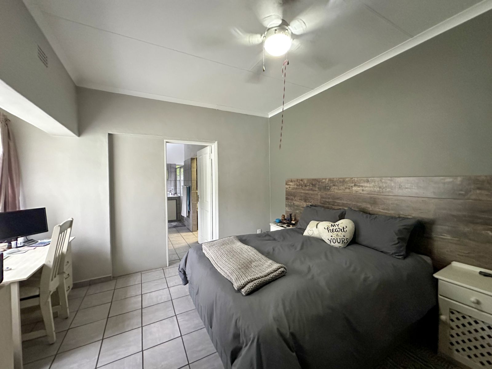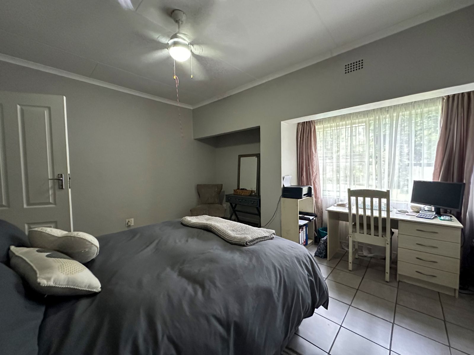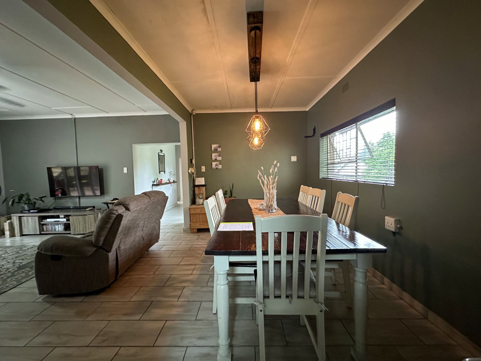 At the heart of the home is a very spacious, well-equipped kitchen with ample cupboard space, complemented by a separate scullery for added convenience and functionality.