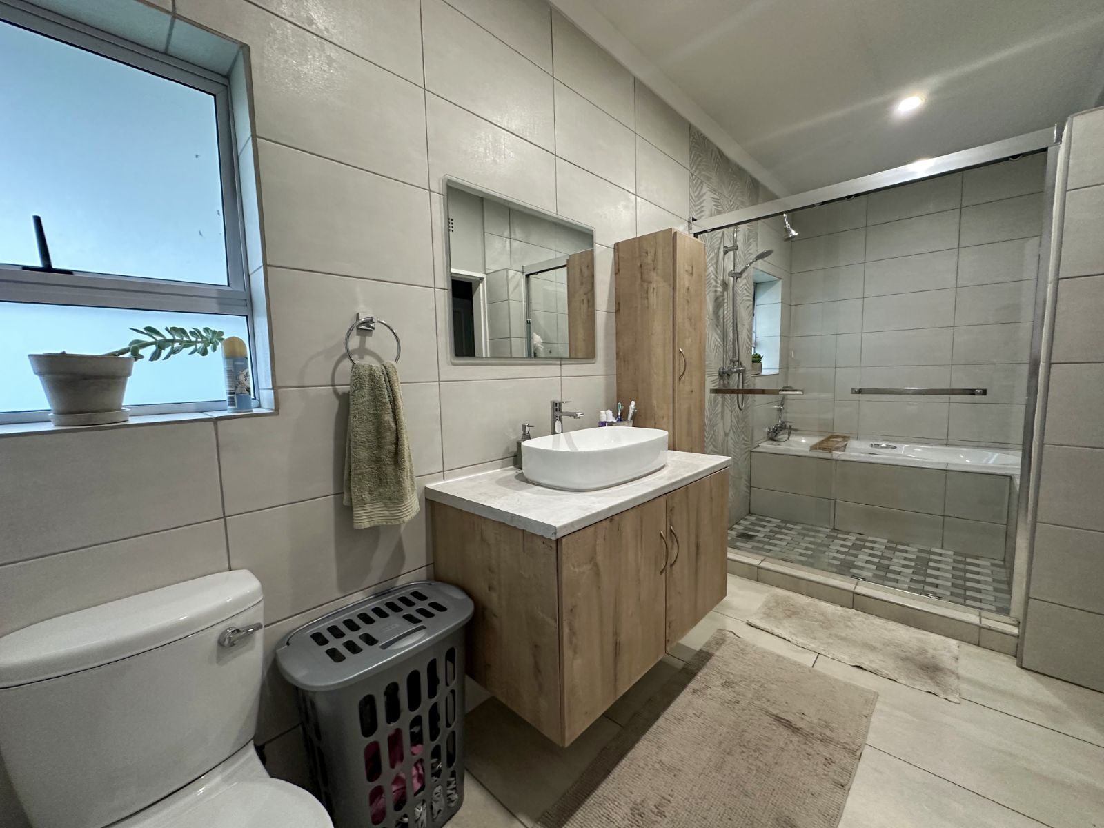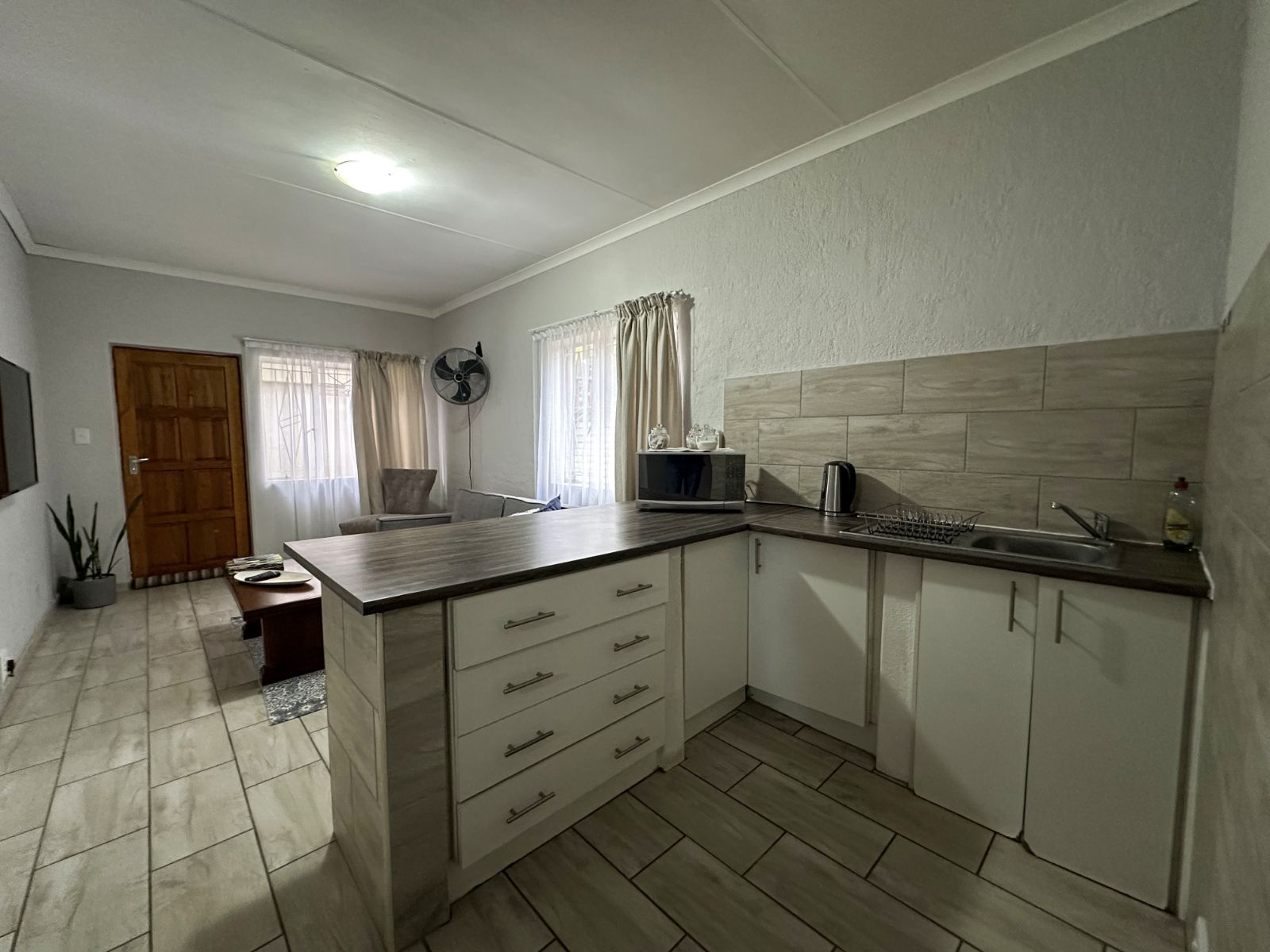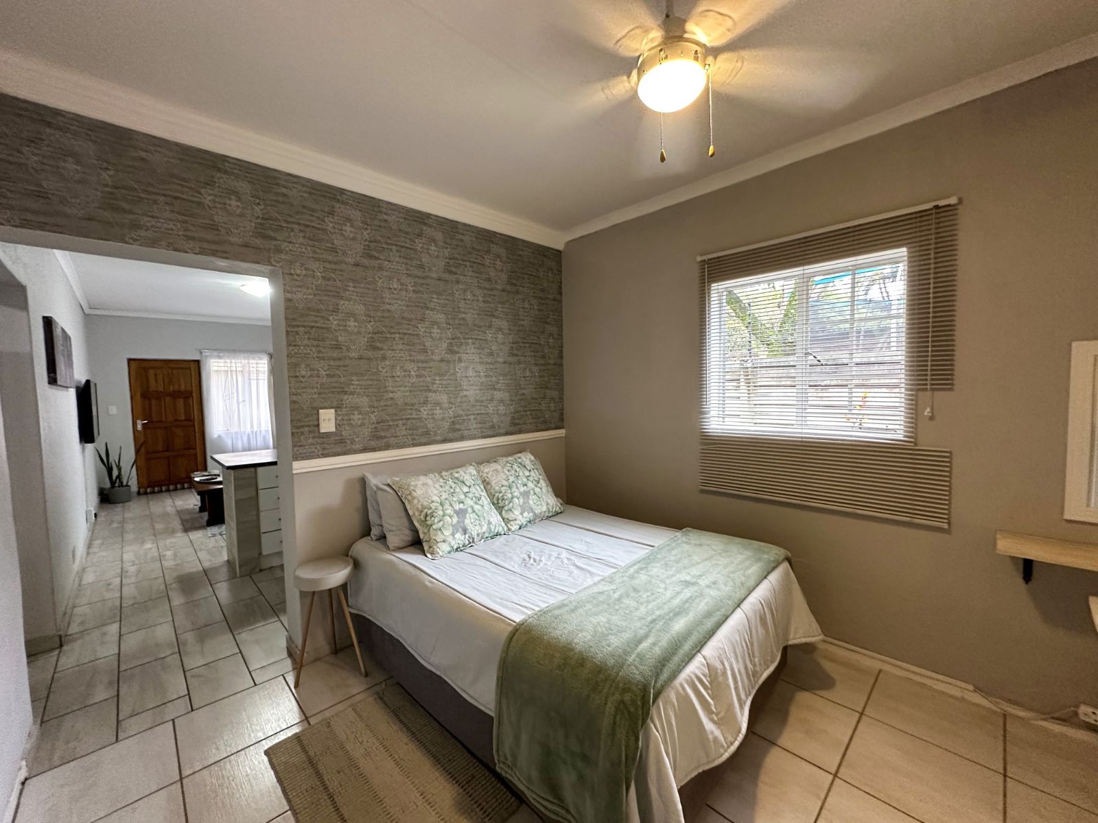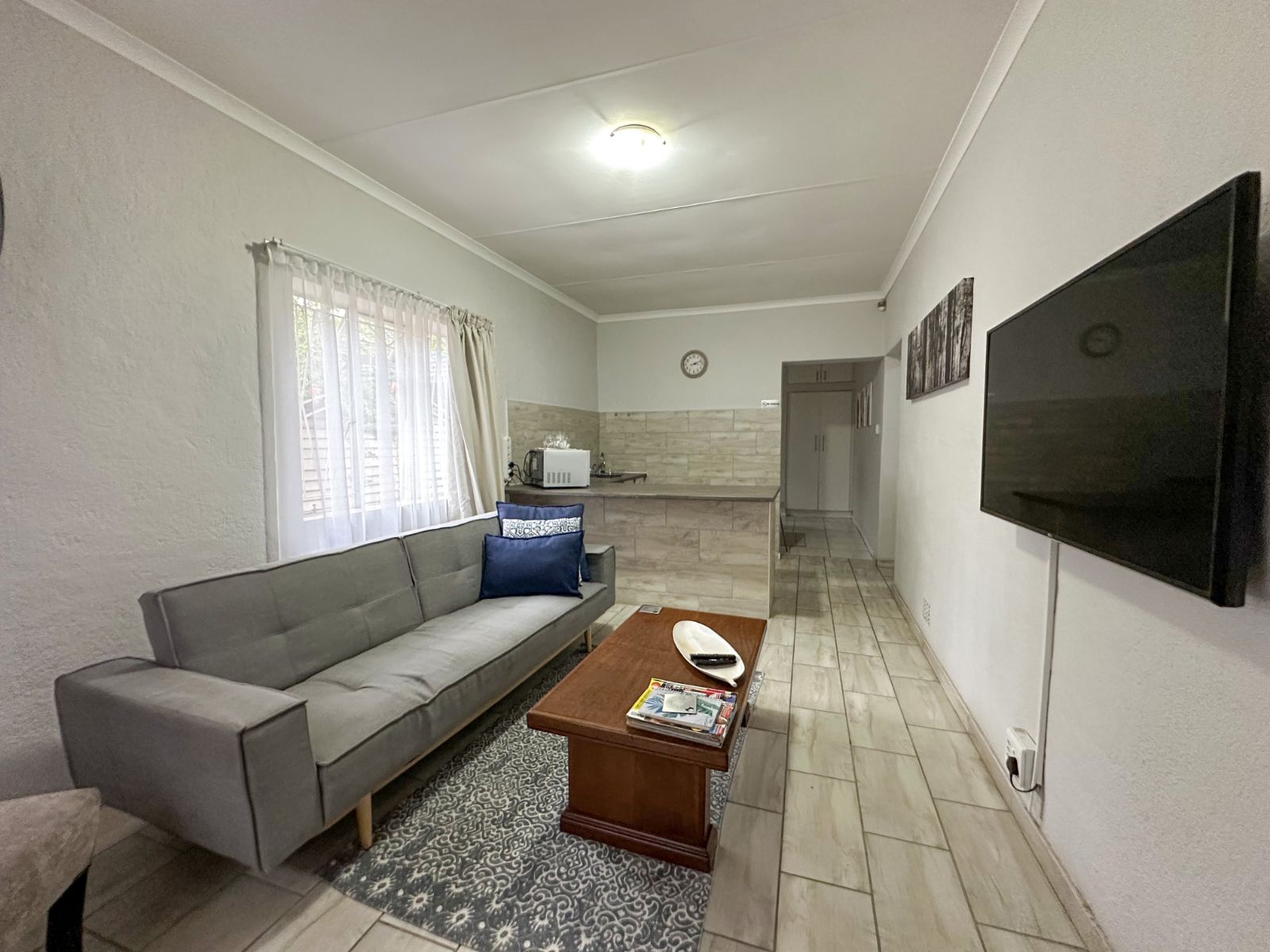 At the heart of the home is a very spacious, well-equipped kitchen with ample cupboard space, complemented by a separate scullery for added convenience and functionality.