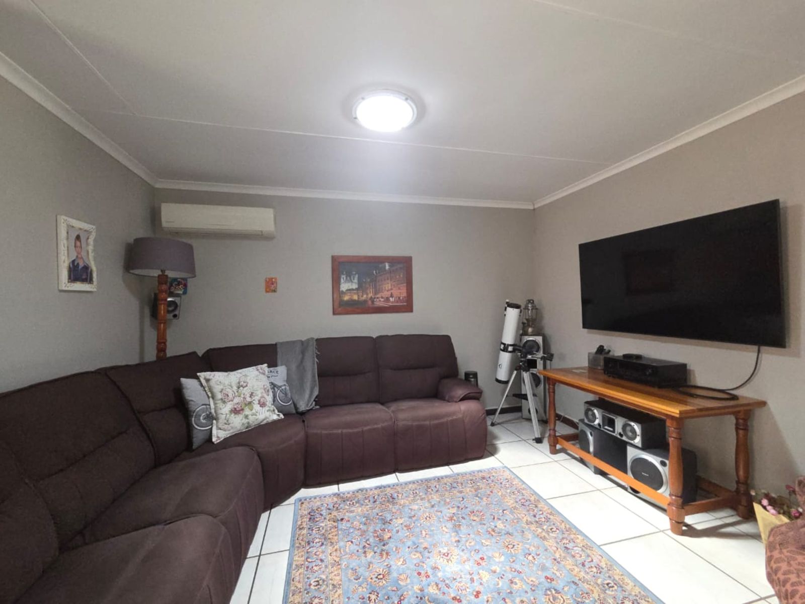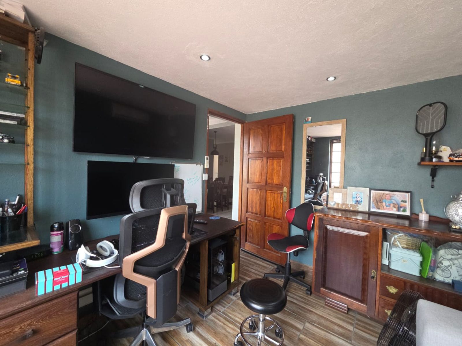 Accommodation includes three generously sized bedrooms and two elegant bathrooms. A dedicated study near the entrance offers a professional work-from-home setup. Climate control is effortless with ceiling fans and air conditioning throughout. Complemented by an inverter, battery backup, and solar energy system, this home delivers both sustainability and long-term cost savings.