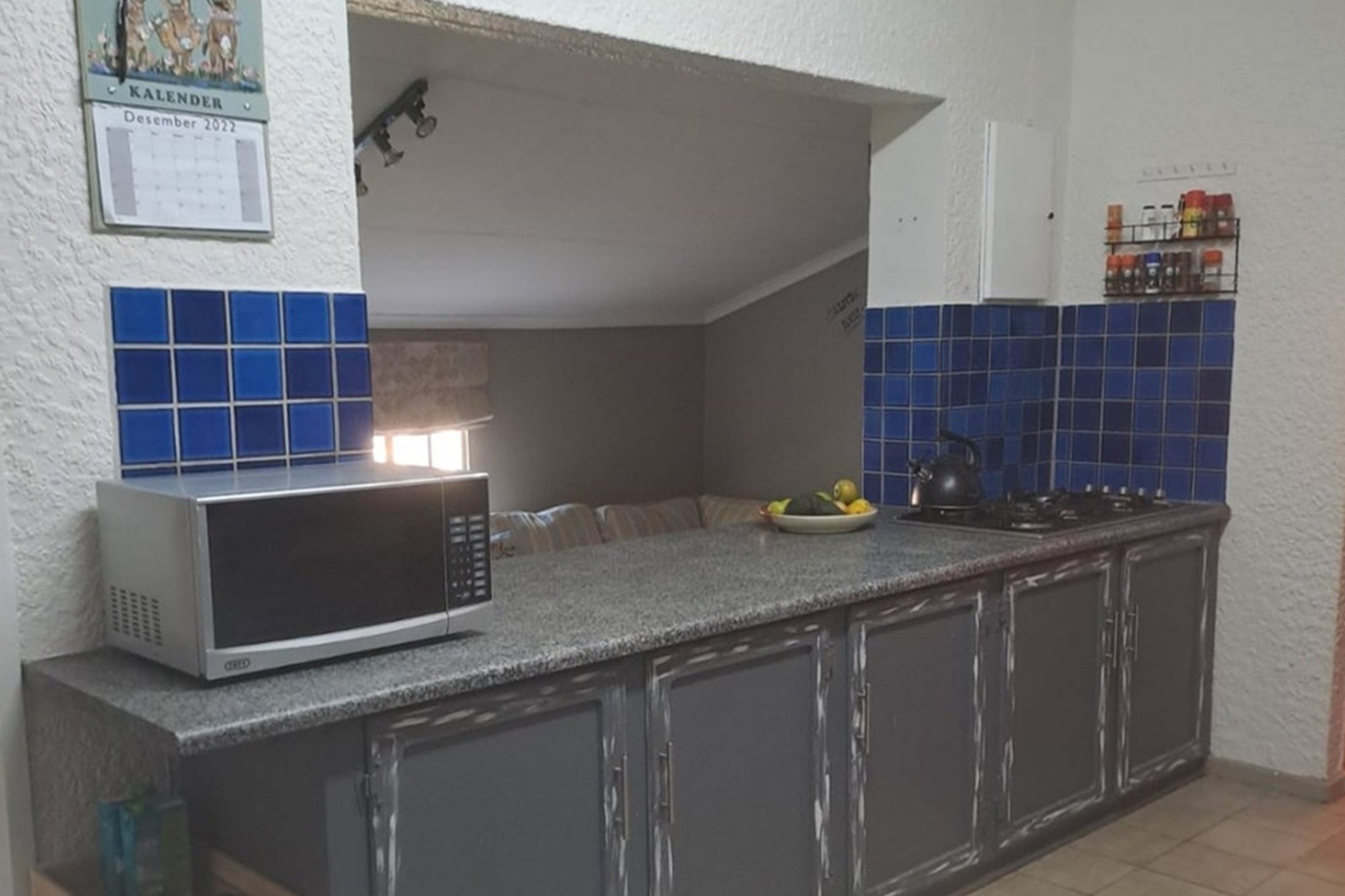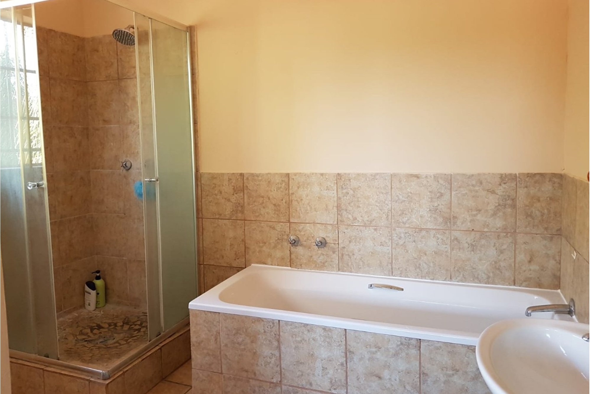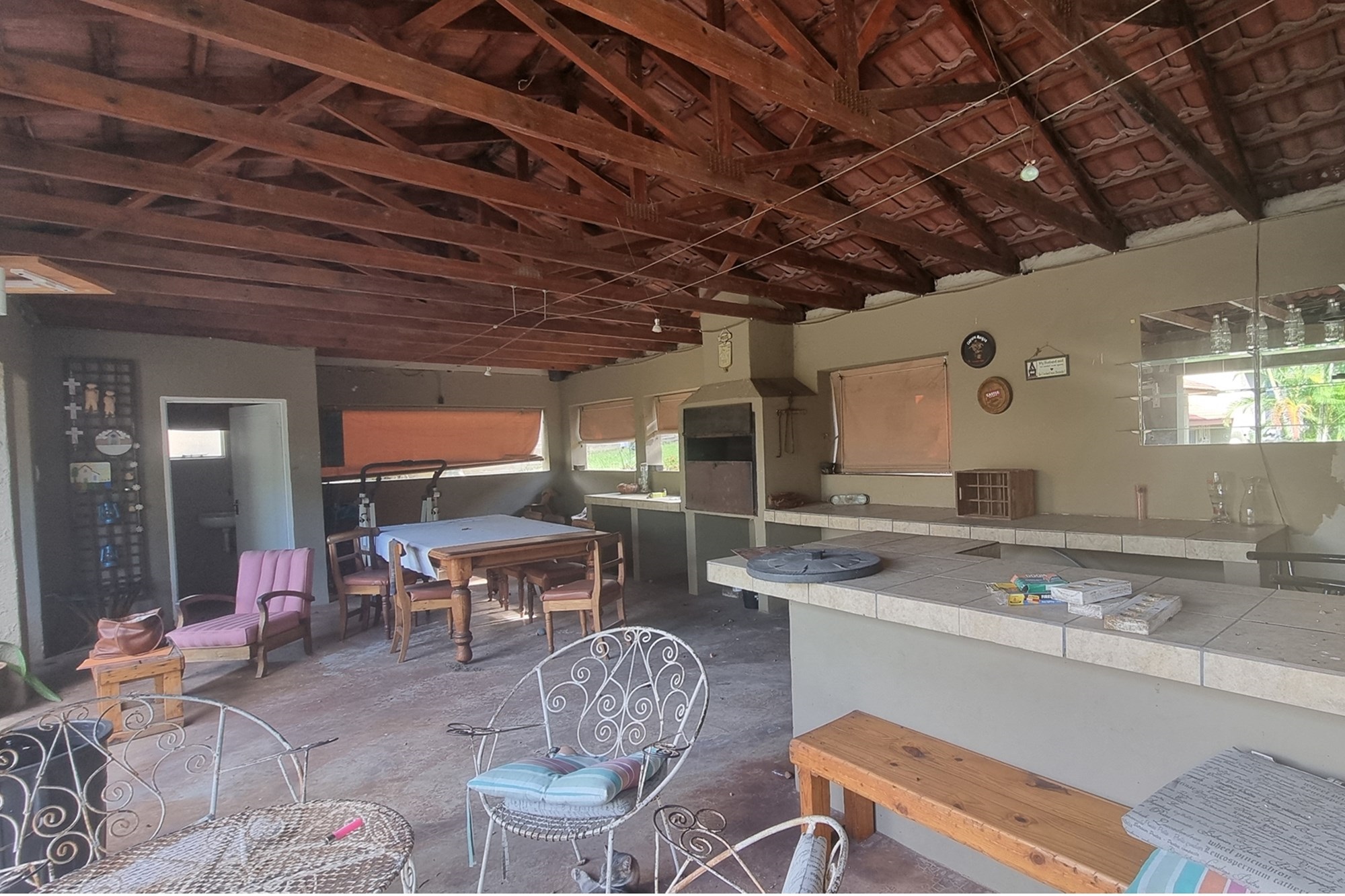 The property also offers an entertainment area, complete with build in braai and a bar area. There is space for a big table and chairs, all of this of course under roof and overlooking the pool in a easy to maintain garden.