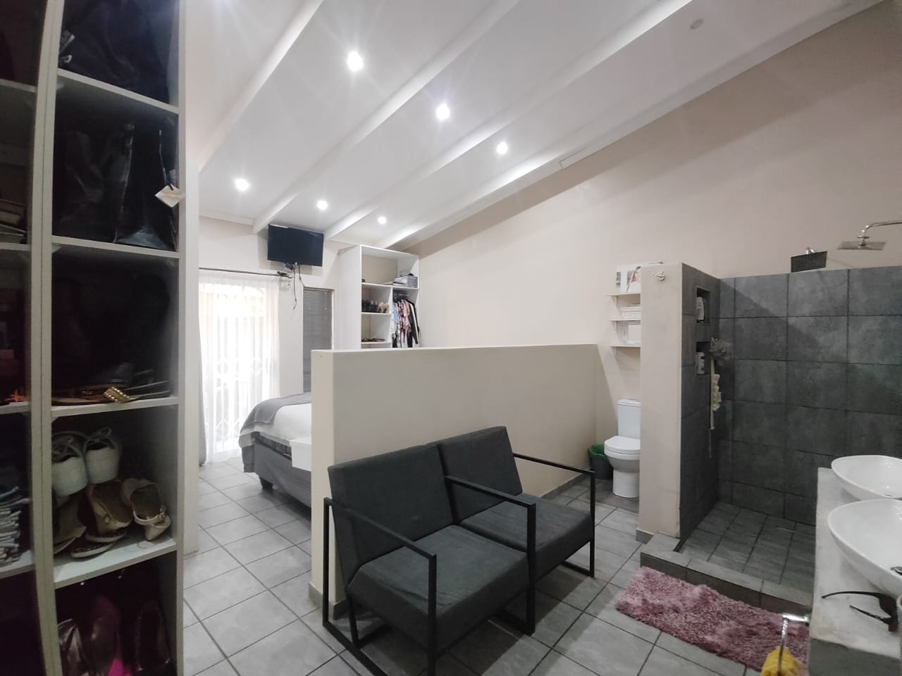 This beautiful family home is located in the well-established area of West Acres. With three bedrooms and three bathrooms, it offers ample space for a growing family. The highlight of the house is the stunning pool and lapa area, perfect for summer days and hosting events. The large kitchen and living area provide plenty of room for family activities and entertaining. Additionally, the house features a hobby room that can be customized to fit your needs. Two of the bedrooms come with ensuite bathrooms, offering extra privacy and comfort.
