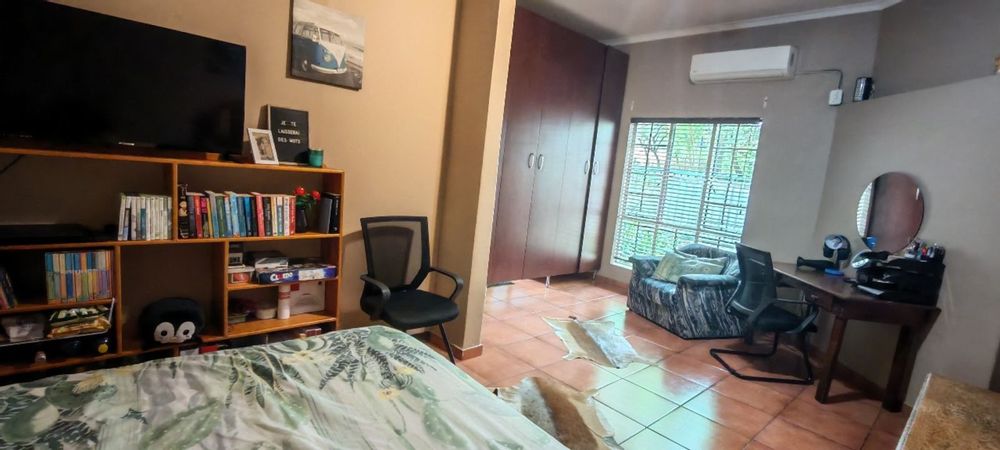 4-Bedroom Home for Sale – Spacious family home in a quiet cul-de-sac, featuring 4 bedrooms and 4 bathrooms. Open-plan kitchen and living area lead to a covered patio with built-in braai, pool, and large garden. The fourth bedroom has a private entrance and is currently rented out for R6,000/month (W+L included)—ideal as a flatlet or office. Includes garage, carports, and parking for 6+ vehicles. Just 1km from West End Centre & Mediclinic, and close to Laerskool Laeveld. Rates & Taxes: R1,300 Contact us today to view!