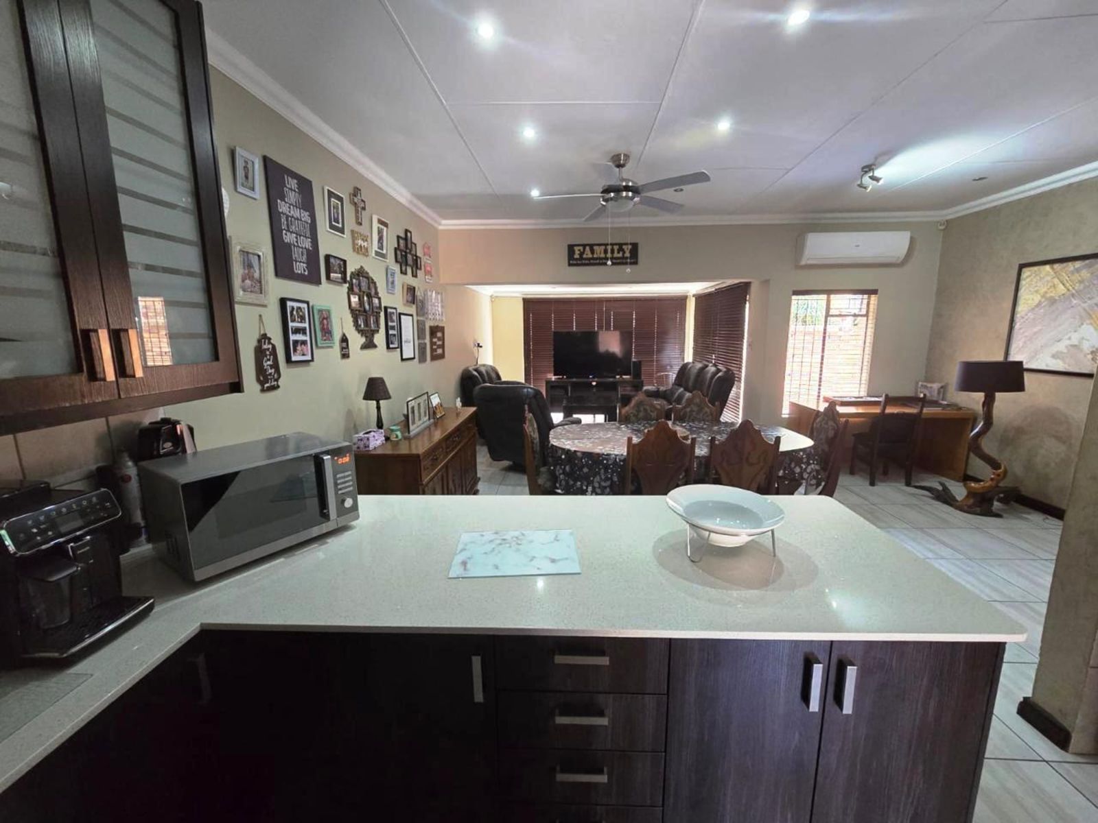 Enjoy a sleek open-plan kitchen fitted with Cesar stone counter tops, a gas stove, and generous cabinetry, seamlessly flowing into the living and dining area – perfect for entertaining or relaxing with family.