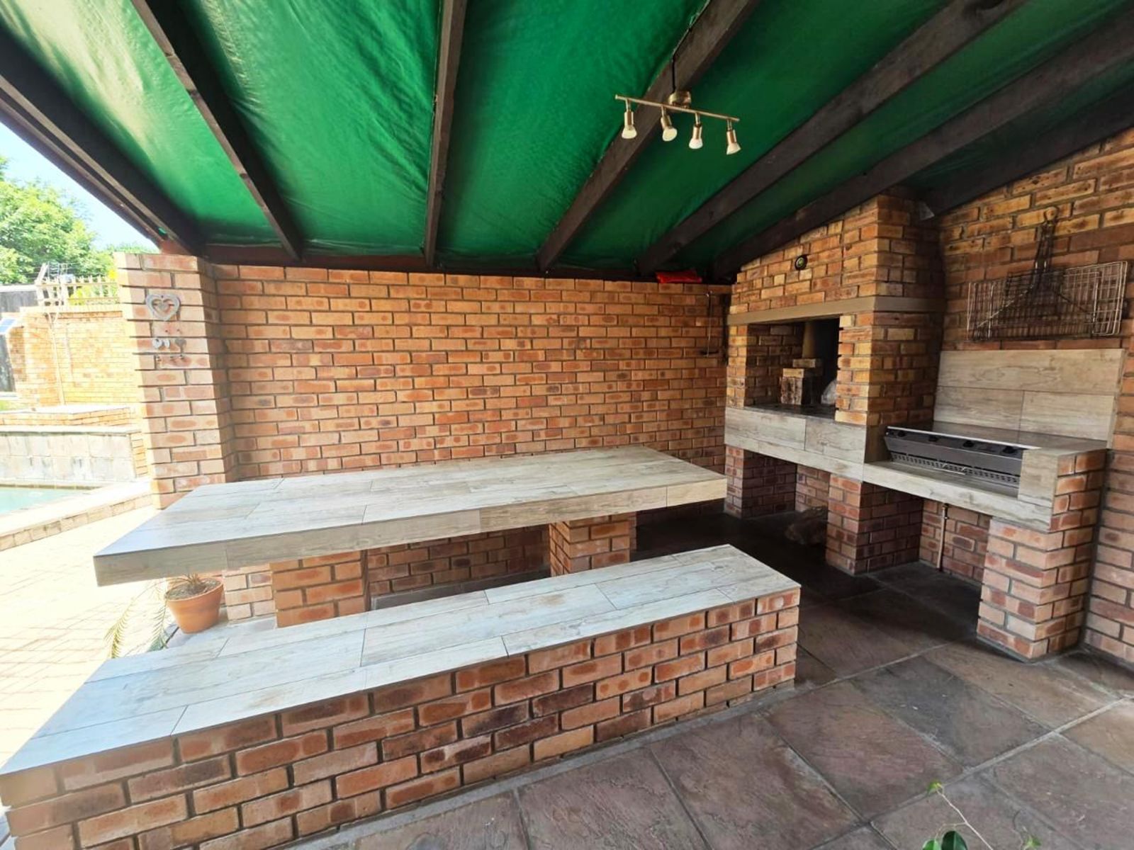 Outdoor braai area with both built-in and gas braai options
