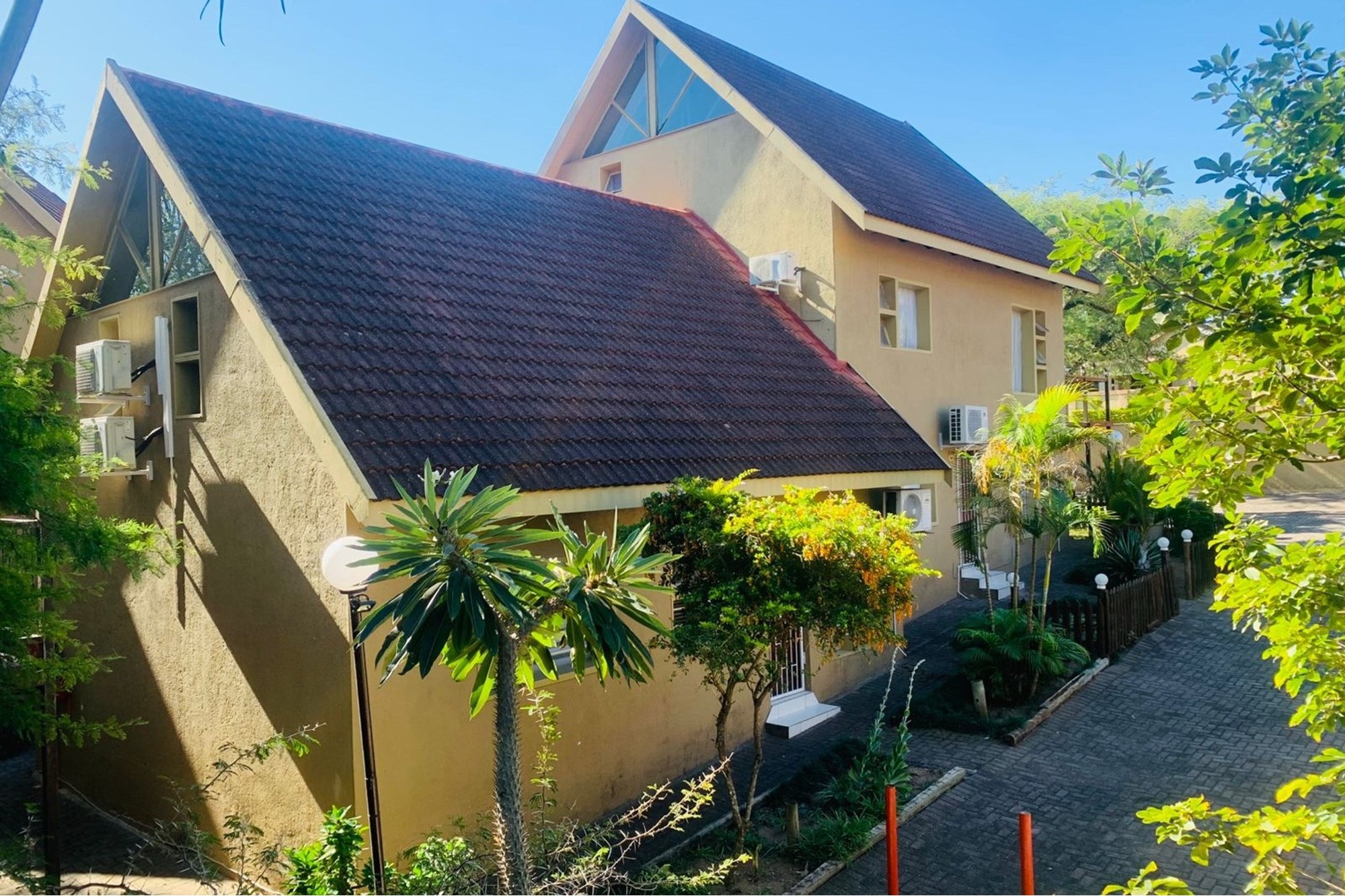 Secure & Stylish Exterior– Brick, concrete, and glass cladding with a robust steel front door.