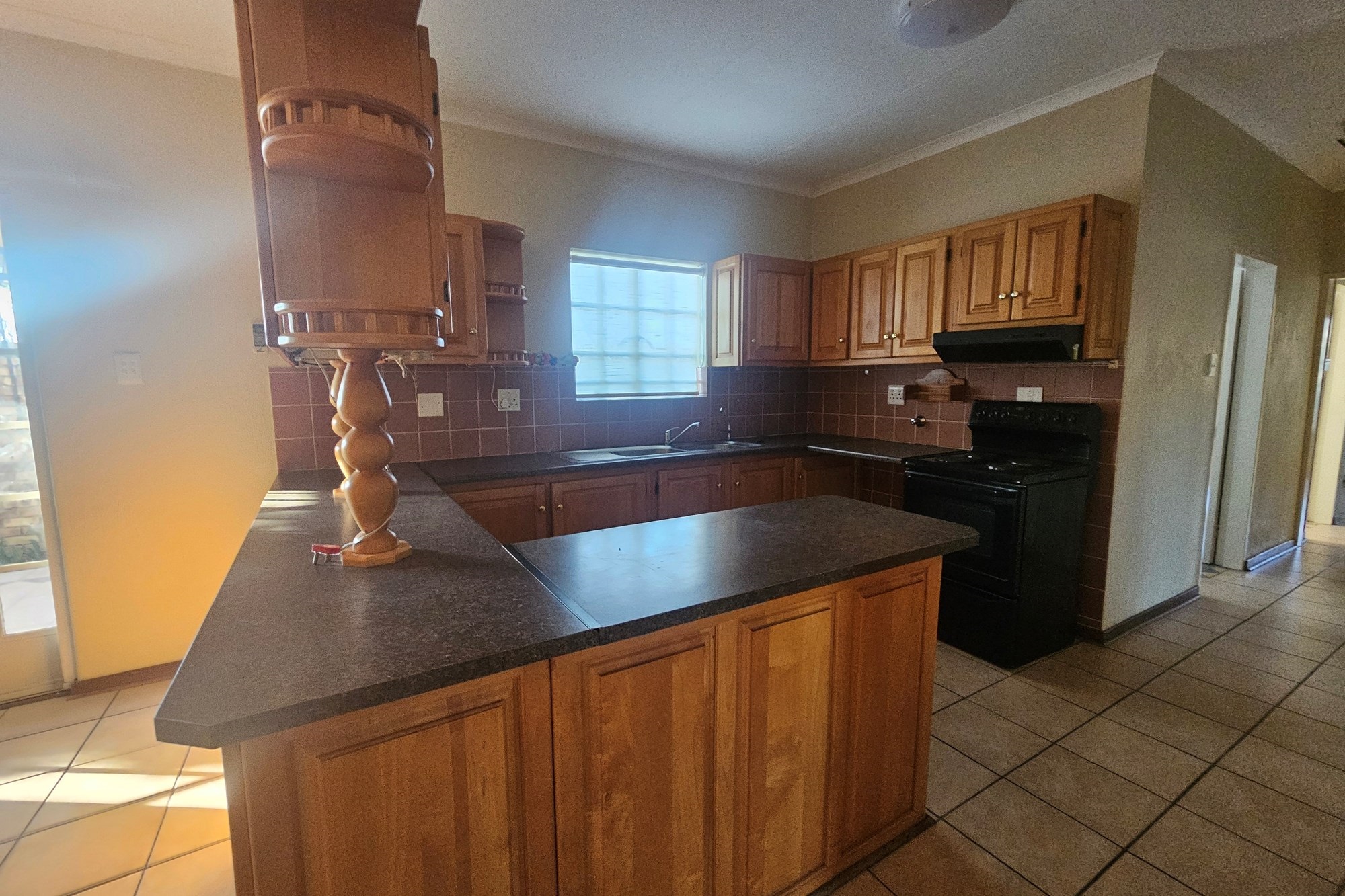 Practical Kitchen – Ample cupboard space, functional layout, and direct access to the garage for convenience.