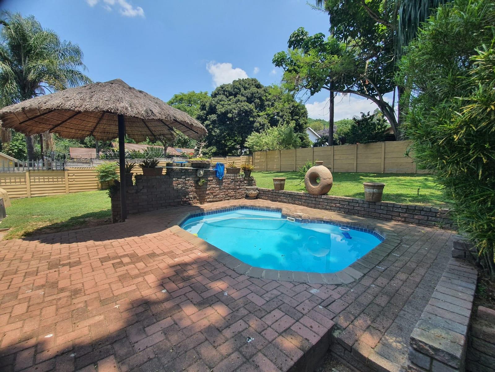 Sparkling pool and lush green garden with plenty of space for kids or pets to run wild.