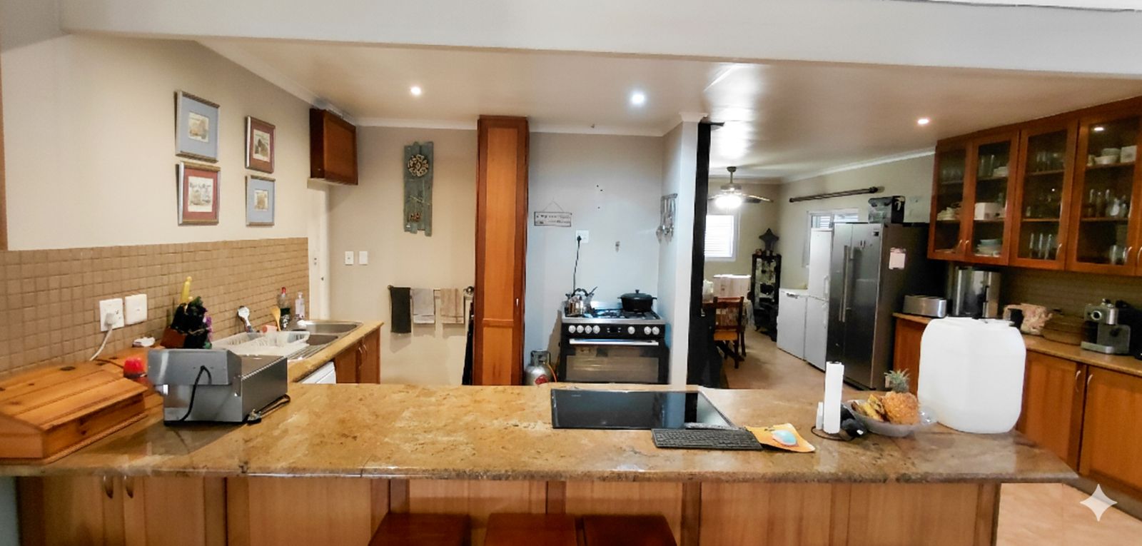 The main residence includes four generous bedrooms and three bathrooms, including two en-suite. The modern, light-filled kitchen, crafted from solid wood with granite countertops, forms the heart of the home and flows into the open-plan lounge and dining areas.