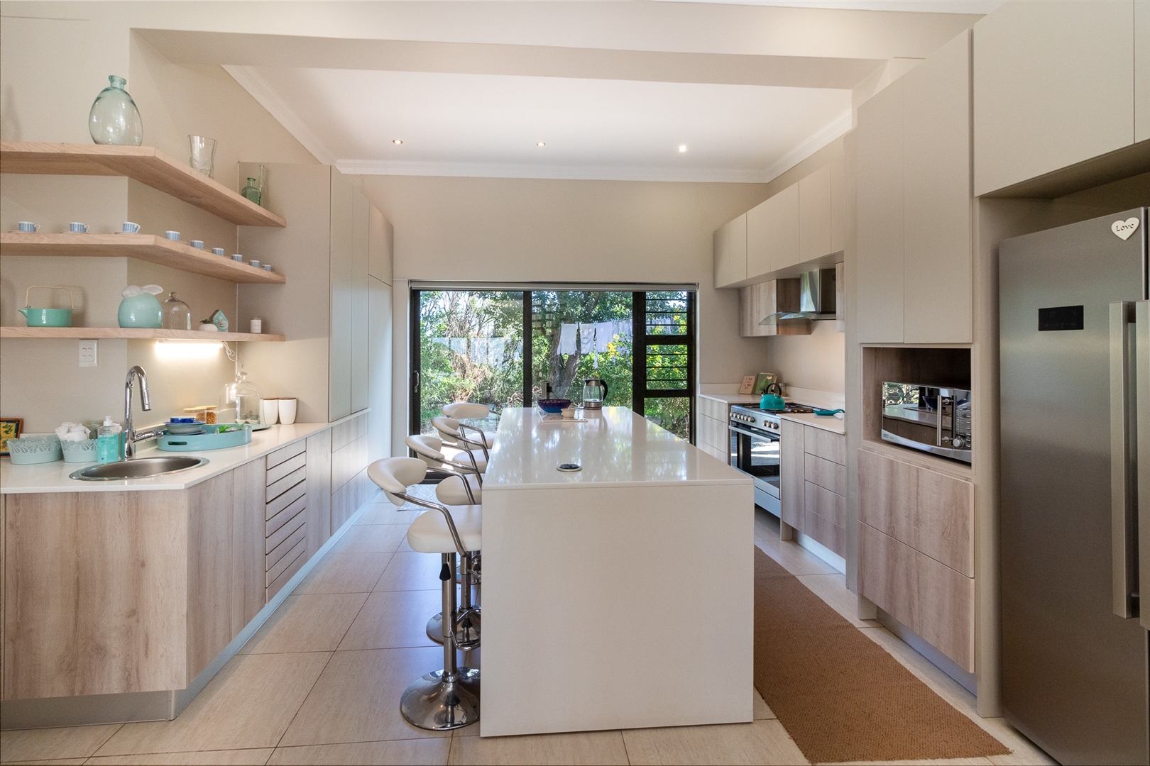 As you step through the charming entrance, the warm elegance of the house immediately inspires. The expansive open-plan lounge and dining area seamlessly merge with the garden, blurring the lines between indoors and outdoors.