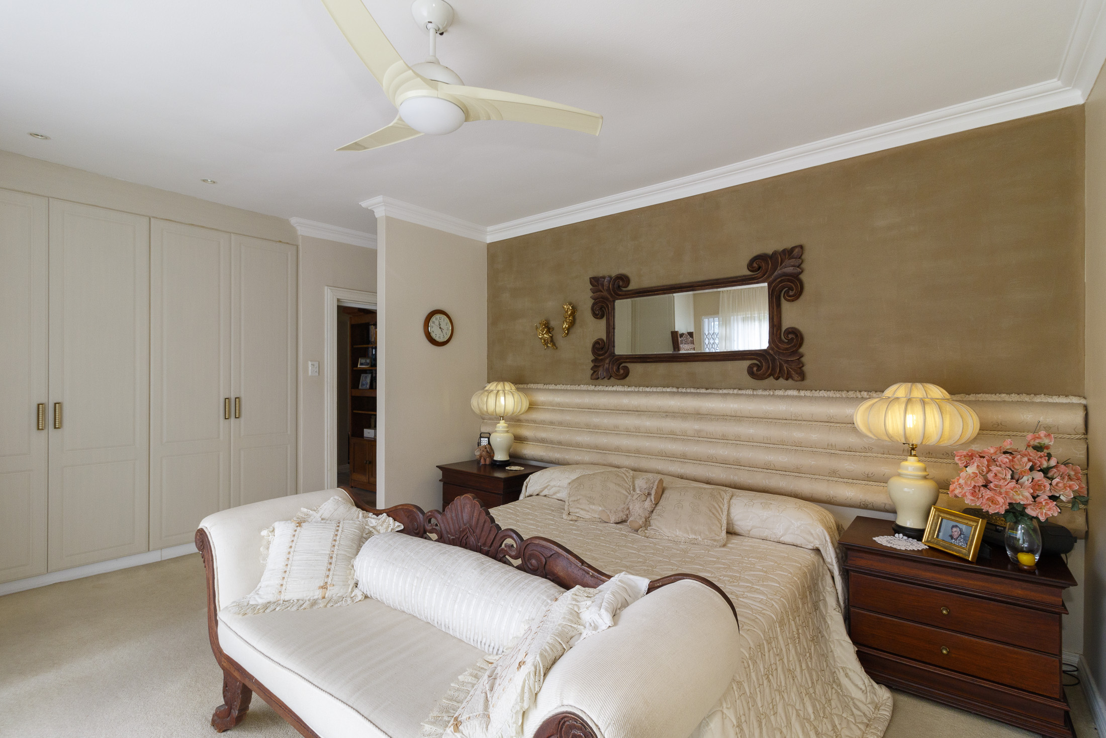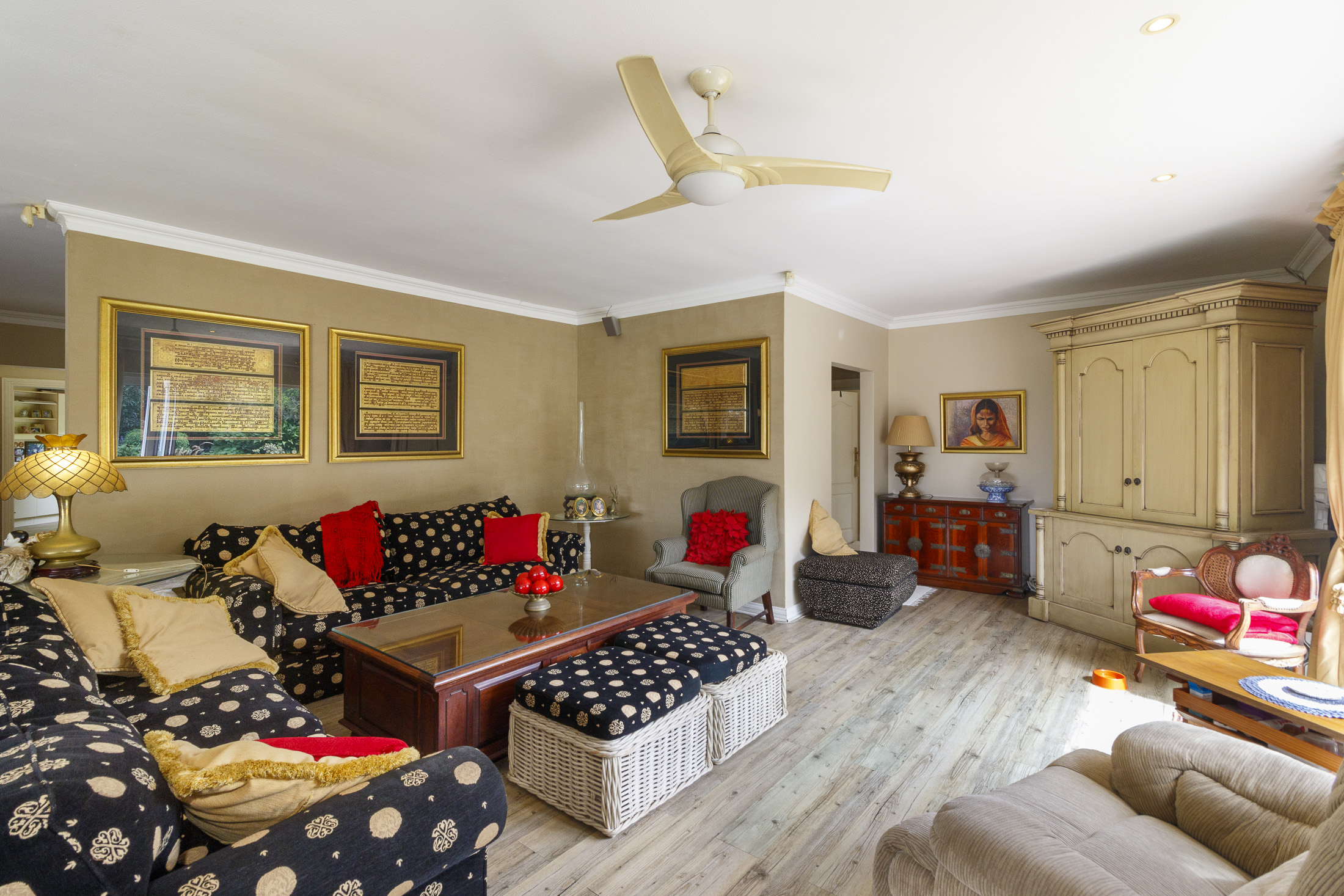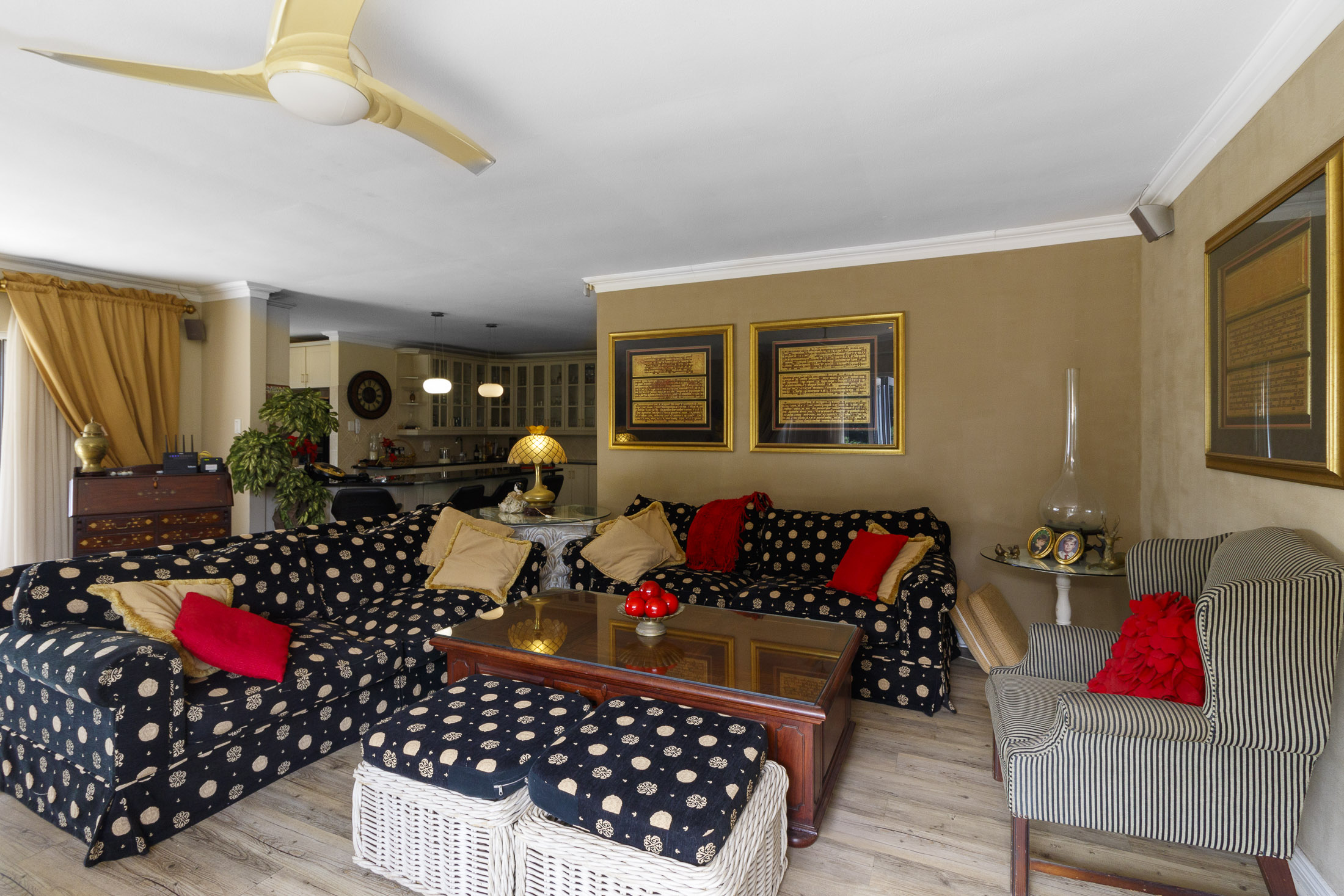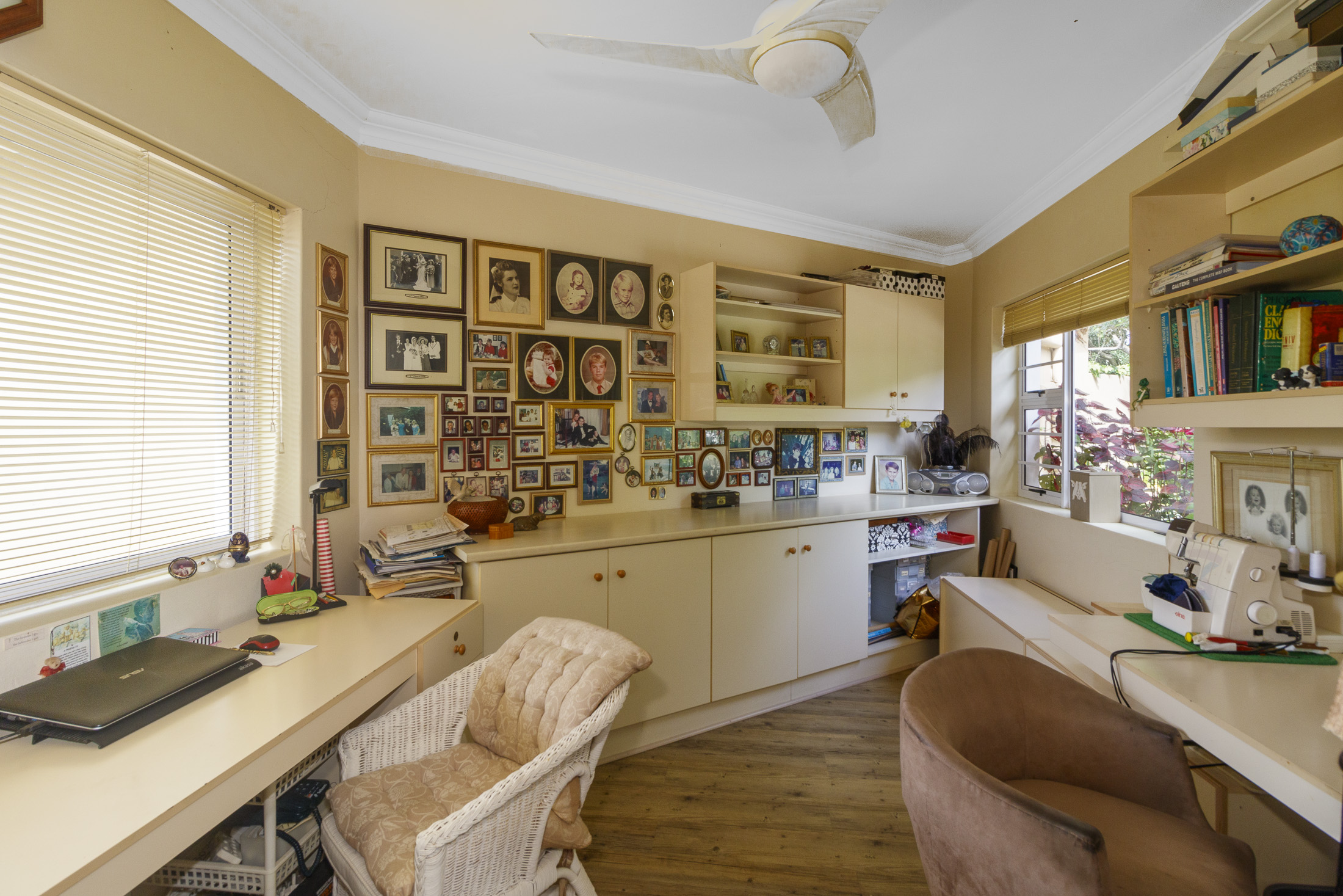 Embark on a serene journey into this cul-de-sac, where tranquility awaits. Nestled within, a beautiful home is surrounded by an exquisite, landscaped garden, creating a peaceful haven. Approach the property via an automated gate that opens to a delightful garden and a paved driveway with ample parking. Ascend the stairs to the front door, where a welcoming entrance foyer leads to the spacious lounge, dining room, and kitchen. The seamless open-plan design effortlessly integrates the dining room with a sheltered patio and garden. On one side, the lounge extends via stack doors to a north-facing garden, while on the other, folding stack doors give way to a partially covered, east-facing patio with a built-in gas braai, offering versatility and comfort. Here, you can sit outdoors, enjoying attractive views over the marina and surrounding tree tops. The modern, well-appointed kitchen boasts granite countertops and features sliding windows that open onto the patio. Additional features in the kitchen include an undercounter oven, both gas and electric hobs, an extractor, and a scullery concealed from sight. The master bedroom is carpeted, with an entire wall of cupboards and a full en suite bathroom. Bi-folding doors frame garden views and give access to the well-manicured garden, complete with a stunning water feature and private seating area. A second bedroom on the same level has its own en suite bathroom and opens via sliding doors to the garden. For those who need to work from home, a study situated just inside the front door affords a private workspace. The ground floor of this home has two separate en suite bedrooms, both with their own access from the garden. These two rooms are ideal for guests who require privacy, outside of the main house, where they can come and go without disturbing anyone upstairs. As you explore the property further, you'll find a charming self-contained flat with its own private patio and entrance, perfect for accommodating guests or generating rental income. This generously proportioned unit comprises an open-plan living room and kitchen, two bedrooms, and a full bathroom shared by both bedrooms. The expansive garden has so many interesting corners to explore, with pathways flanked by shrubs and groundcovers with much of the garden shaded by mature trees. Two garages with automated doors and a workshop provide secure parking for vehicles and a place to tinker, while a further two open garages afford additional undercover parking. An added advantage is a 40,000-litre underground rainwater reservoir, which is filtered and plumbed to the house. There are also several rainwater tanks with a total capacity of 25,000 litres for garden use. Complete with excellent security measures, this home provides both comfort and practicality.
