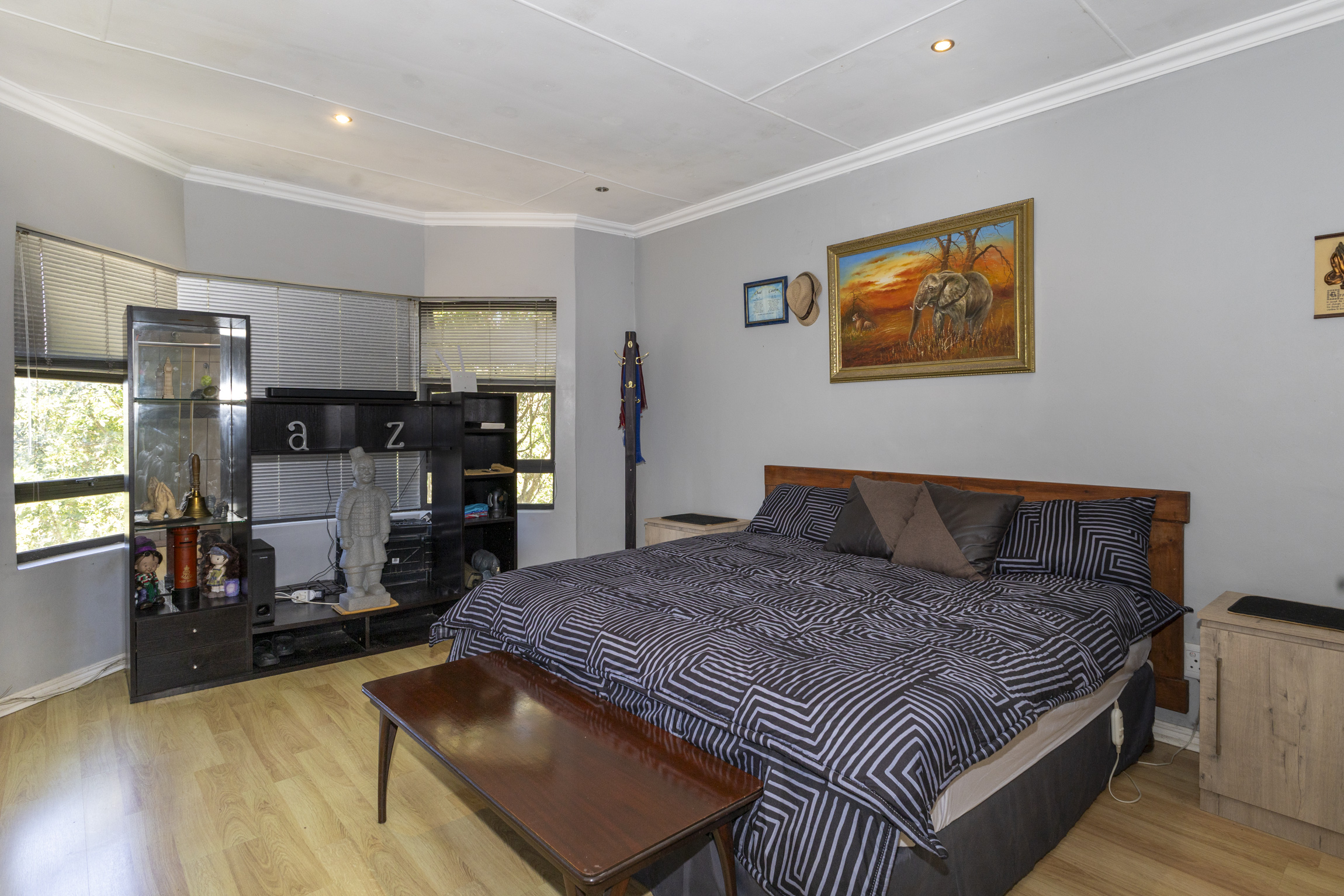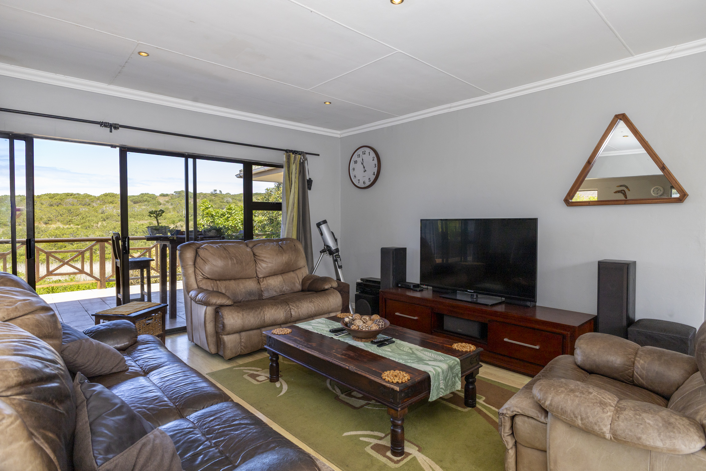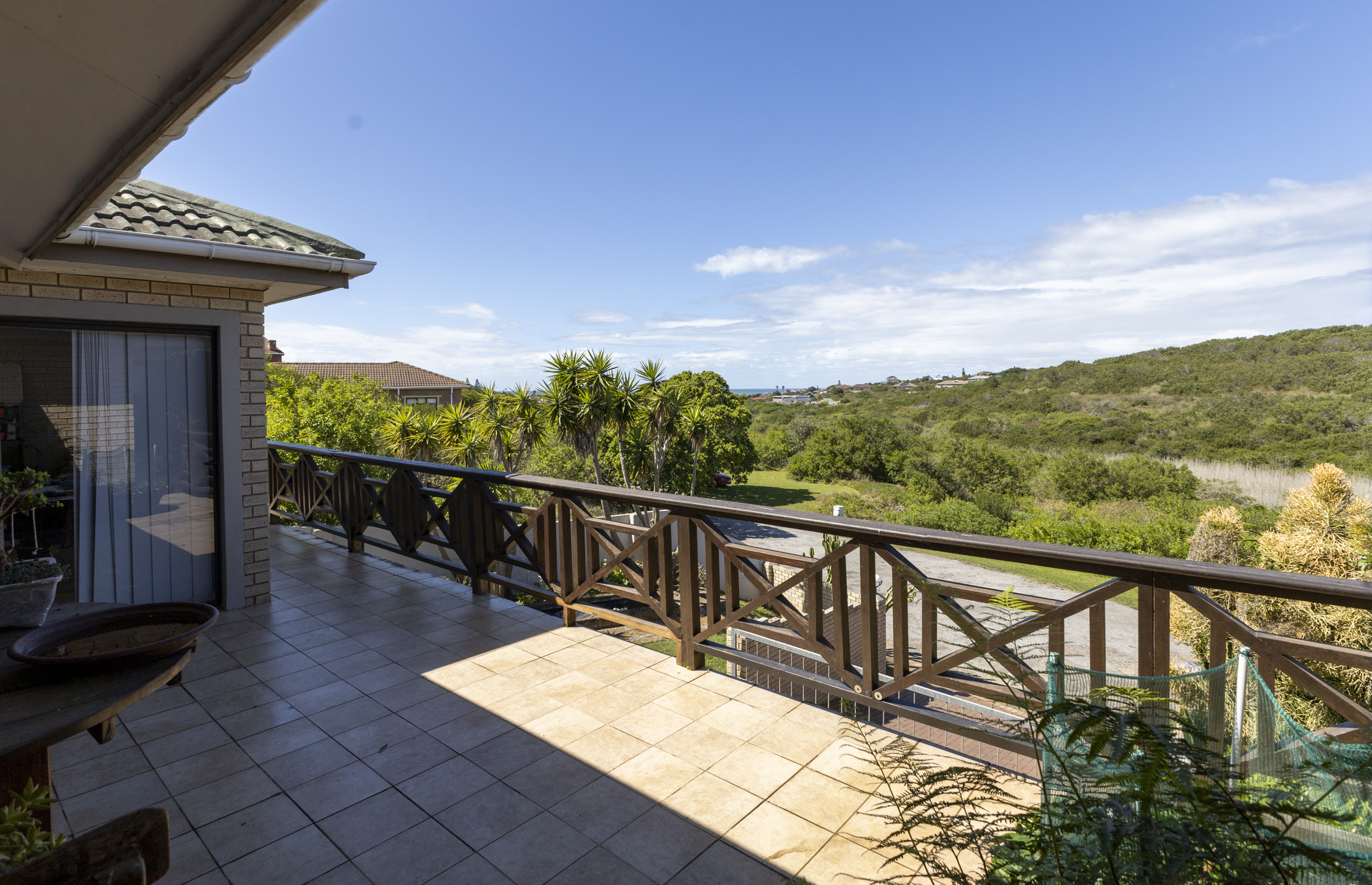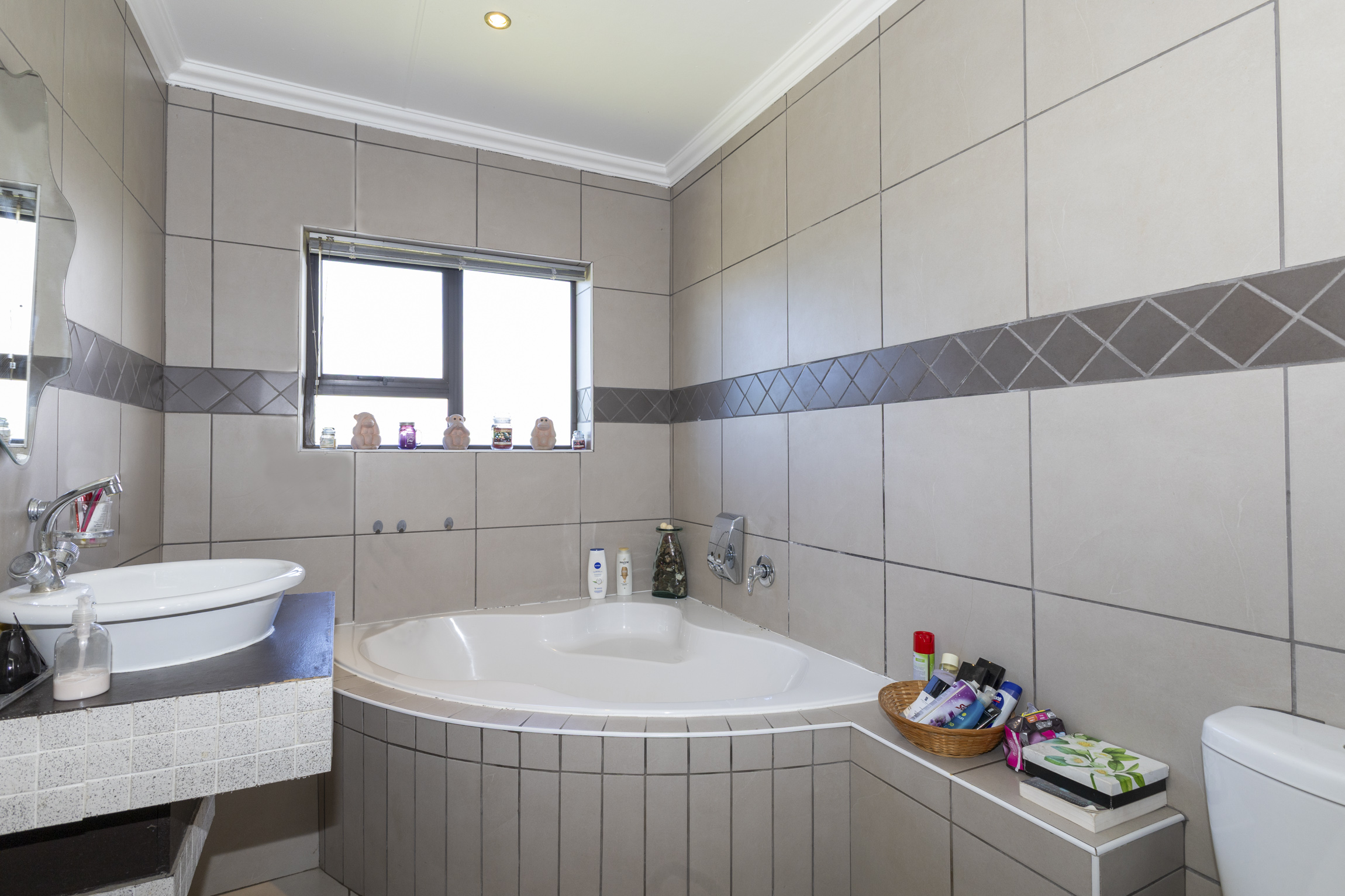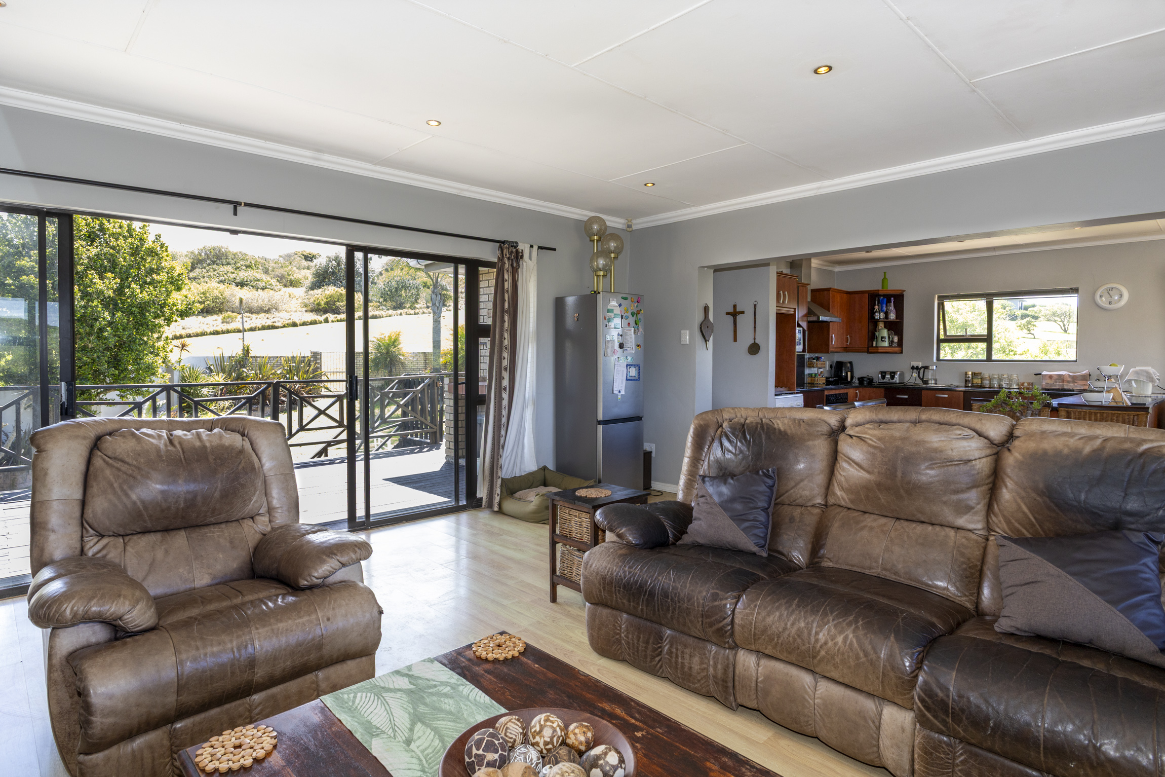 Situated within the secure Umdoni Downs estate in Port Alfred, this four-bedroom facebrick home offers a delightful blend of distant sea views and rolling countryside scenery. Its rural charm is perfectly balanced with the convenience of nearby amenities. Upon entering through the staircase entrance foyer, you'll be welcomed into a light-filled open-plan living area. The lounge seamlessly extends to two patios—one on the west, providing ocean vistas, and the other to the east, where a built-in braai invites alfresco dining. The well-appointed kitchen, finished in rich cherrywood-toned melamine and complemented by sleek granite countertops, is ideal for both everyday meals and entertaining. The master bedroom, featuring an en suite bathroom that spans one side of the room, offers privacy and comfort. Two additional family bedrooms on this level share a well-designed bathroom. On the lower level, a fourth bedroom, also en suite, ensures flexible accommodation options. A double garage provides secure parking for two vehicles, while storage space, comprising two interleading rooms, adds a versatile space, complete with a bathroom. This space is currently used as a storeroom/workshop, but could be a single storeroom and domestic quarters if required. The outdoor space is equally inviting, with a sparkling swimming pool offering a tranquil retreat in the back garden. A gate leads directly to the communal park, adding to the charm of this serene estate. Practical features such as backup rainwater, an alarm system, and an automated entrance gate ensure peace of mind for residents.