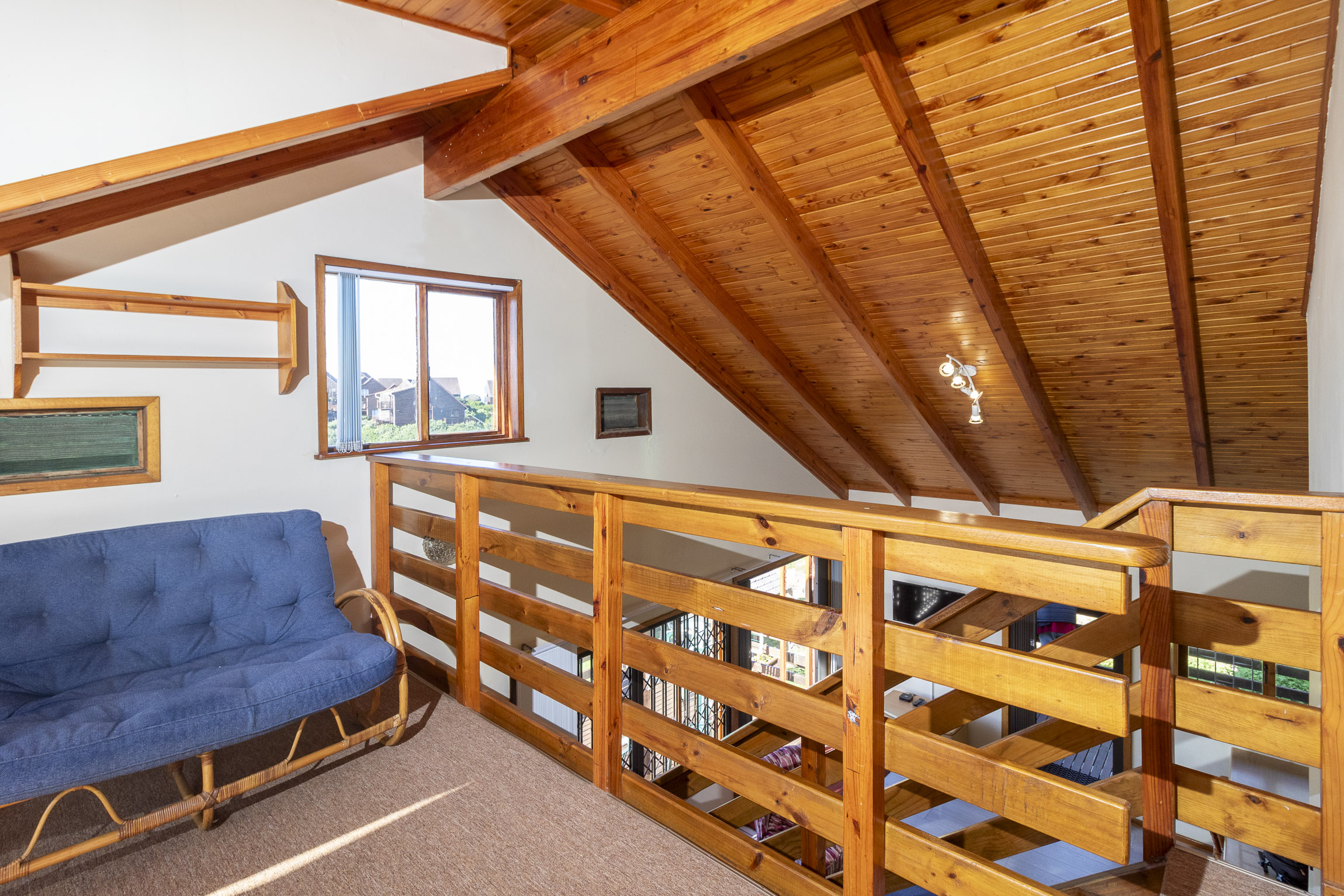 The open-plan kitchen flows seamlessly into the lounge, which opens onto a private wooden deck – ideal for outdoor dining, entertaining, or simply unwinding. Two comfortable bedrooms are located downstairs, sharing a full bathroom, along with an additional guest loo for convenience. Upstairs, a spacious and light-filled loft bedroom with its own bathroom offers a peaceful retreat with lovely views. The complex features a communal swimming pool, perfect for cooling off on summer days and social gatherings. Additional features include water tanks for backup water supply, a handy storage shed under the house for your beach or travel gear, and a carport for secure parking. Port Alfred Sands is fully fenced and well-secured, offering peace of mind whether you're living in permanently, using it as a lock-up-and-go holiday home, or investing in a profitable short-term rental opportunity. Don’t miss your chance to own this relaxed, low-maintenance coastal gem!