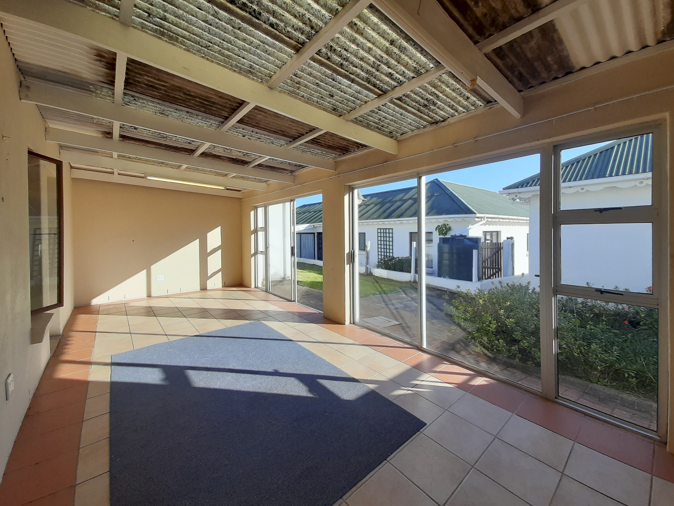 Welcome to Ravenswood, where comfortable retirement living meets convenience. Located in the heart of Port Alfred, this north facing unit offers an ideal opportunity to enjoy a relaxed lifestyle with the potential to add your own touch. The open plan living area and kitchen are practical in layout, with melamine cupboards and postform countertops. The open plan living area and kitchen are practical and functional, featuring melamine cupboards and postform countertops. The lounge interleads with a generously proportioned, fully enclosed patio, which provides a sunny space for quiet mornings or afternoon tea. There are two bedrooms, both with built in cupboards, and a shared bathroom conveniently positioned between the rooms. A linen cupboard in the passage adds extra storage. A door from the living area leads to a private back courtyard, where you'll find a washing line and a rainwater tank. A single garage with remote access provides secure parking for your vehicle. This unit is all on one level, making it well suited for easy, accessible living. Ravenswood is one of Port Alfred's well known retirement complexes, offering a secure environment and a sense of community. If you’re looking for a townhouse in a central location with the scope to update and personalise, this could be the one.