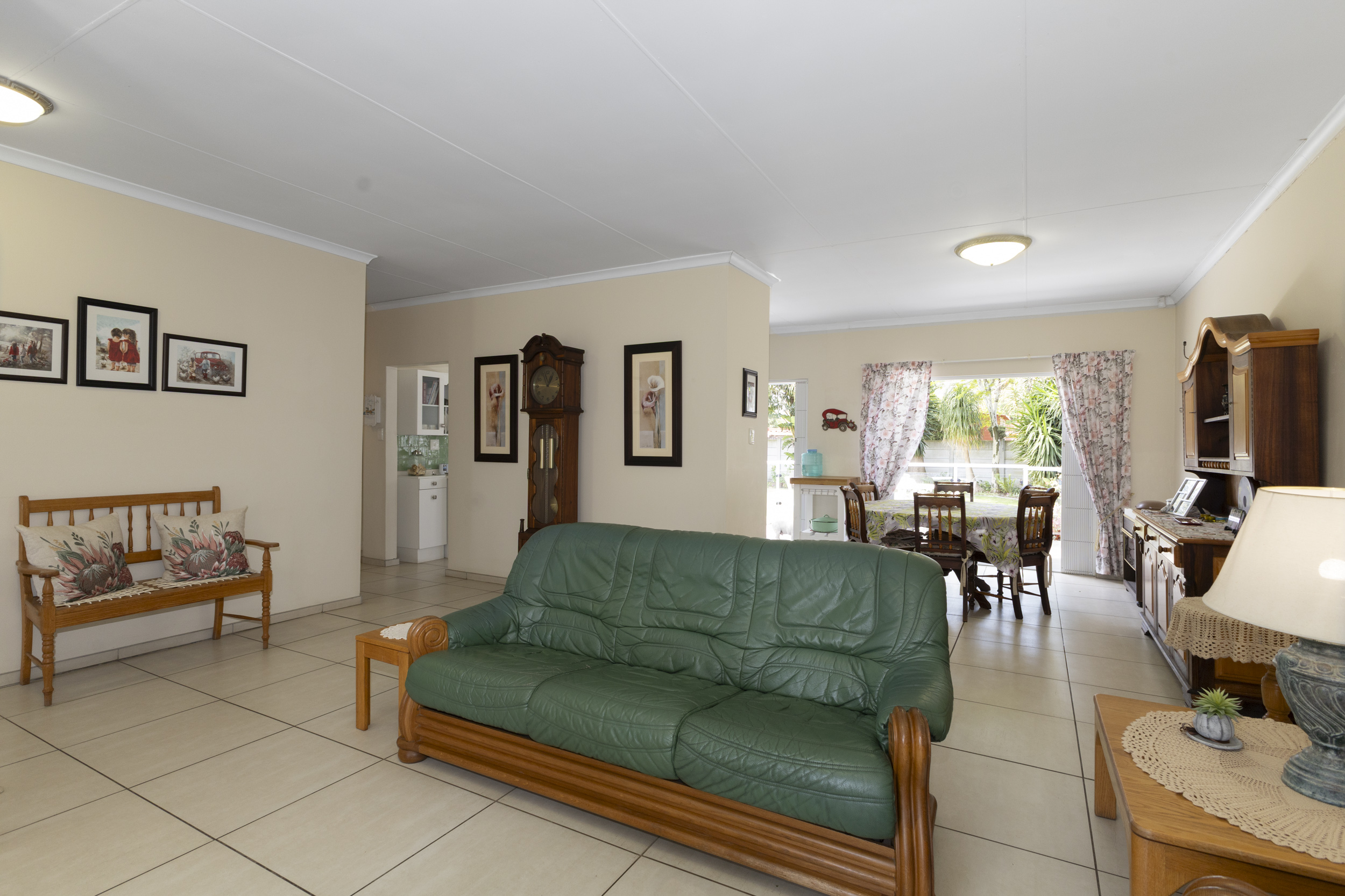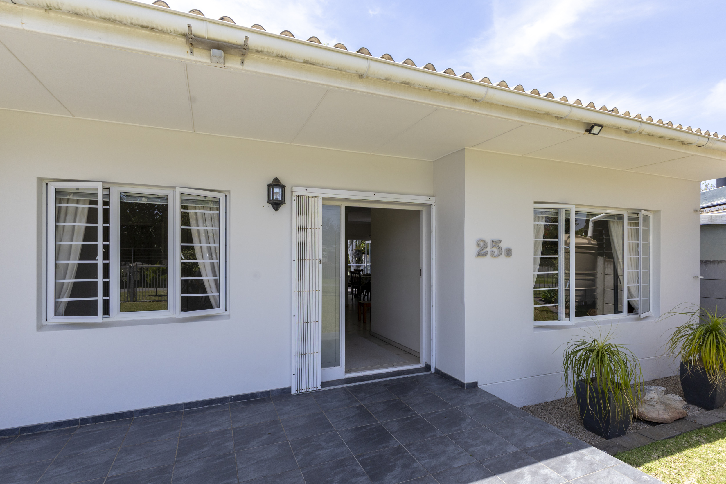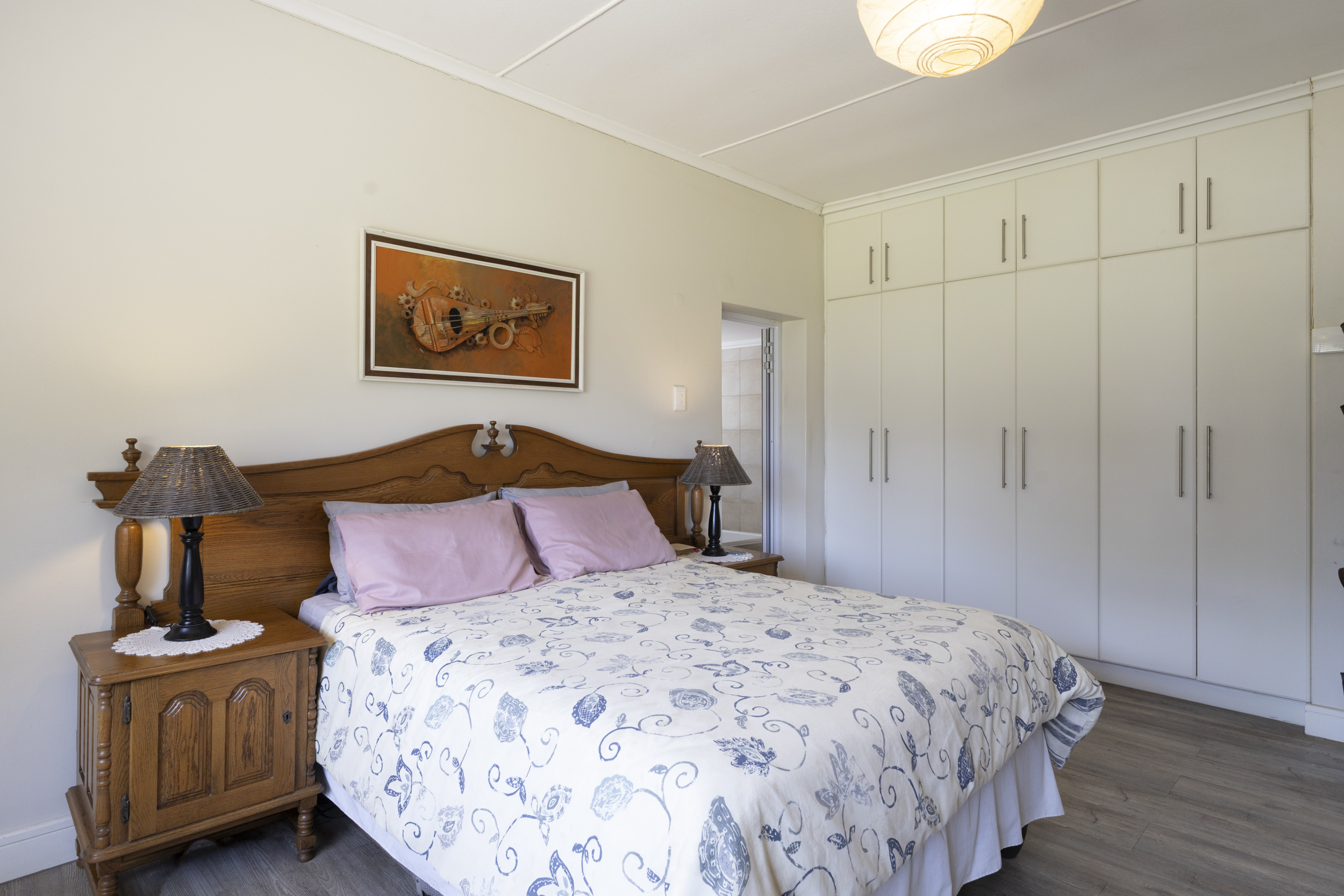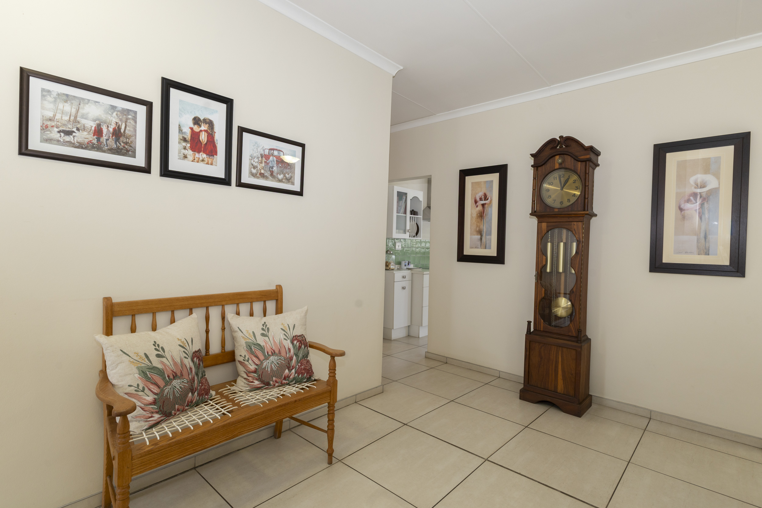 Step into inviting open plan living spaces where natural light filters through, creating a warm and uplifting ambience. The well appointed kitchen, complete with a free standing stove, forms the heart of the home. The design is practical, stylish, and designed for easy everyday living. The dining room flows gracefully onto an east facing patio that overlooks the manicured back garden, providing the perfect setting for morning coffee, relaxed outdoor dining, or simply unwinding in your private sanctuary. The spacious master bedroom offers an en-suite bathroom and direct access to the tandem double garage, ensuring comfort, convenience, and peace of mind when returning home. Two additional family bedrooms share a neat bathroom. One of these, features it's own hand basin and direct outdoor access which is ideal for guests, older children, or even a home office setup. This exceptional property comes equipped with solar panels, an inverter and batteries, a backup water supply, and a fitted alarm system, ensuring uninterrupted comfort and excellent security. The fully enclosed garden is accessed via an automated entrance gate, with palisade fencing allowing unobstructed views, while enhancing the property’s safety. Aluminium windows further contribute to the home’s low maintenance appeal.