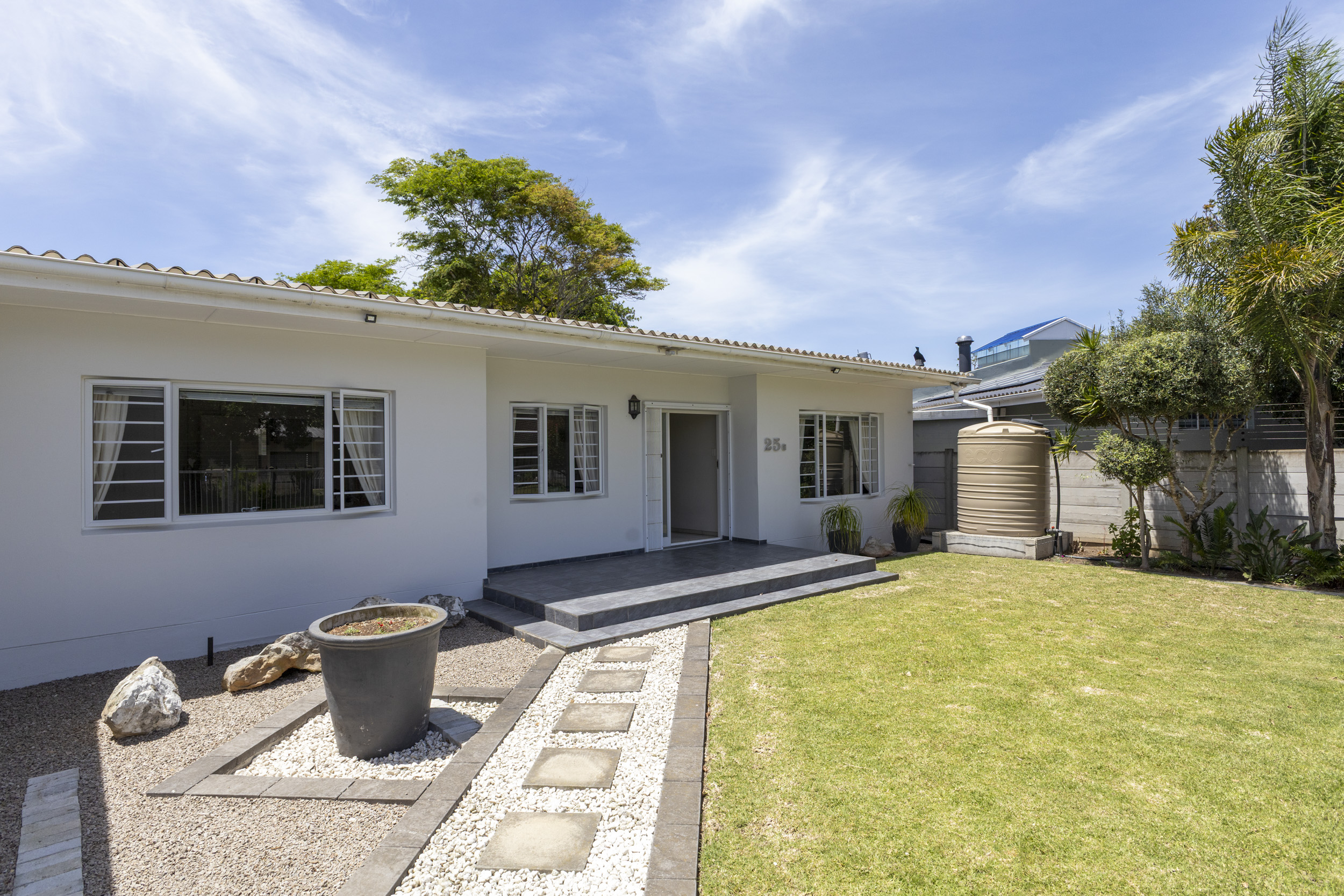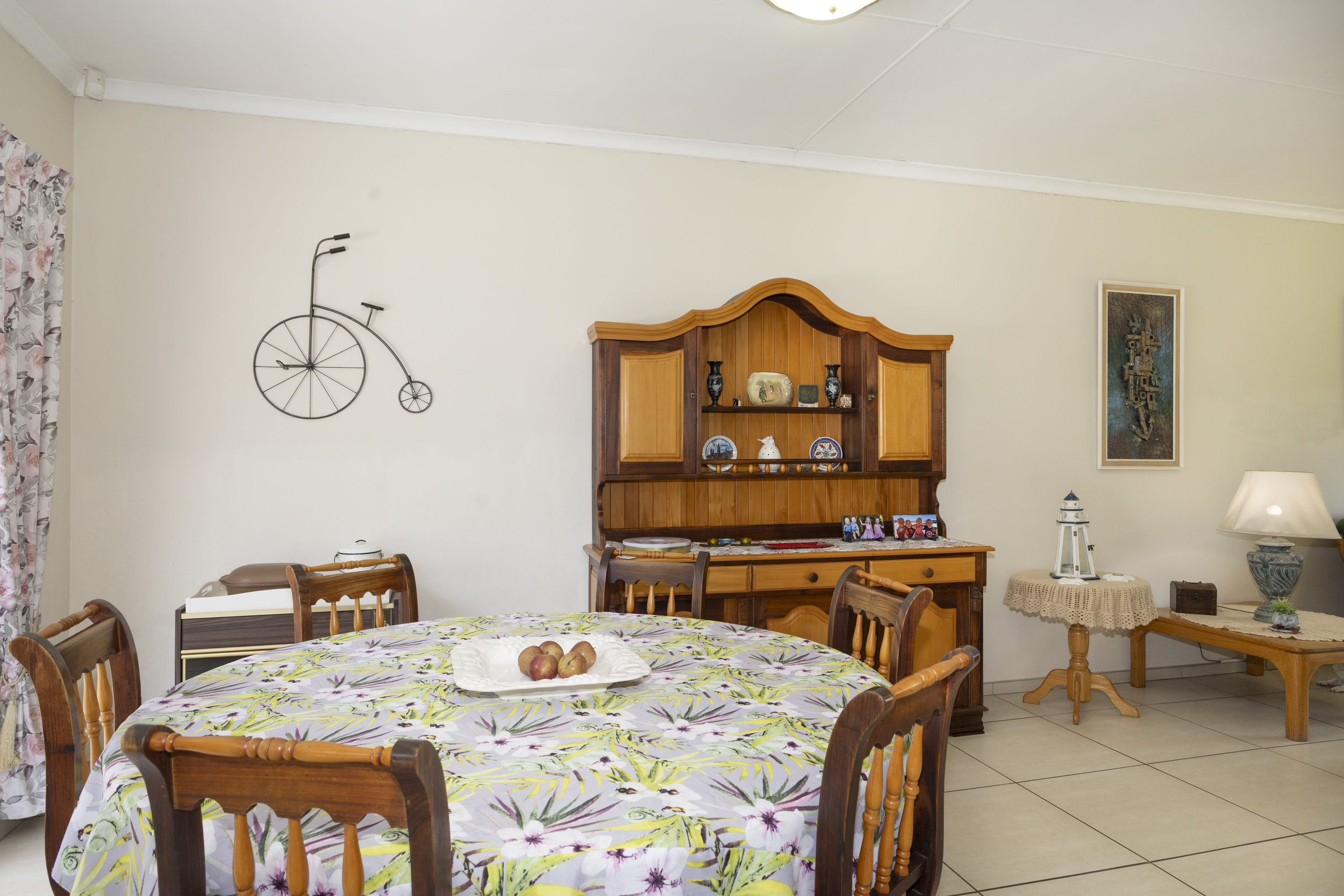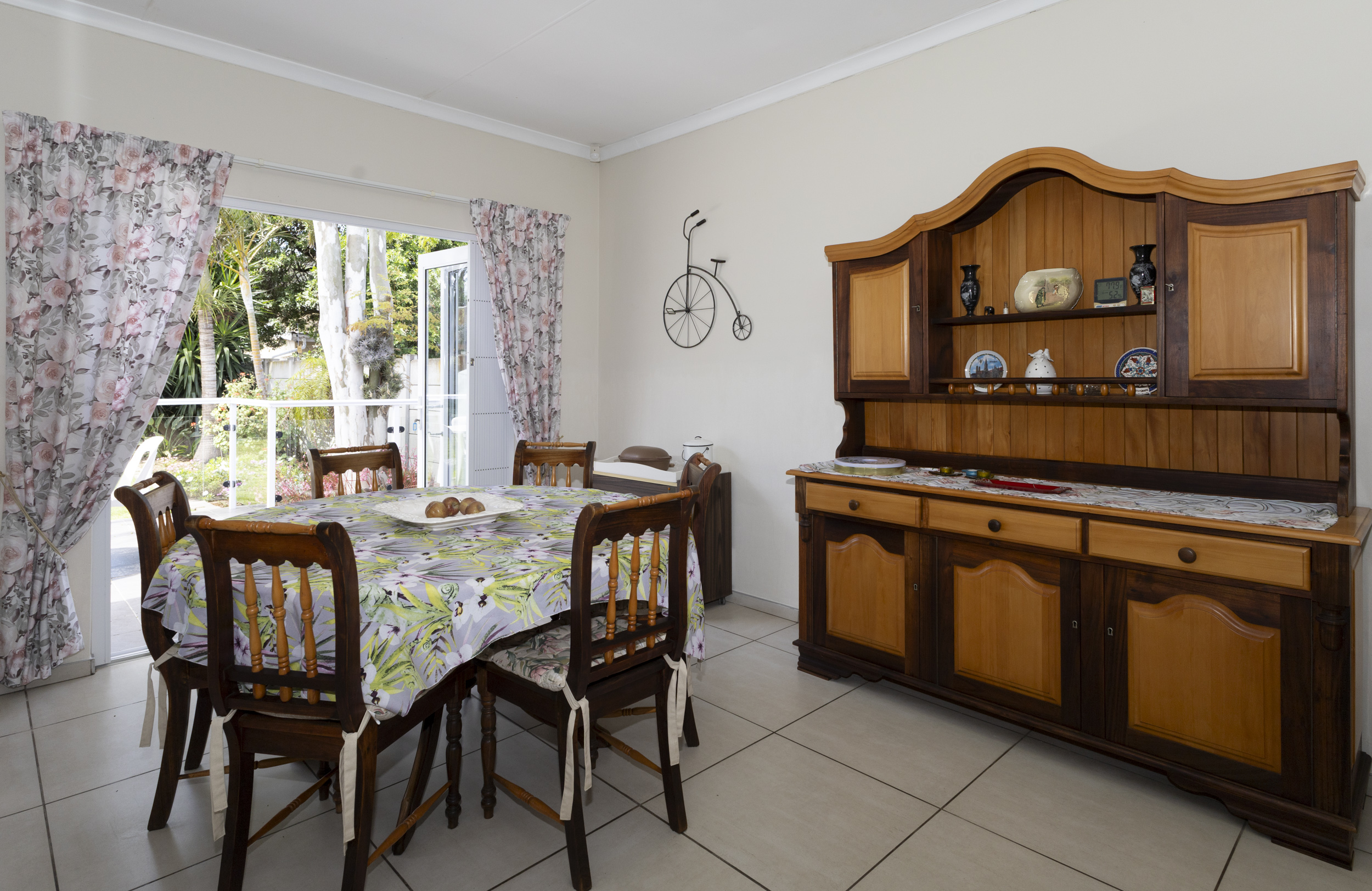 Step into inviting open plan living spaces where natural light filters through, creating a warm and uplifting ambience. The well appointed kitchen, complete with a free standing stove, forms the heart of the home. The design is practical, stylish, and designed for easy everyday living. The dining room flows gracefully onto an east facing patio that overlooks the manicured back garden, providing the perfect setting for morning coffee, relaxed outdoor dining, or simply unwinding in your private sanctuary. The spacious master bedroom offers an en-suite bathroom and direct access to the tandem double garage, ensuring comfort, convenience, and peace of mind when returning home. Two additional family bedrooms share a neat bathroom. One of these, features it's own hand basin and direct outdoor access which is ideal for guests, older children, or even a home office setup. This exceptional property comes equipped with solar panels, an inverter and batteries, a backup water supply, and a fitted alarm system, ensuring uninterrupted comfort and excellent security. The fully enclosed garden is accessed via an automated entrance gate, with palisade fencing allowing unobstructed views, while enhancing the property’s safety. Aluminium windows further contribute to the home’s low maintenance appeal.
